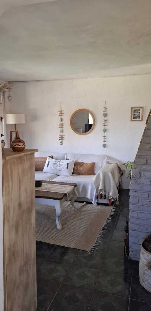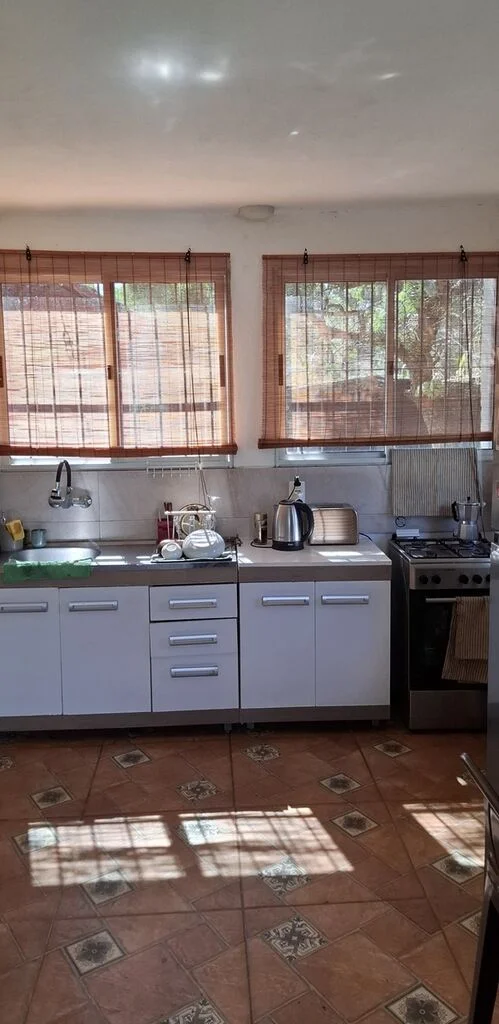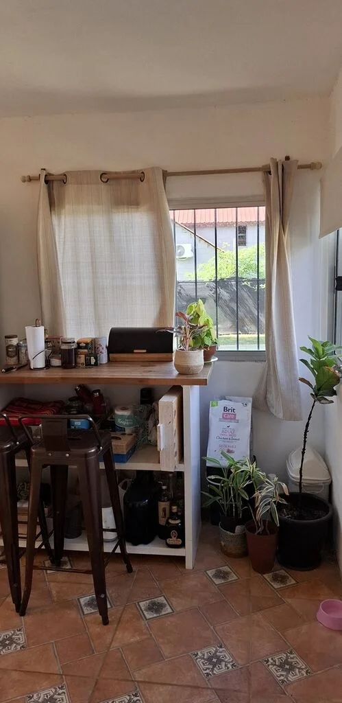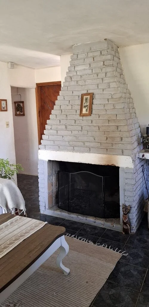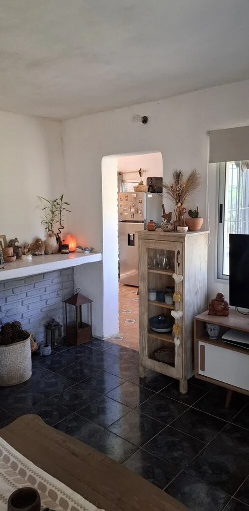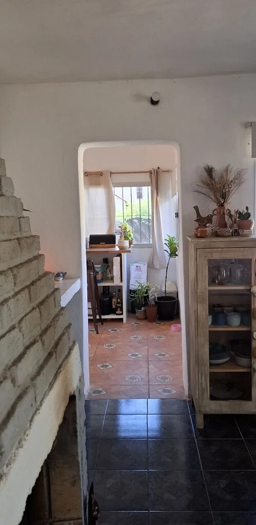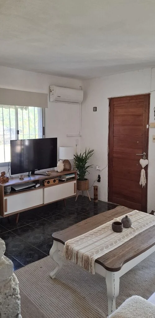 La casa cuenta con living con buena estufa a leña, aire acondicionado y aparte de la puerta de entrada, tiene una puerta ventana en aluminio con rejas, 2 dormitorios, el principal al fondo, el segundo al frente, con opción a un tercer dormitorio, estudio o depósito, amplia cocina comedor a nuevo con vista al frente y baño completo.