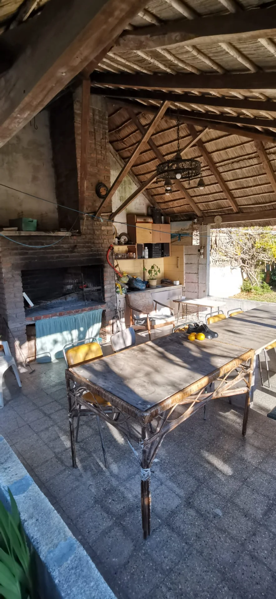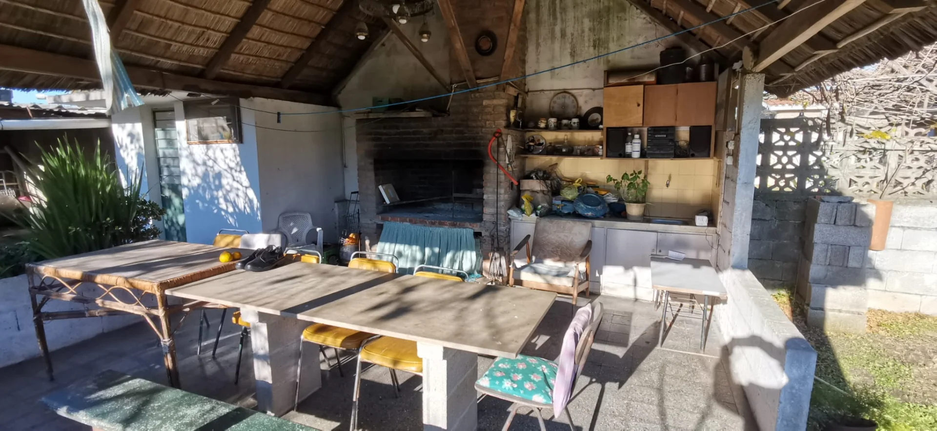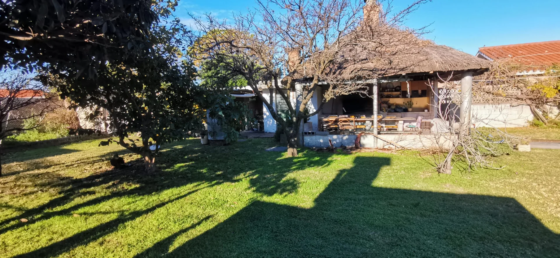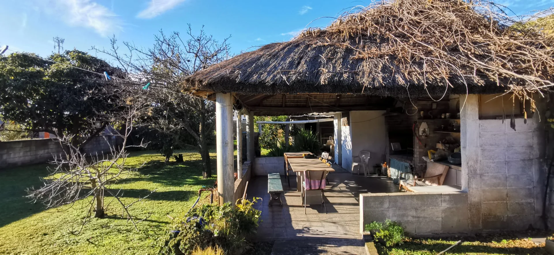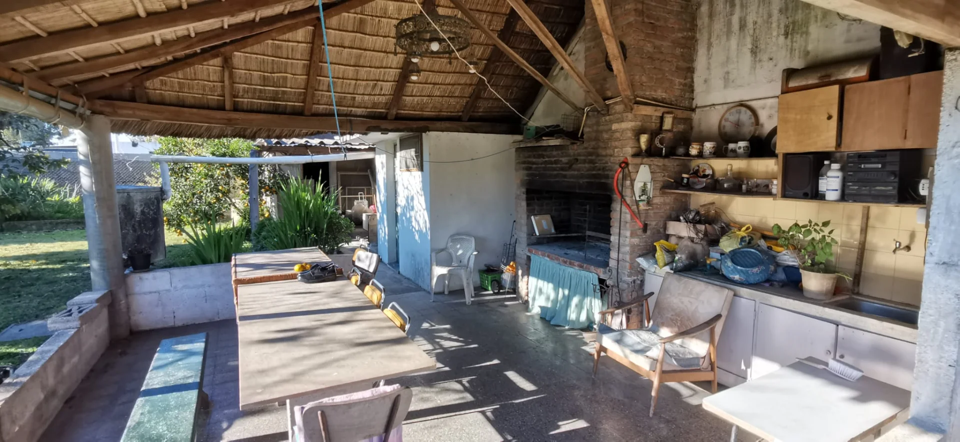Gran fondo con barbacoa techada, quincho, baño y galpón.