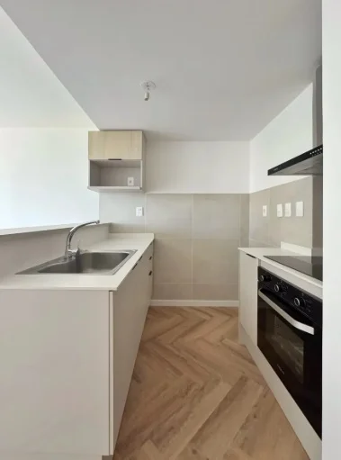 Espacioso living comedor, con muy linda cocina semi integrada. Equipada con Horno, anafe y campana. Todo a estrenar.
