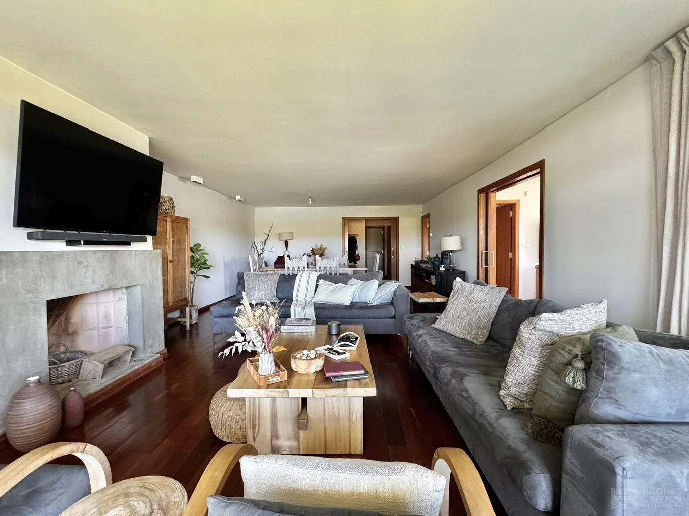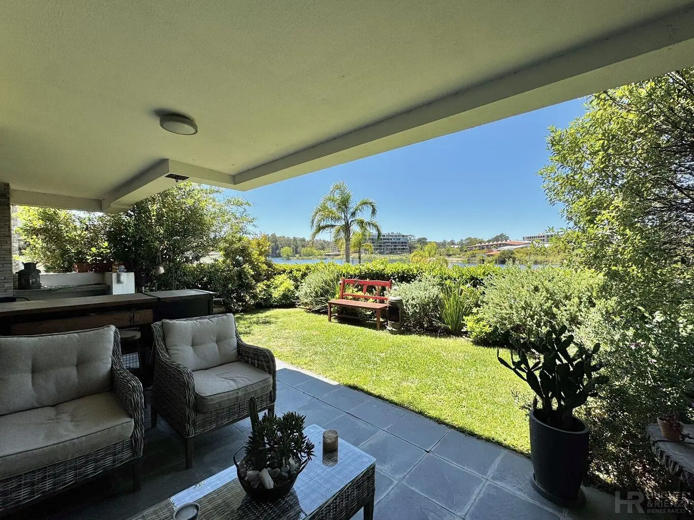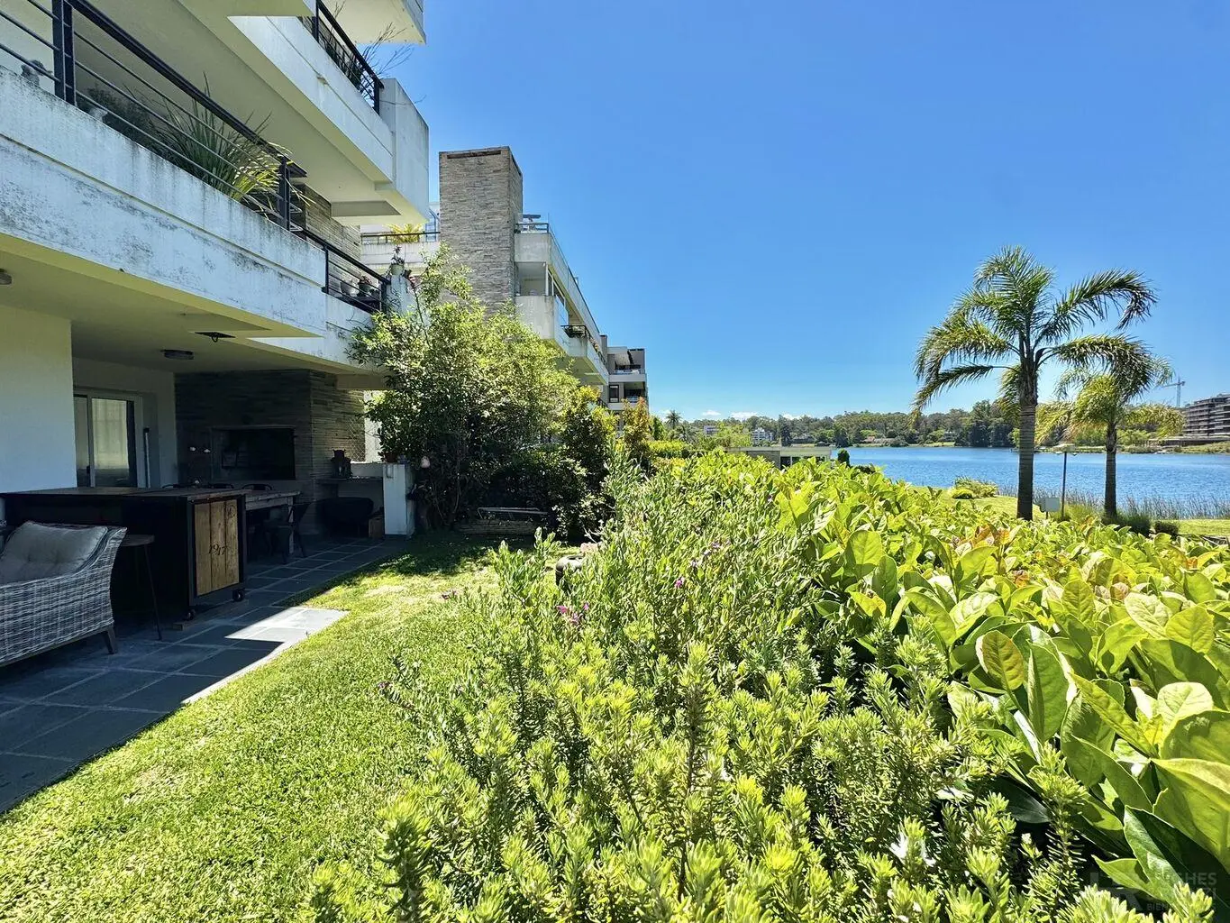 Divino apartamento como una casa, sobre el lago. Planta de 220m2. Hall de entrada con despojador y baño social. Gran living-comedor con estufa a leña, estar diario conectado a través de puertas corredizas. Salida a terraza con parrillero, jardin y vista al lago. Divina cocina con isla, lavadero y baño de servicio. 3 dormitorios y 2 baños completos, principal en suite. Escritorio o 4to dormitorio. Garaje cerrado y cochera abierta. Box. Calefacción por losa radiante eléctrica y agua caliente por caldereta a gas. Piscina, barbacoa cerrada y gimnasio, todo sobre el lago. Portería 24hs. Se entrega con cortinas de lino en toda la unidad.