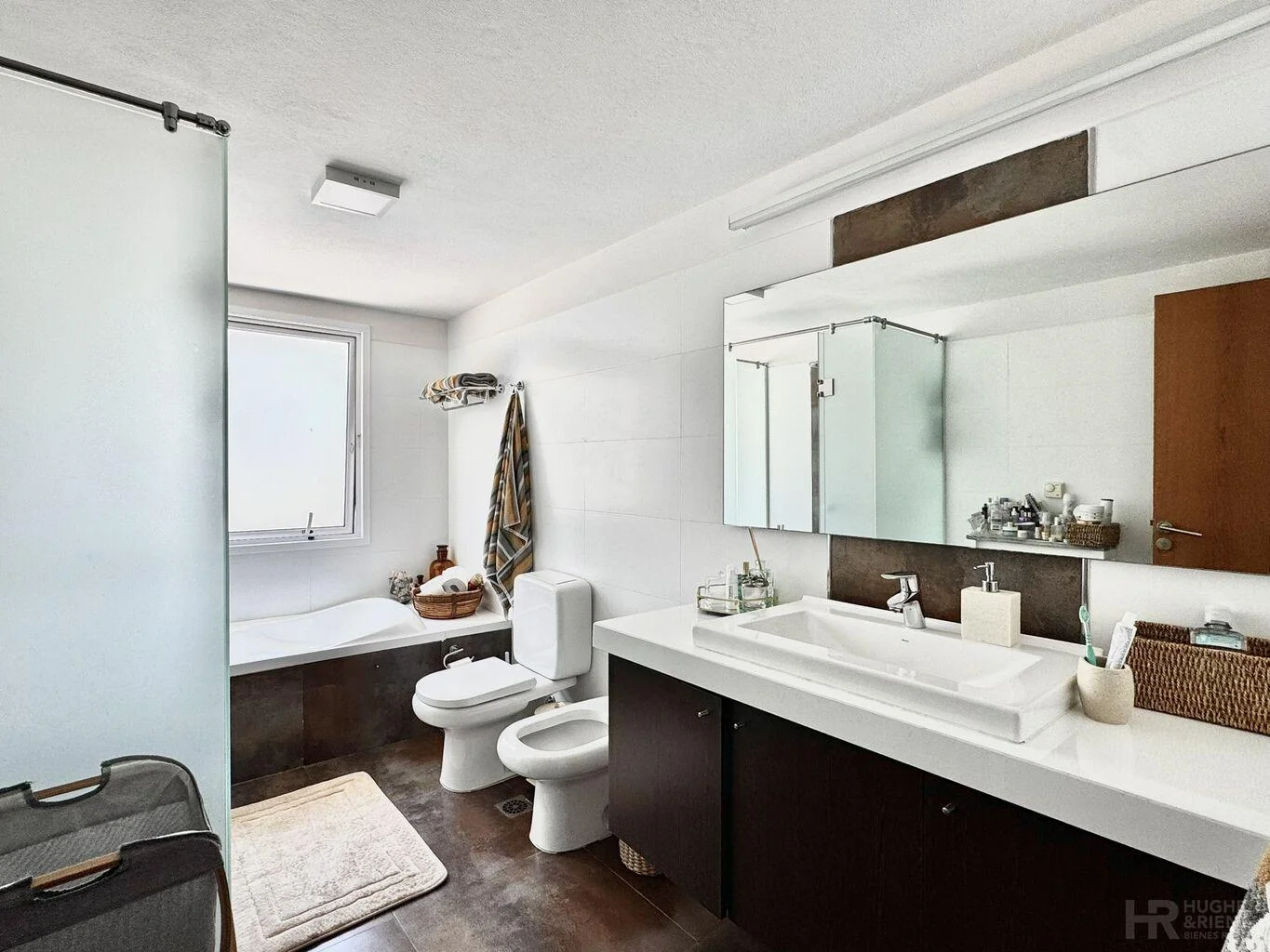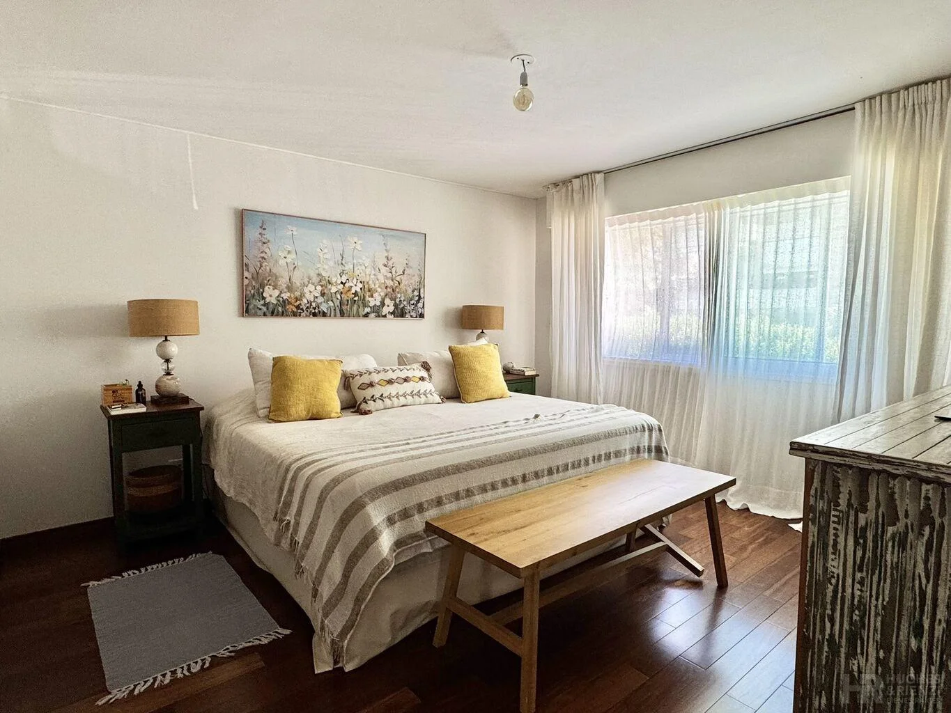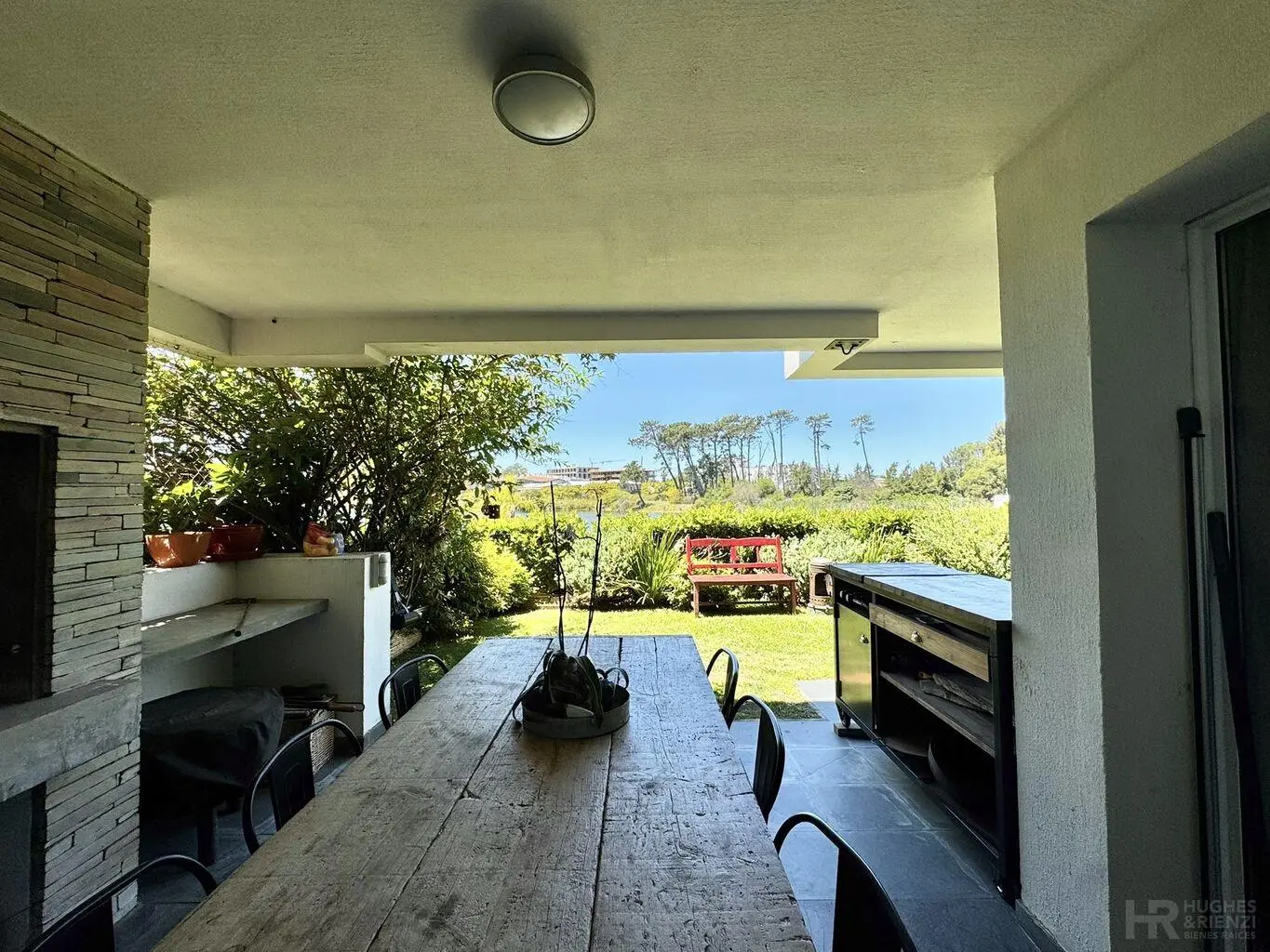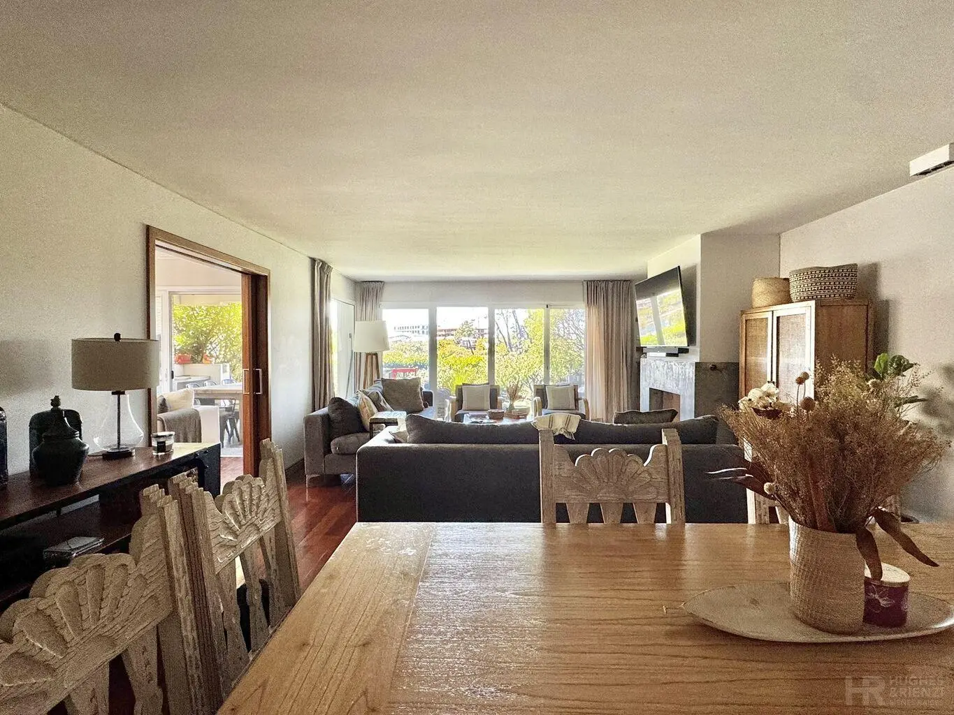 Divino apartamento como una casa, sobre el lago. Planta de 220m2. Hall de entrada con despojador y baño social. Gran living-comedor con estufa a leña, estar diario conectado a través de puertas corredizas. Salida a terraza con parrillero, jardin y vista al lago. Divina cocina con isla, lavadero y baño de servicio. 3 dormitorios y 2 baños completos, principal en suite. Escritorio o 4to dormitorio. Garaje cerrado y cochera abierta. Box. Calefacción por losa radiante eléctrica y agua caliente por caldereta a gas. Piscina, barbacoa cerrada y gimnasio, todo sobre el lago. Portería 24hs. Se entrega con cortinas de lino en toda la unidad.