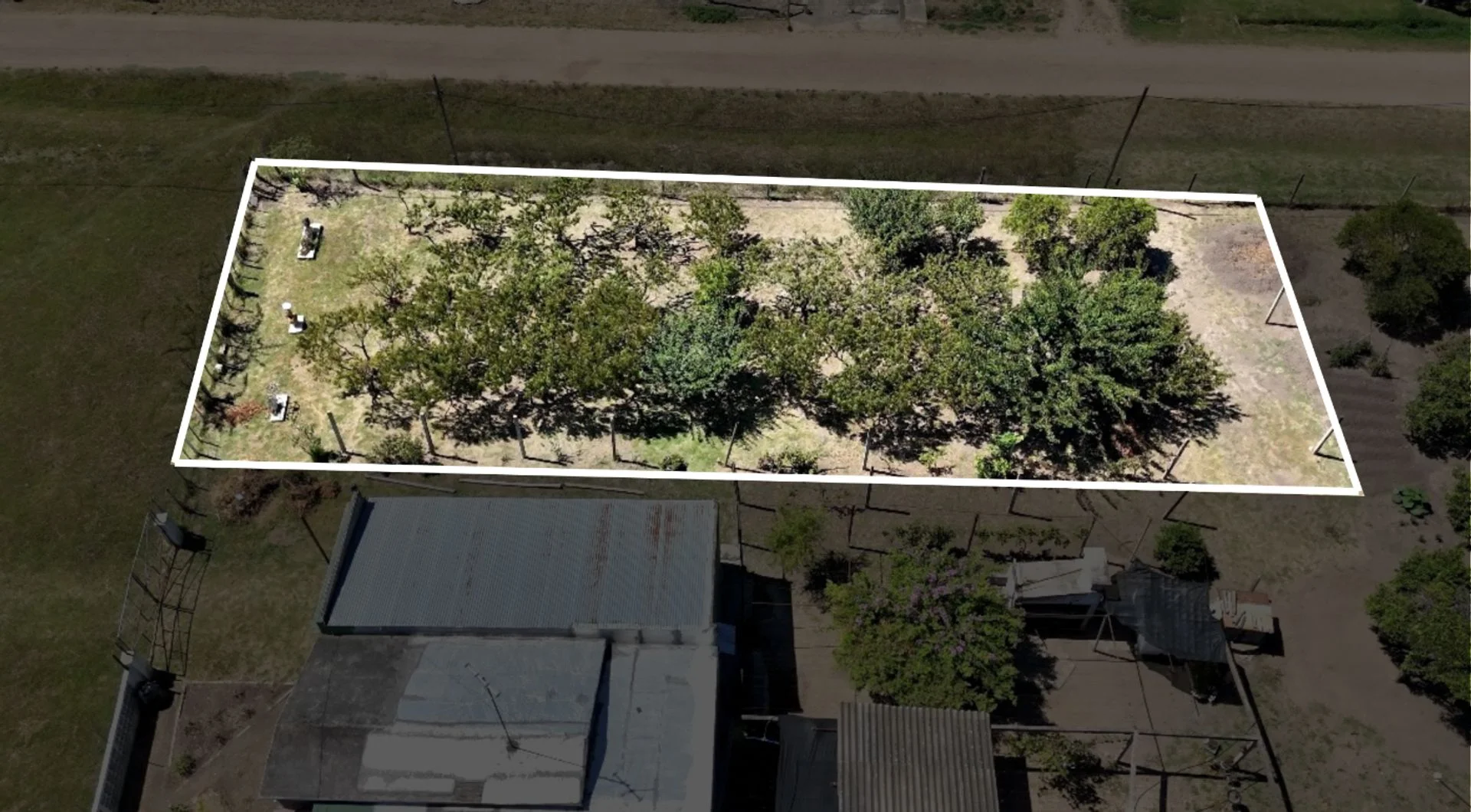 Cerramiento parcial existente en dos límites perimetrales, representando mejoras incorporadas al predio.