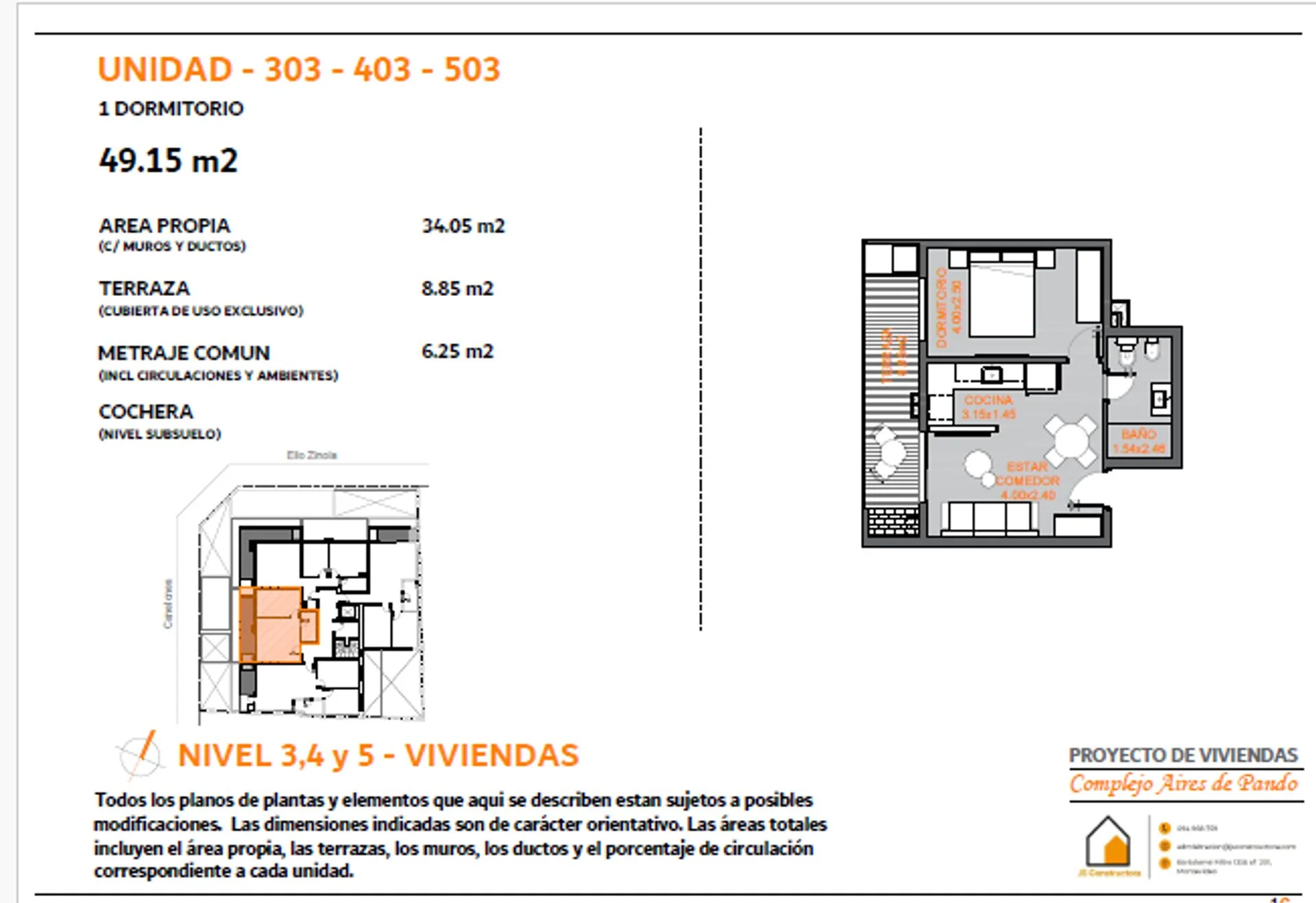 La unidad 503 se ubica sobre la calle Manuel Oribe (Ex Canelones), cuenta con 34m² propios de apartamento (living con cocina semi integrada mediante barra, lavadero, baño y un dormitorios) y gran terraza de 9² con parrillero propio.