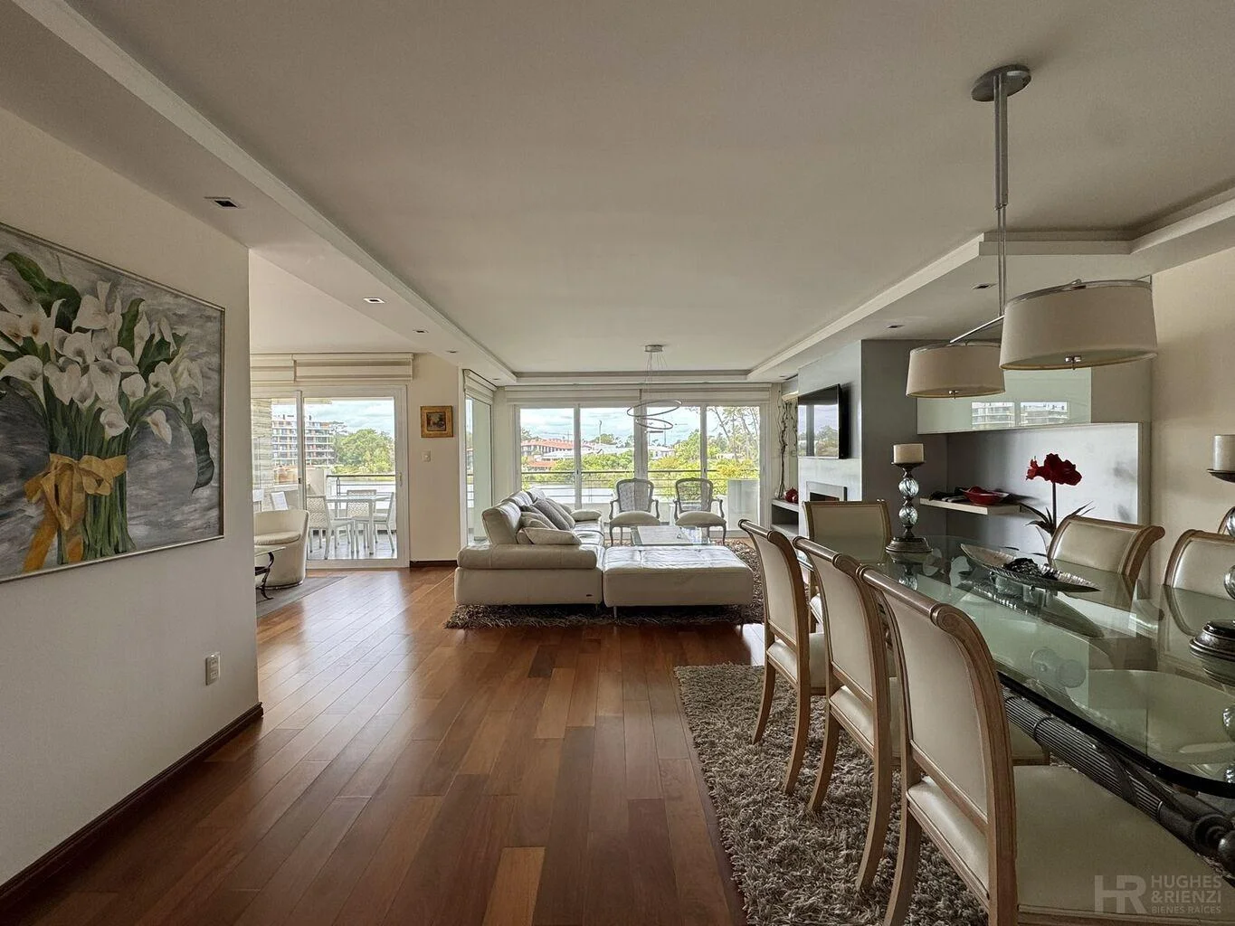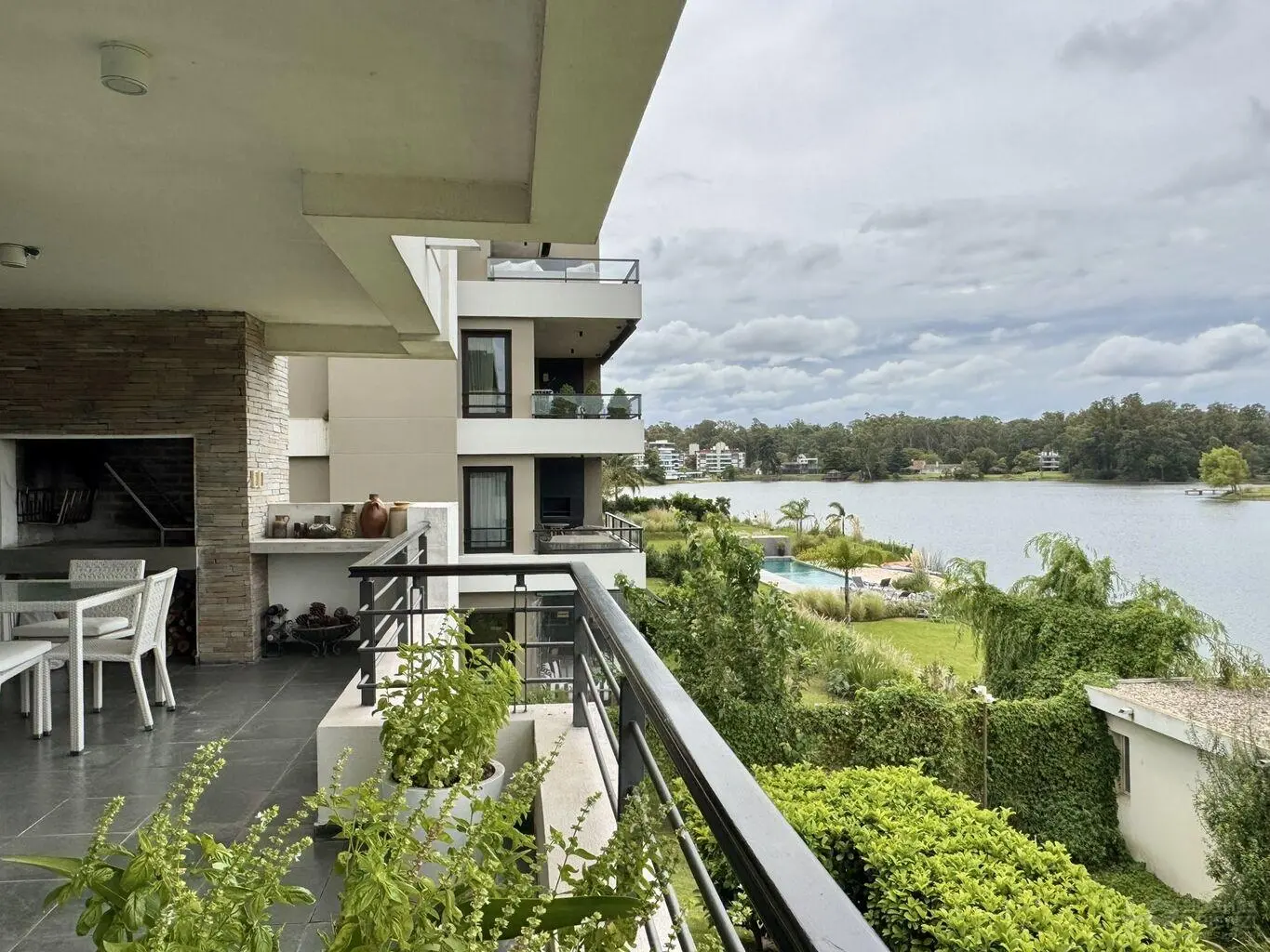 Espectacular planta sobre el lago, en Rincón del Lago. Hall de entrada y baño social. Gran living-comedor con estufa a leña, estar integrado con puertas corredizas; todo con salida a la terraza con parrillero y vista al lago. Cocina con office y vista al lago, terraza lavadero. Servicio completo o 4to dormitorio. 3 dormitorios y 2 baños, completos, principal en suite con gran vestidor. Calefacción por losa radiante eléctrica. Garaje doble y cochera exterior; box. Seguridad 24hs. Piscina, barbacoa y gimnasio sobre el lago.