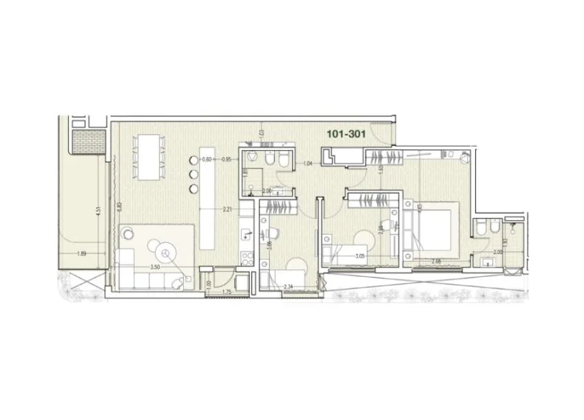 El apartamento de 3 dormitorios, ubicado en el piso 1 con orientación Oeste, cuenta con living comedor con salida a terraza, cocina integrada con muebles bajo mesada y aéreos.
