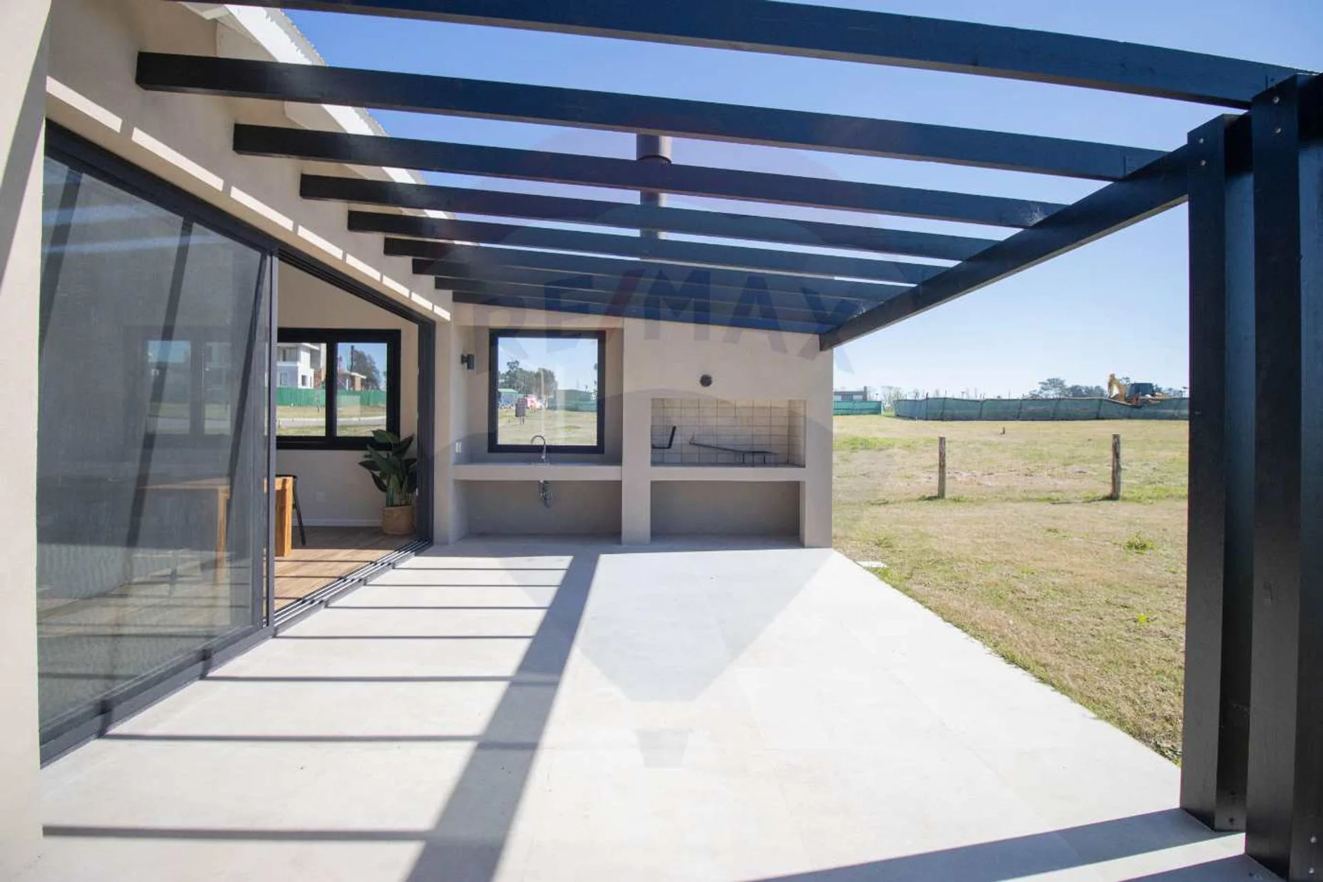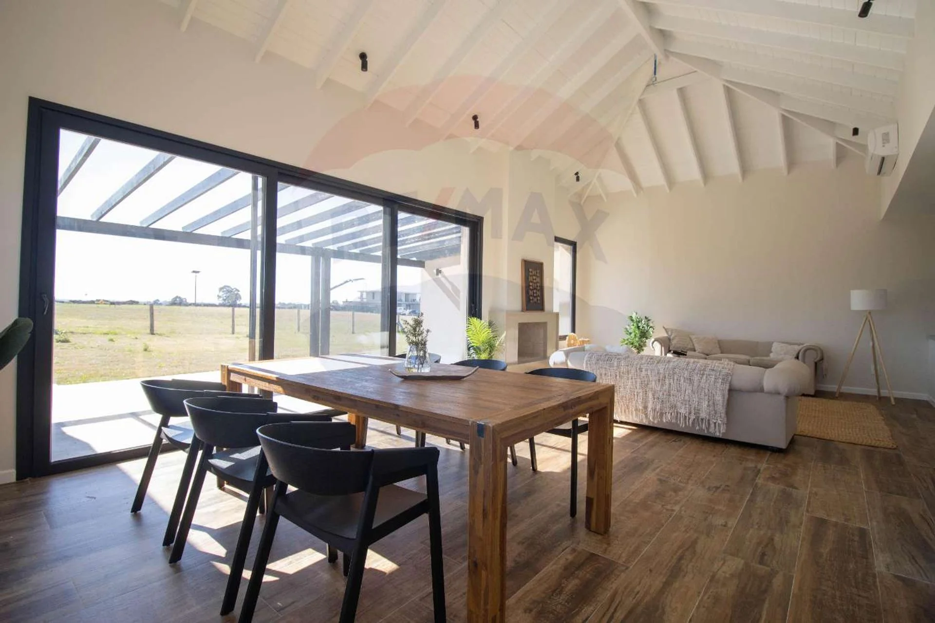 El living comedor es fácilmente integrable a la barbacoa mediante cerramientos rebatibles de triple hoja.