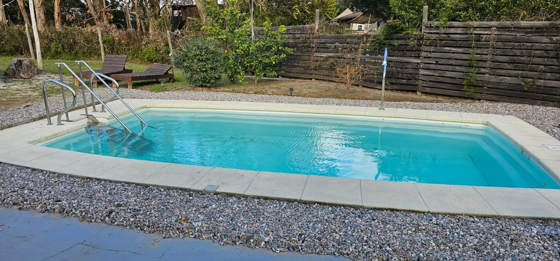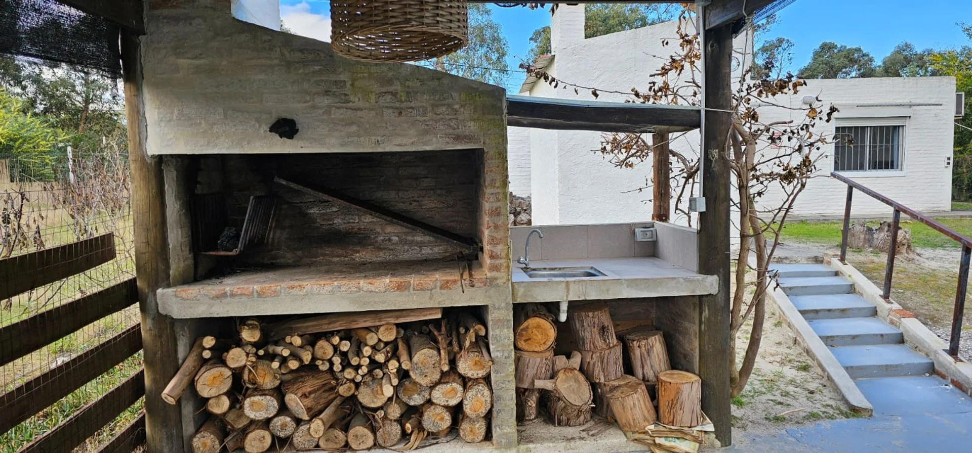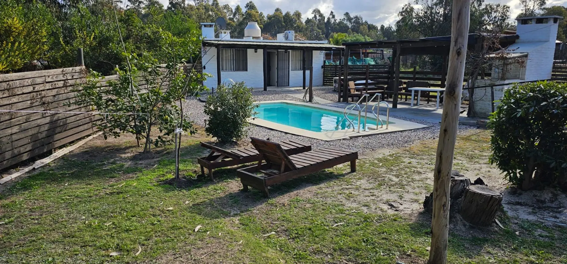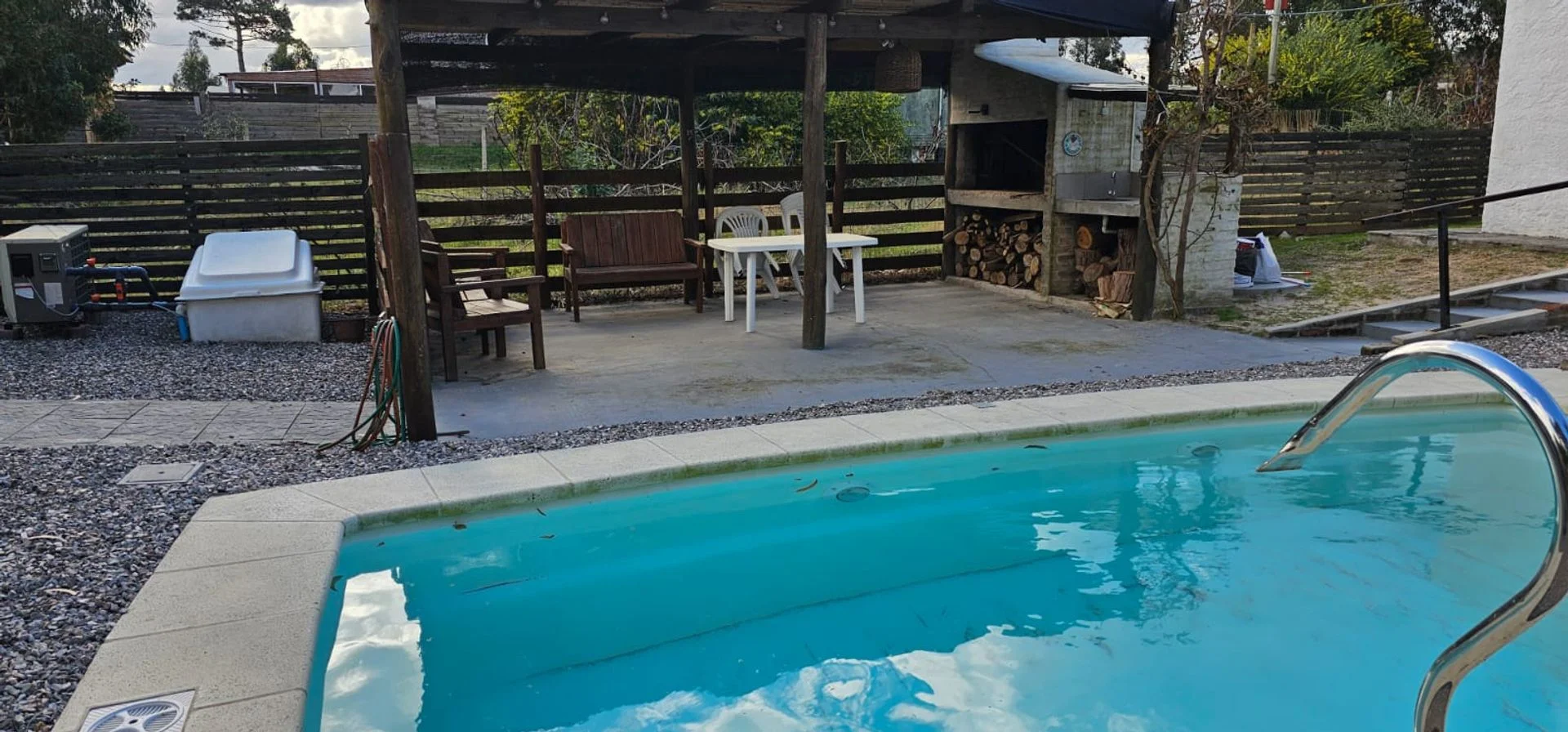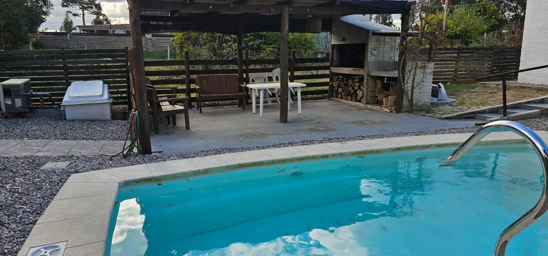 • Barbacoa de verano con parrillero junto a la piscina