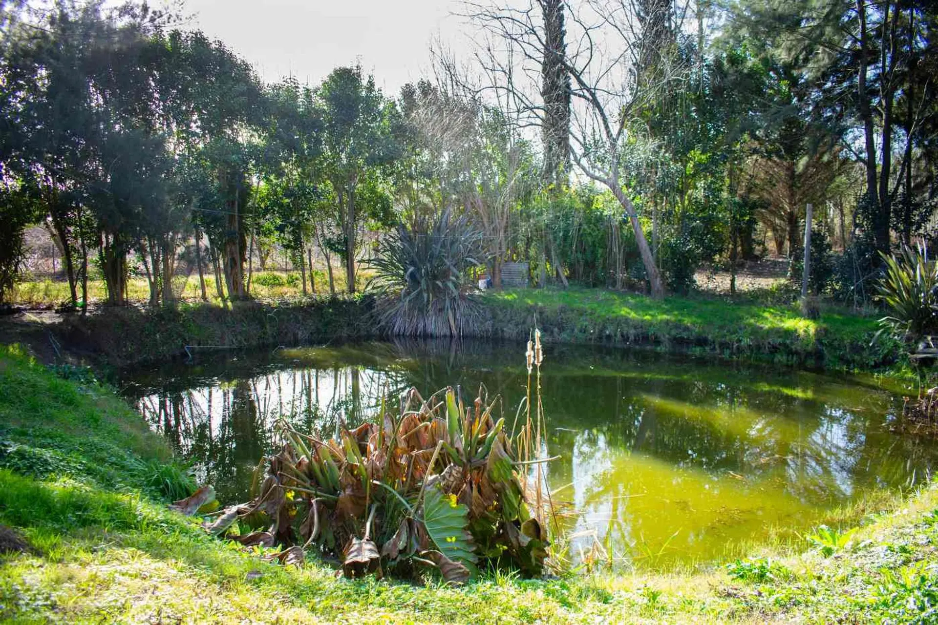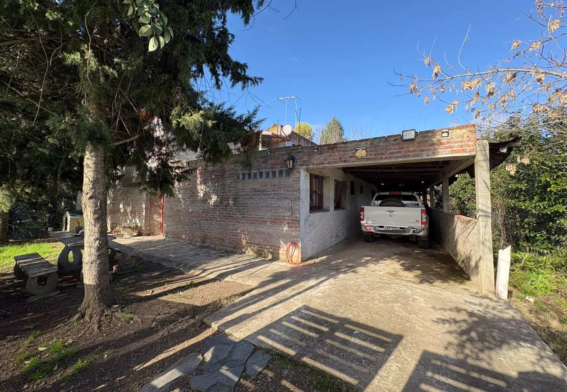 La casa se encuentra junto al camino vecinal en un entorno tranquilo y natural con un tajamar, vegetación, árboles y gran superficie verde.