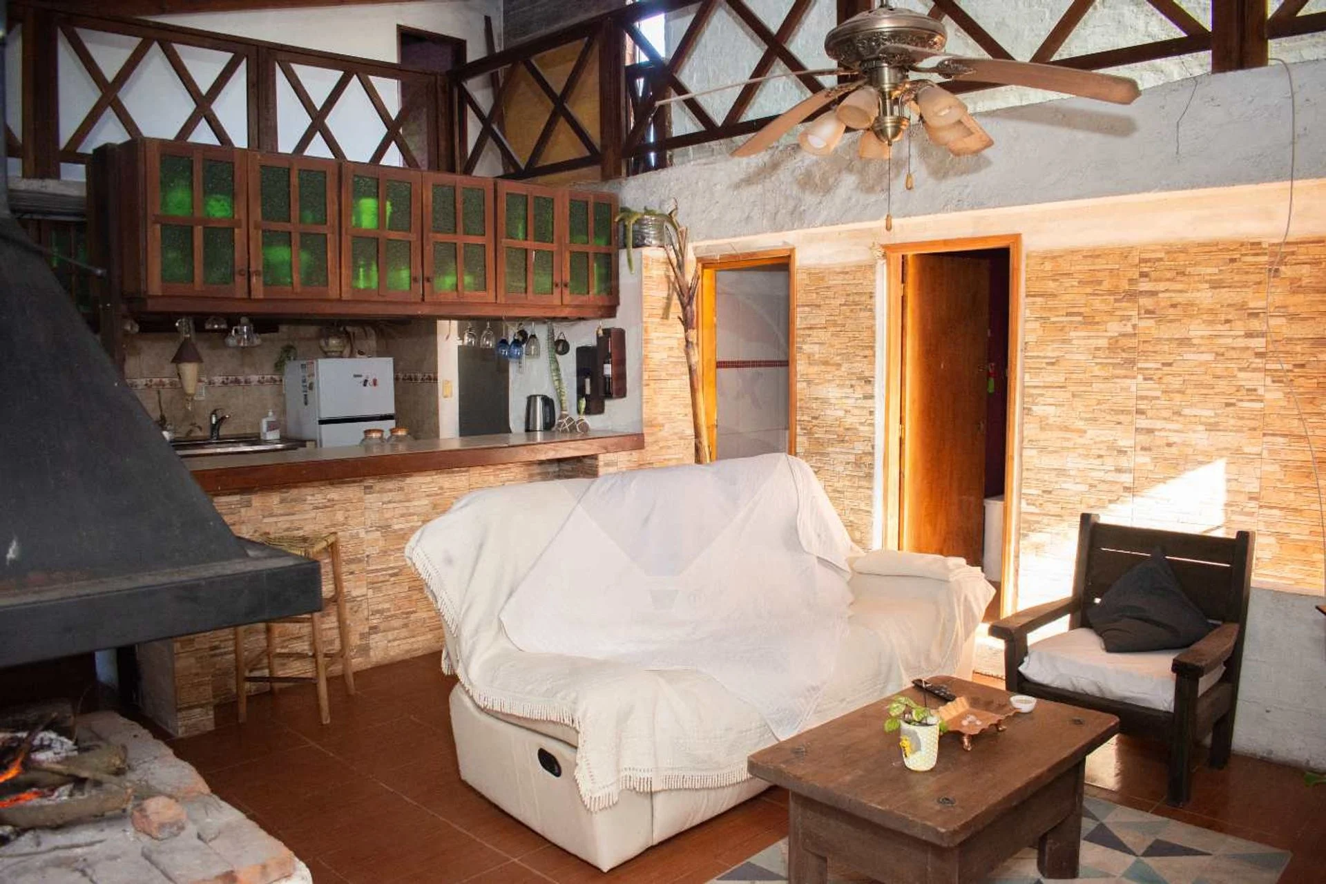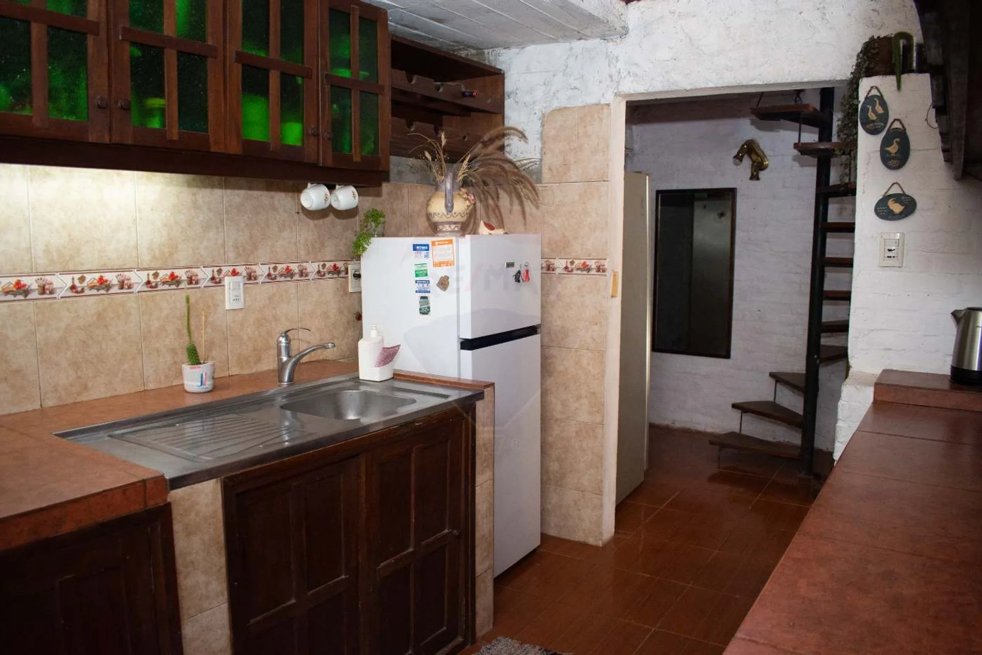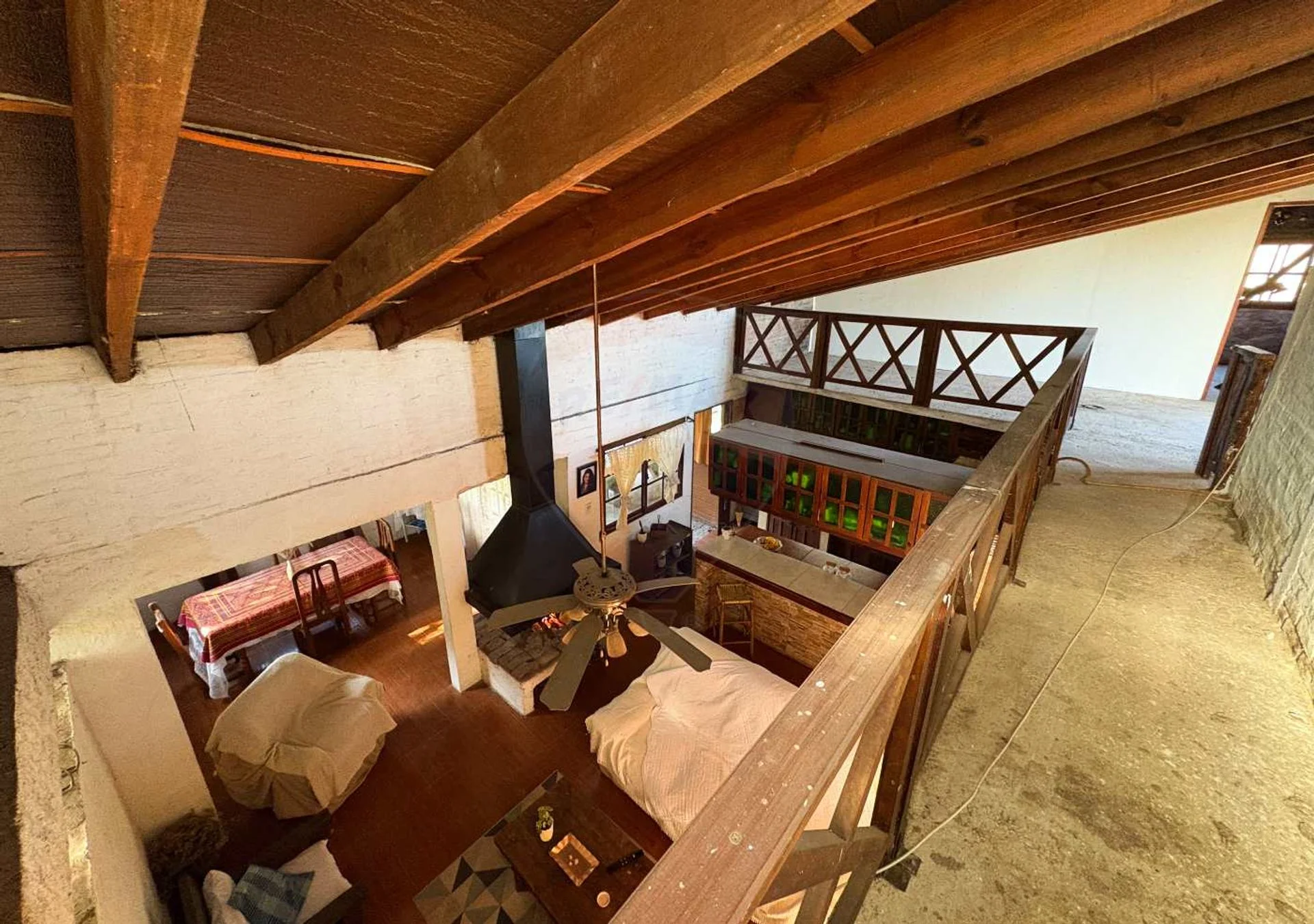 En el piso superior al cual se accede por una escalera caracol, hay un amplio dormitorio y un gran espacio desde donde se ve la planta baja.