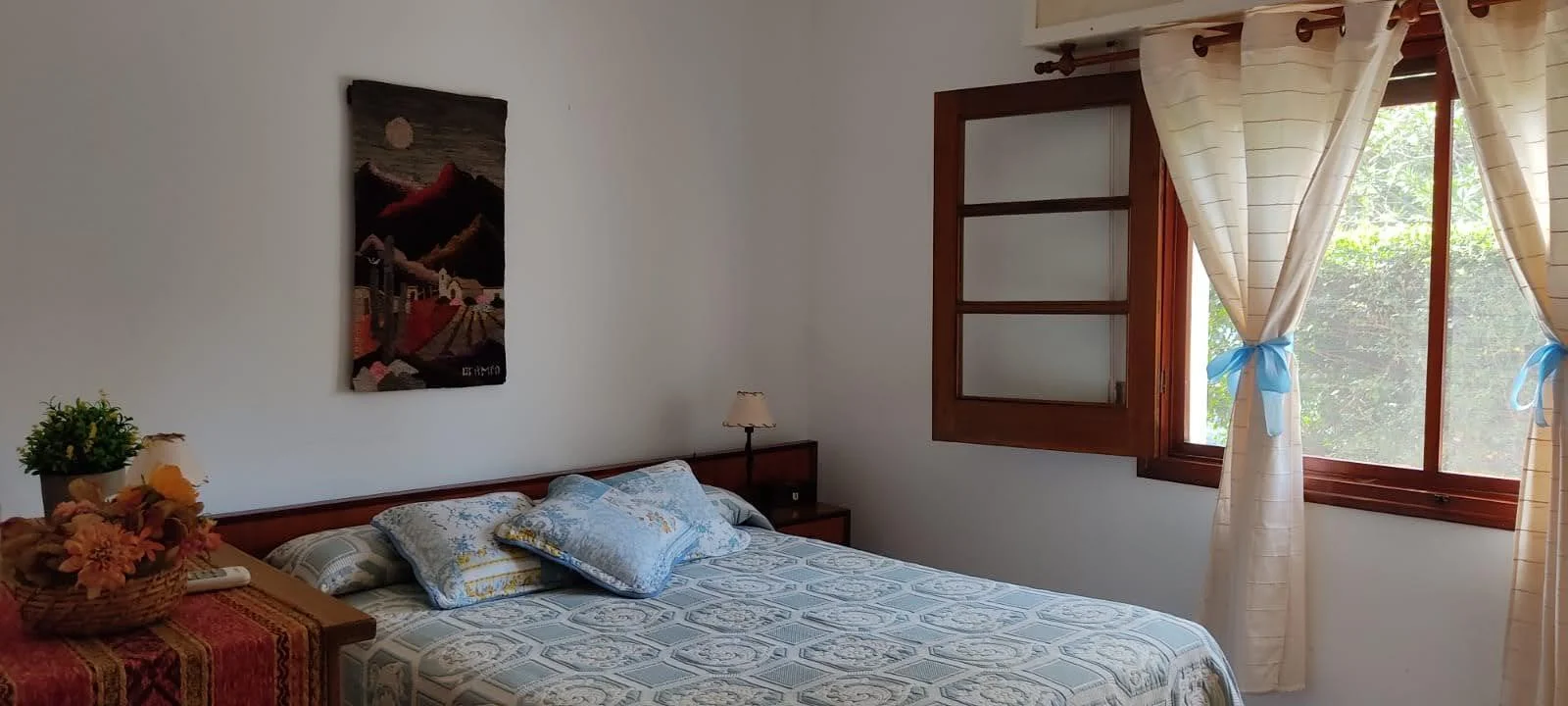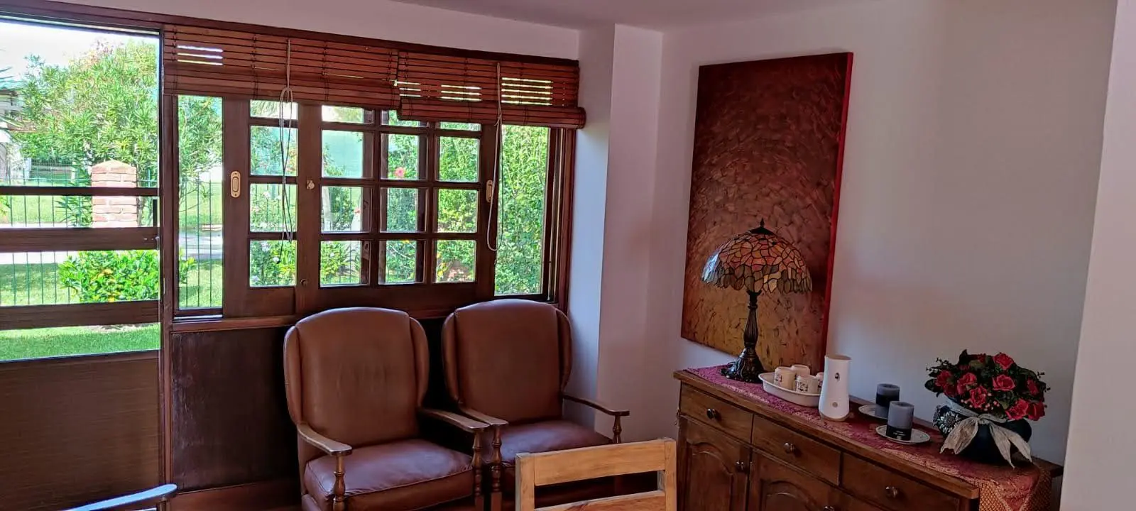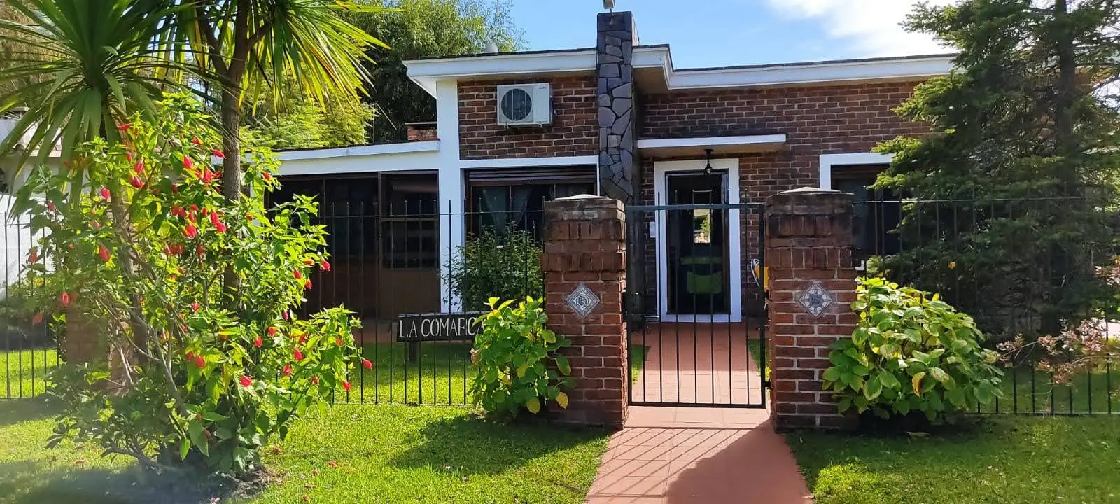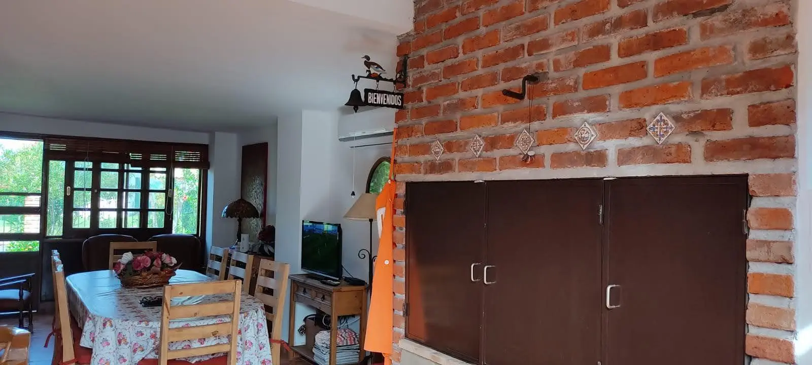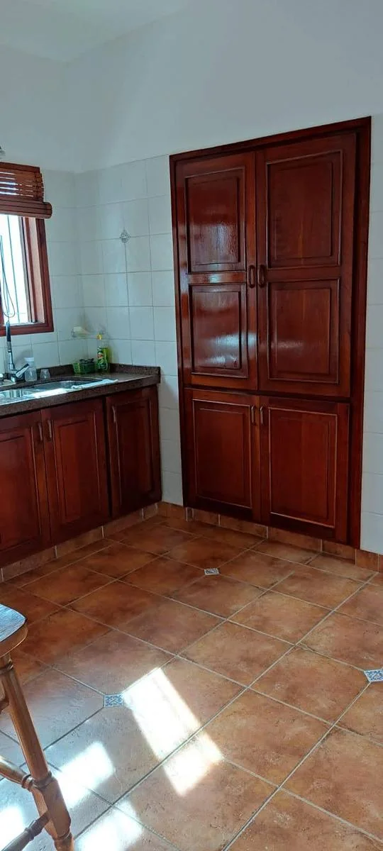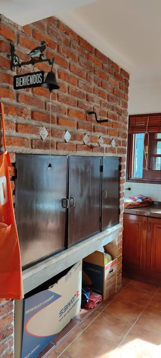 Cuenta también con barbacoa techada, cocina exterior con parrillero, dos cocheras (una semicubierta y otra independiente), cinco aires acondicionados instalados y sistema de alarma. La construcción es de doble pared de ladrillo, lo que garantiza solidez y buen aislamiento.