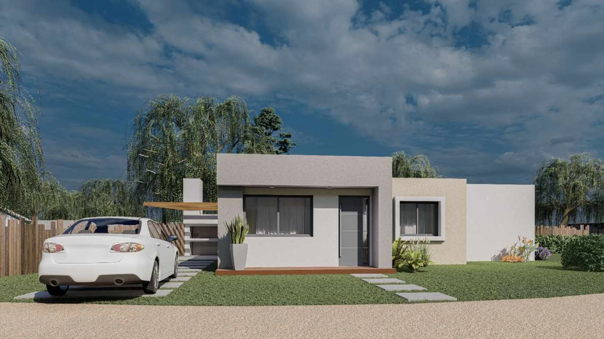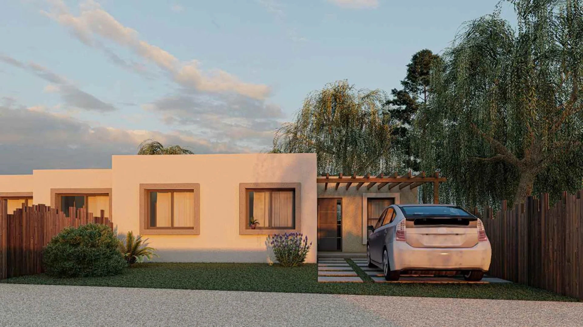 Tiene acceso para auto con pérgola.