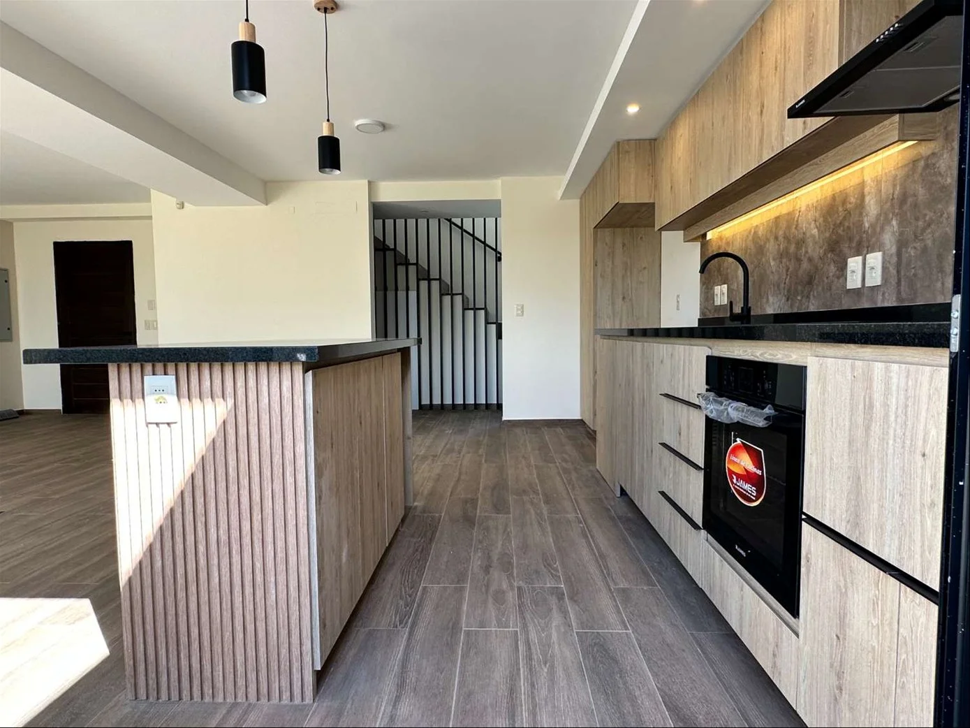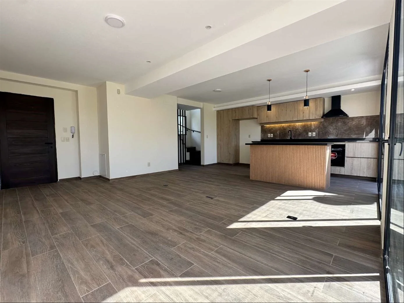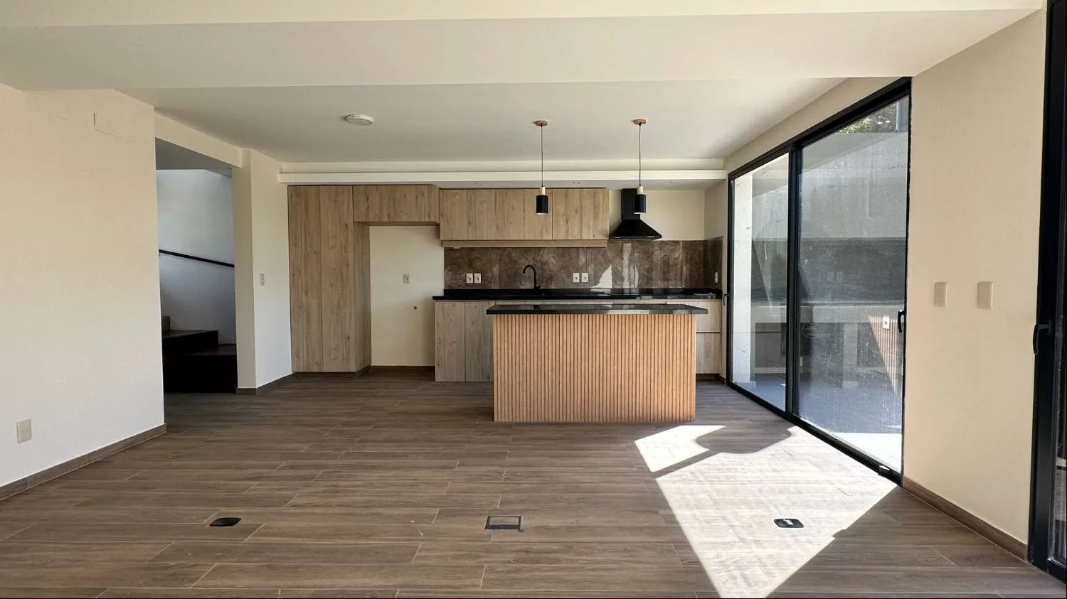 Living, comedro y cocina integrado orientado al norte, grandes ventanales que permiten el ingreso de luz natural. Cocina equipada con horno-anafe y extractor, lugar para lavaplatos. Todos los ambientes integrados a pergola con parrillero y salida a jardin.