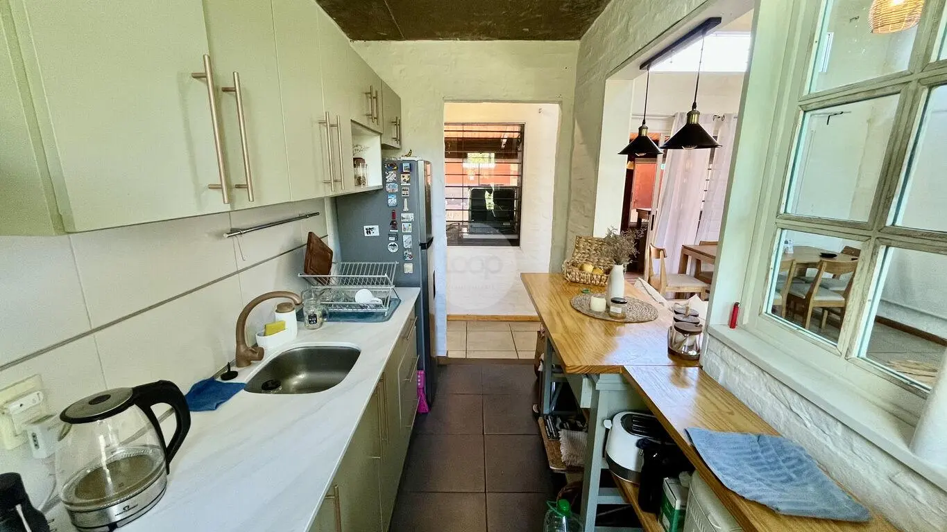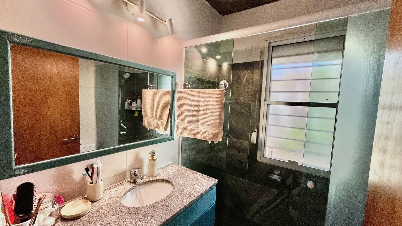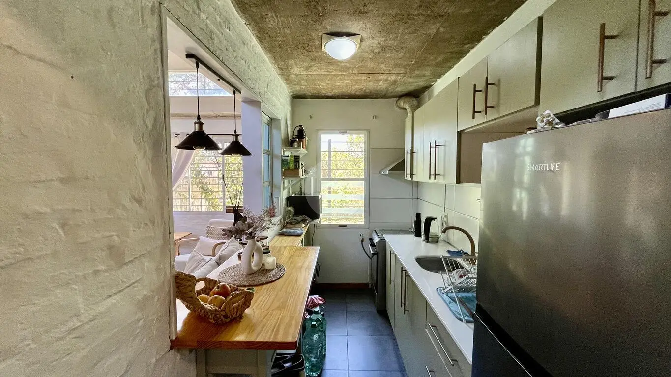 - A la derecha se encuentra un ambiente independiente con kitchenette y baño completo, actualmente acondicionado como estudio de arte. Su distribución permite adaptarlo fácilmente a espacio de trabajo, barbacoa o tercer dormitorio