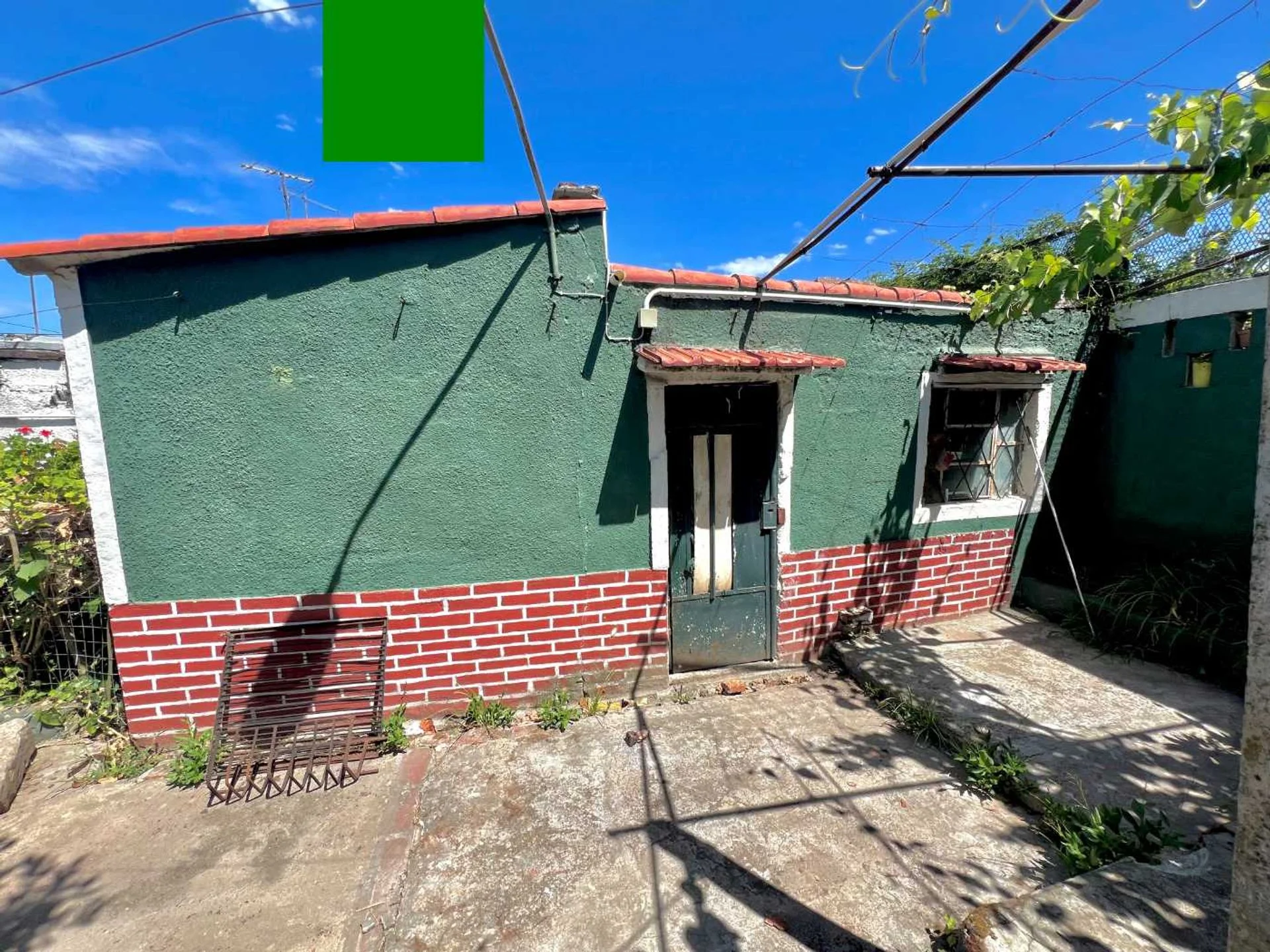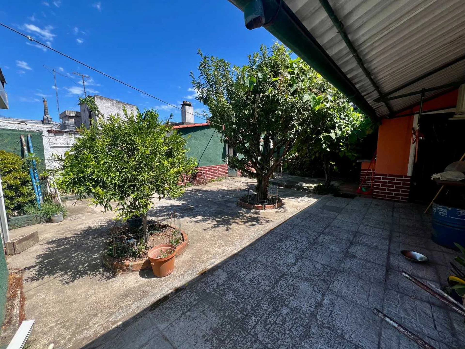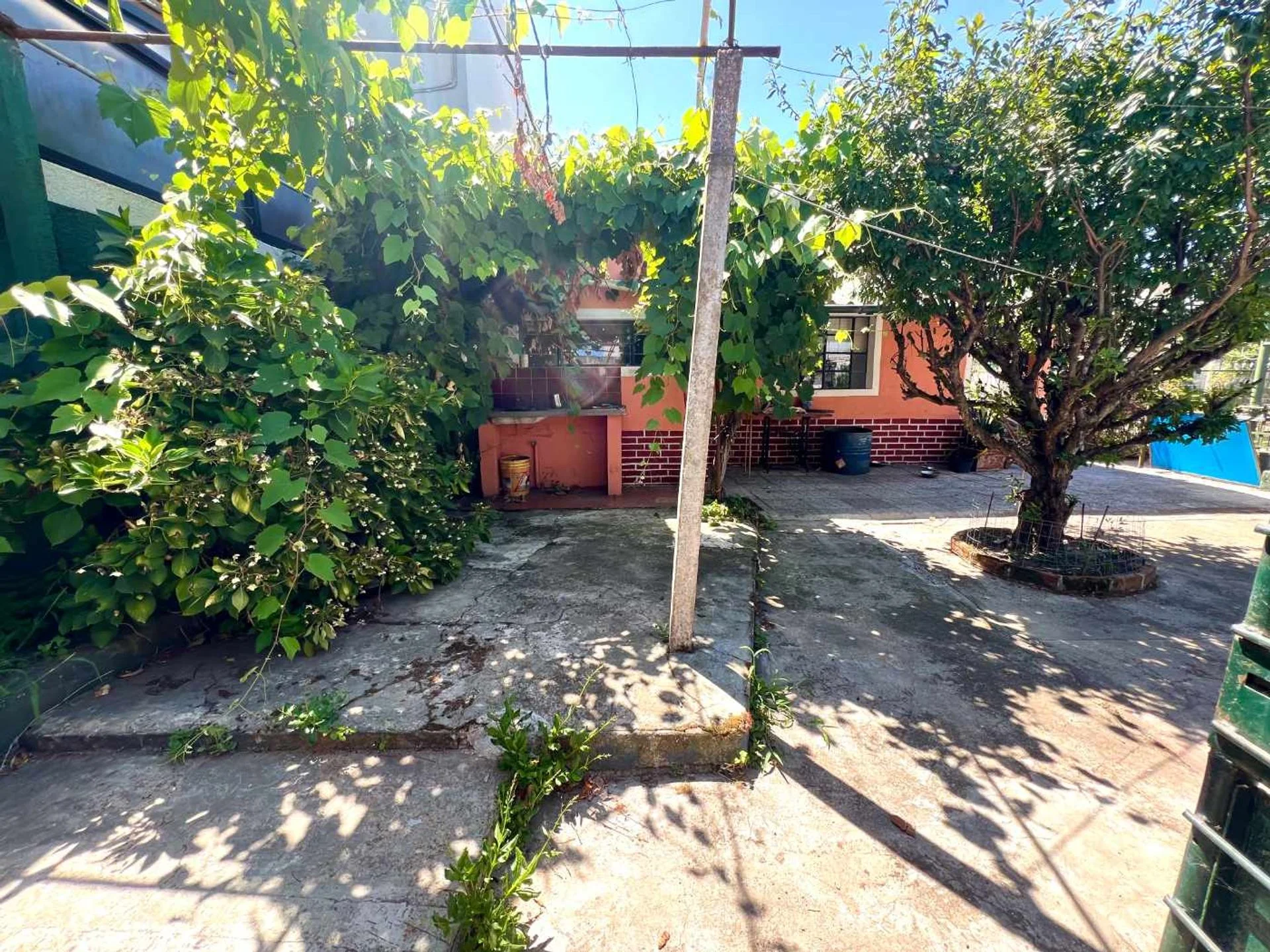 Fondo con alero y pérgola con parra