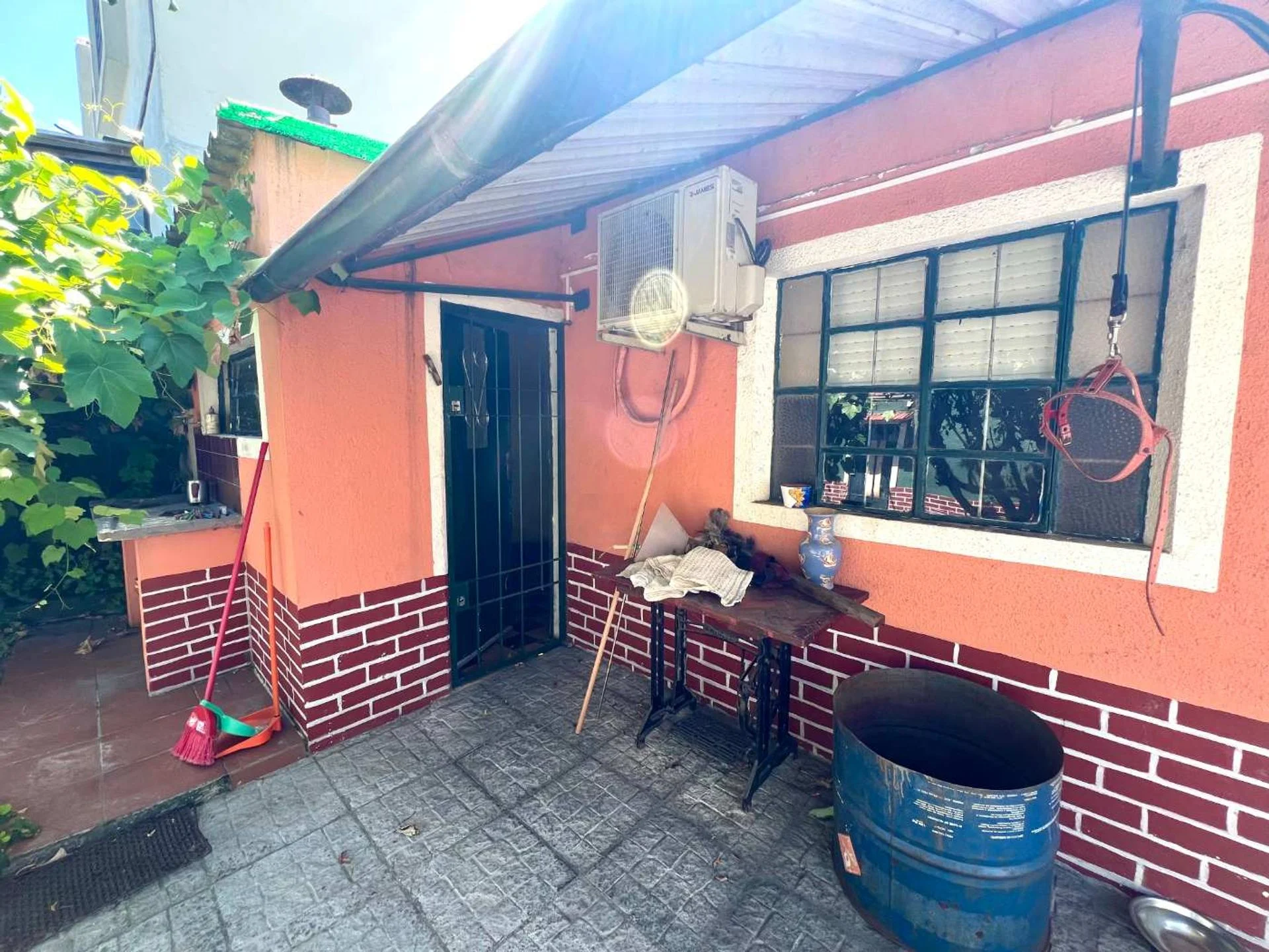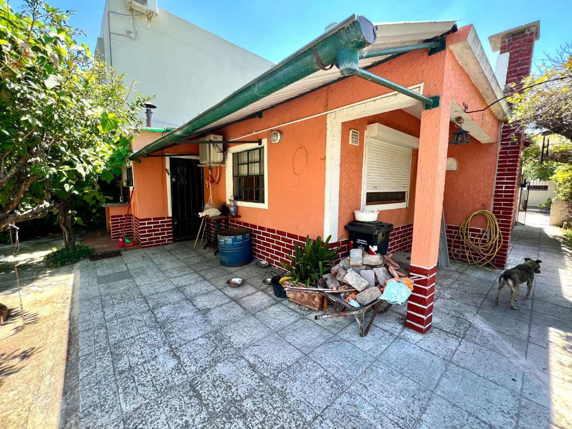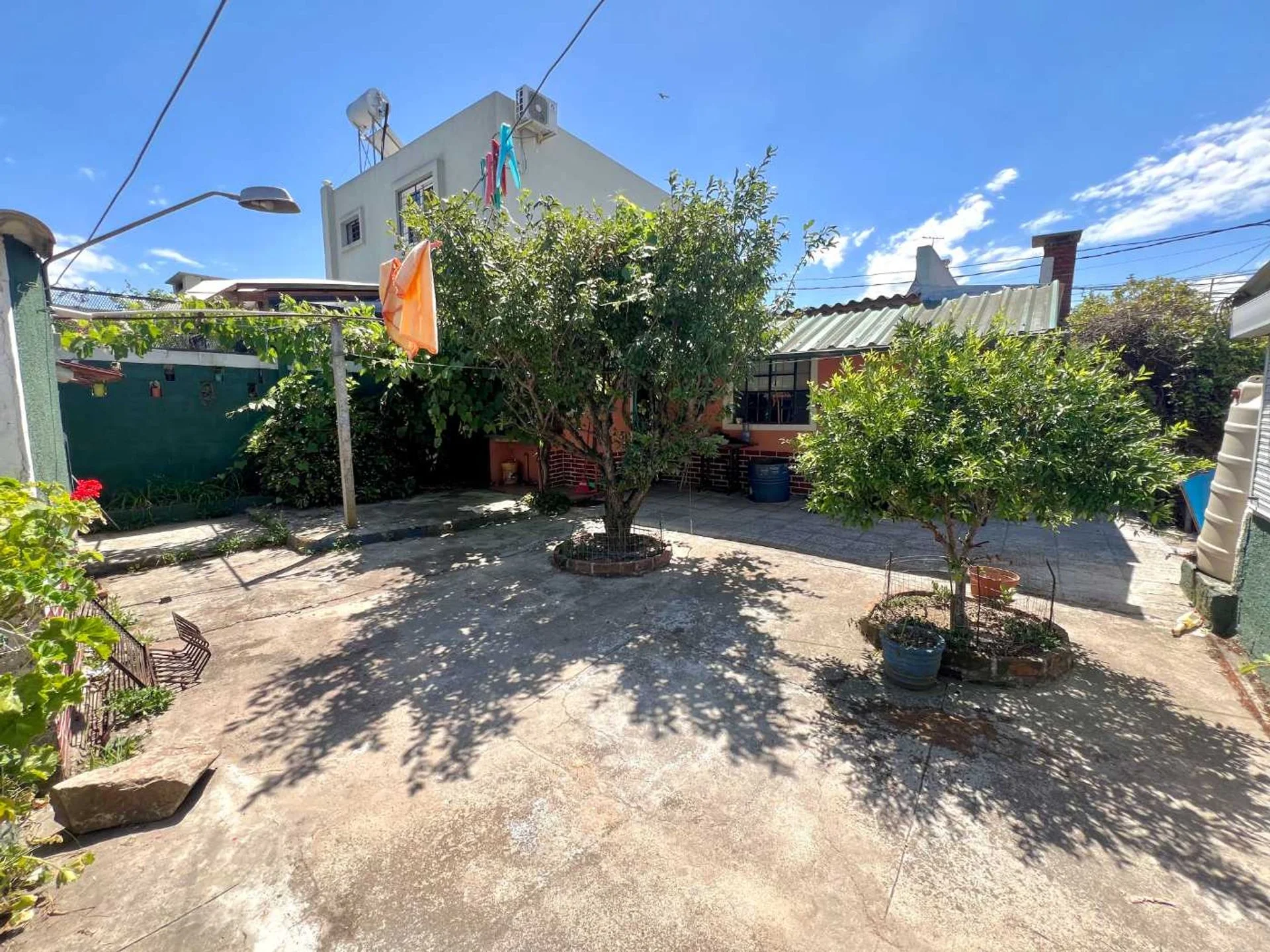 Fondo con alero y pérgola con parra