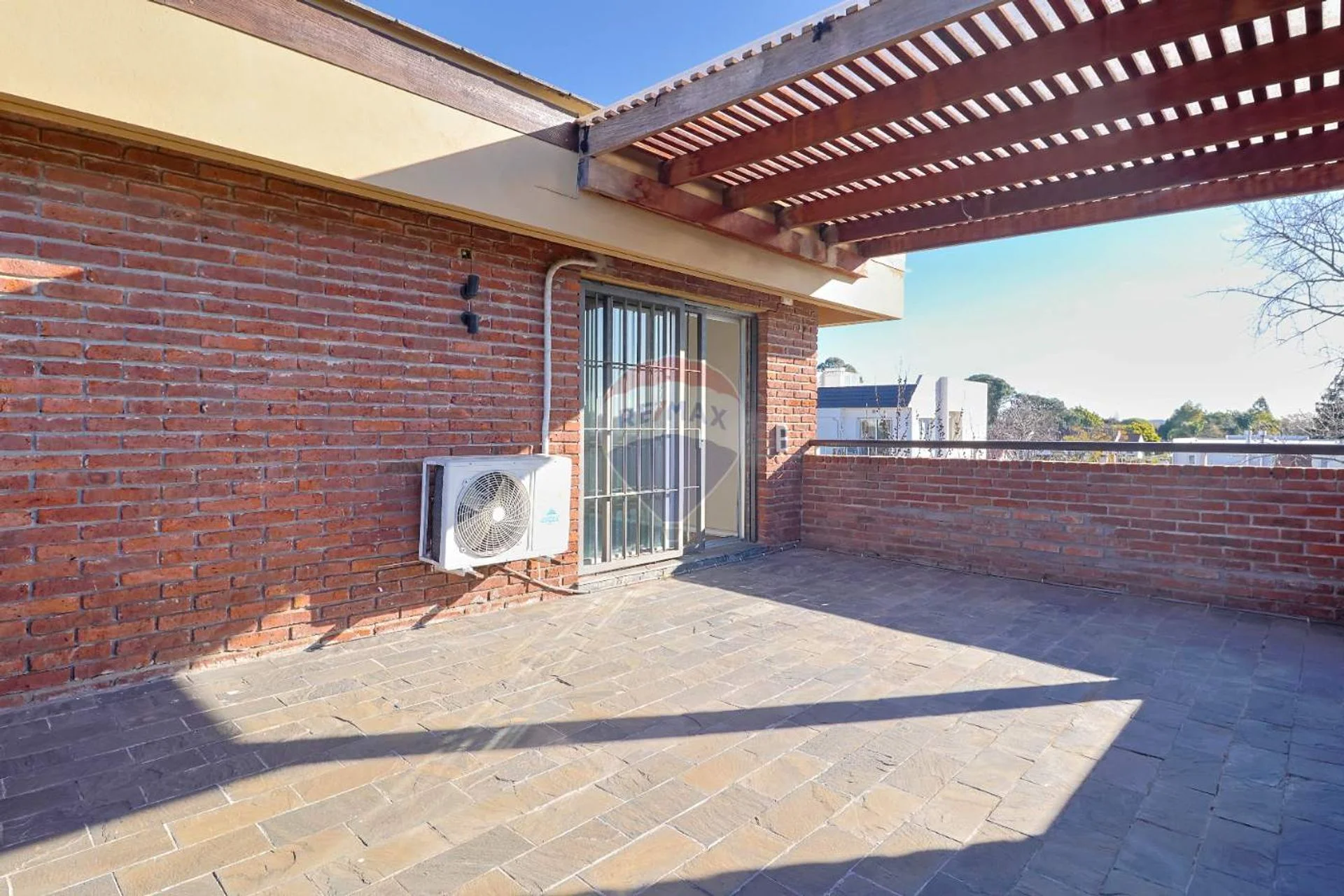 En este dormitorio tenemos uno de los espacios más lindos de la casa, la gran terraza semi pergolada con vistas despejadas al frente y al fondo.
