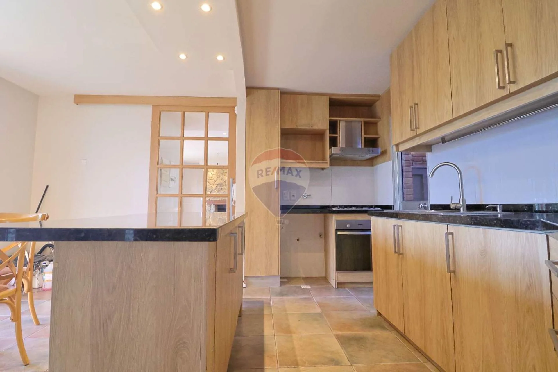 Desde el living accedemos a la cocina la que es definida y de buen tamaño, isla central muy còmoda, placares de guardado y comedor diario que da al frente hacia el jardìn. Desde la cocina hacia el fondo tenemos el espacio de lavado y una buhardilla de guardado. La cocina tiene placares aéreos y bajo mesada, mesada de granito, mueble tipo vajillero con puertas de vidrio de nobles maderas y puerta corrediza que separa la cocina del área social. En la misma planta baño social.