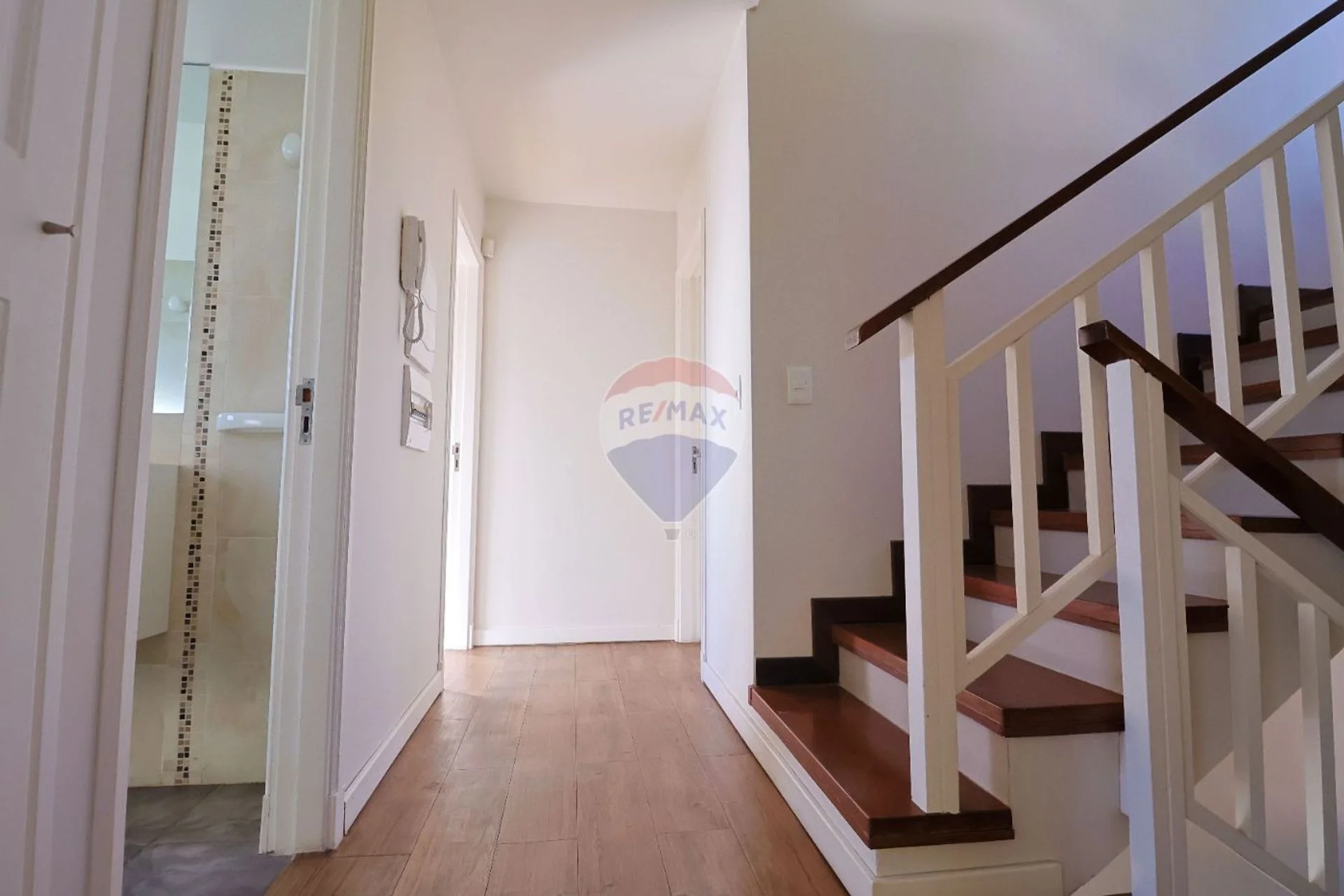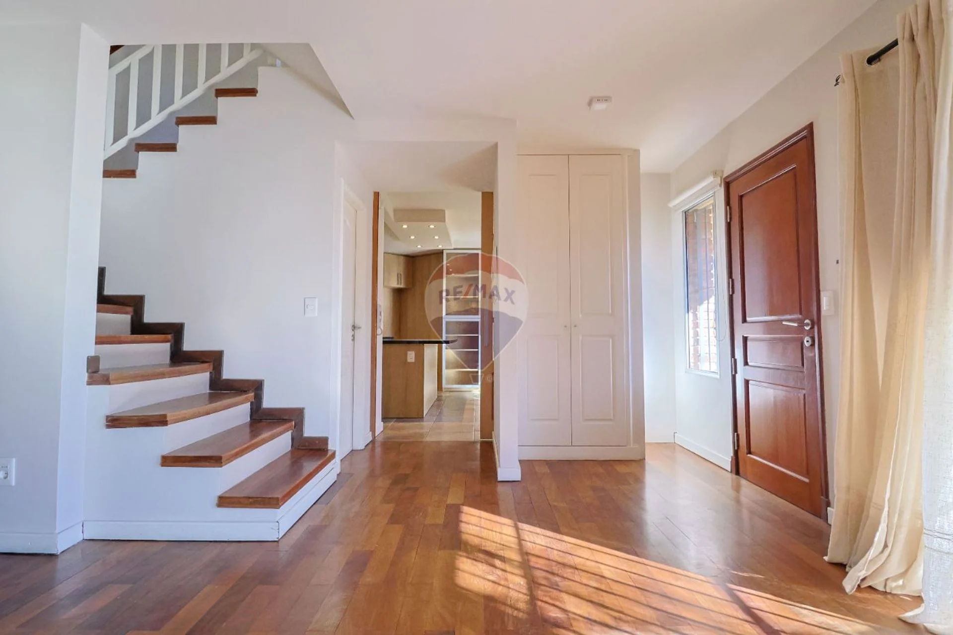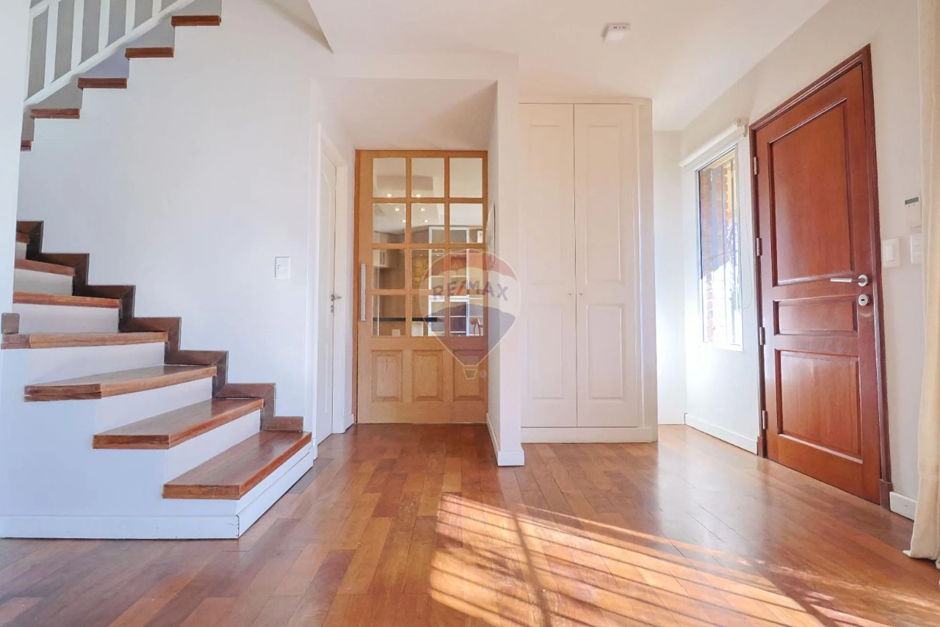 Por cómoda escalera de lapacho accedemos la segunda planta que nos recibe con un gran dormitorio con vistas al frente, puerta corrediza de sólida madera, placard , aire acondicionado y baño completo en suite.