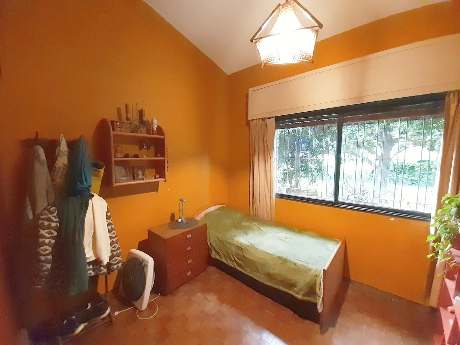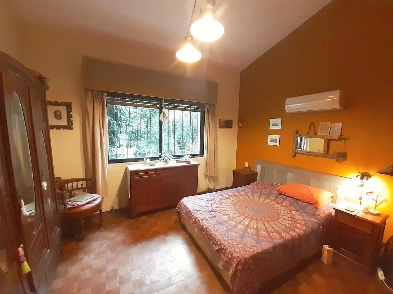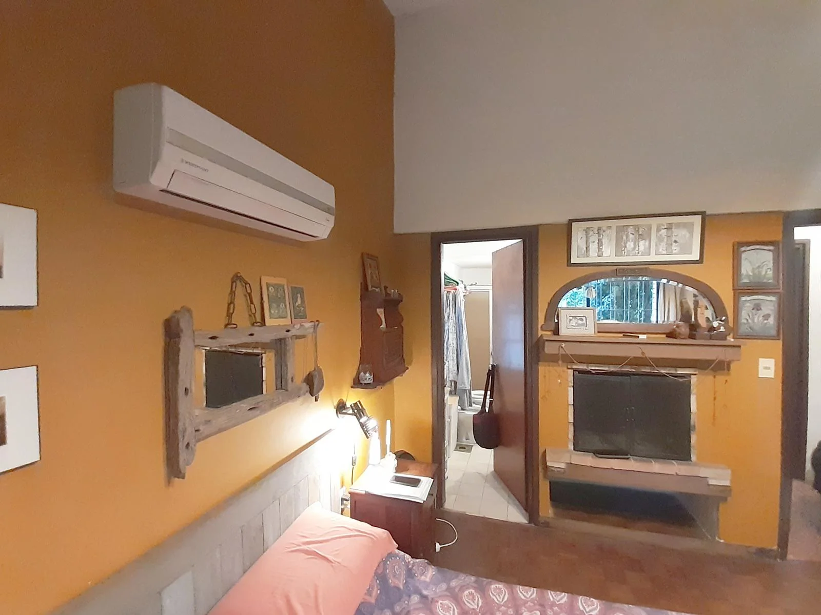 3 dormitorios, Dormitorio Principal con baño en suite, estufa a leña y aire acondicionado. Segundo dormitorio amplio con placard y tercer dormitorio más pequeño.
