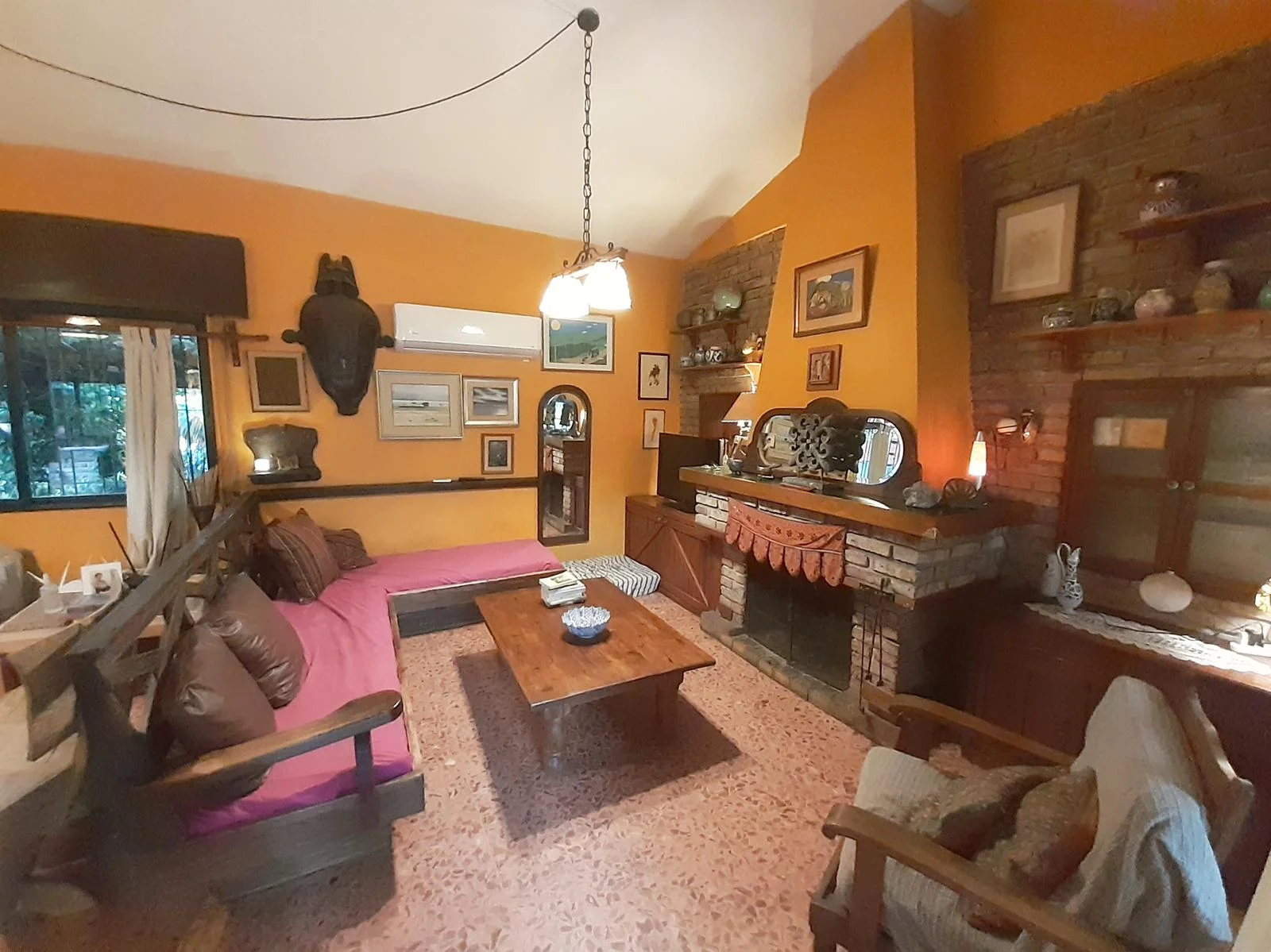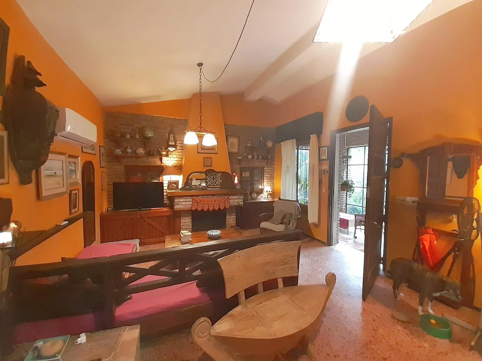 Amplio living con estufa a leña y aire acondicionadoCocina comedor con salida al patio