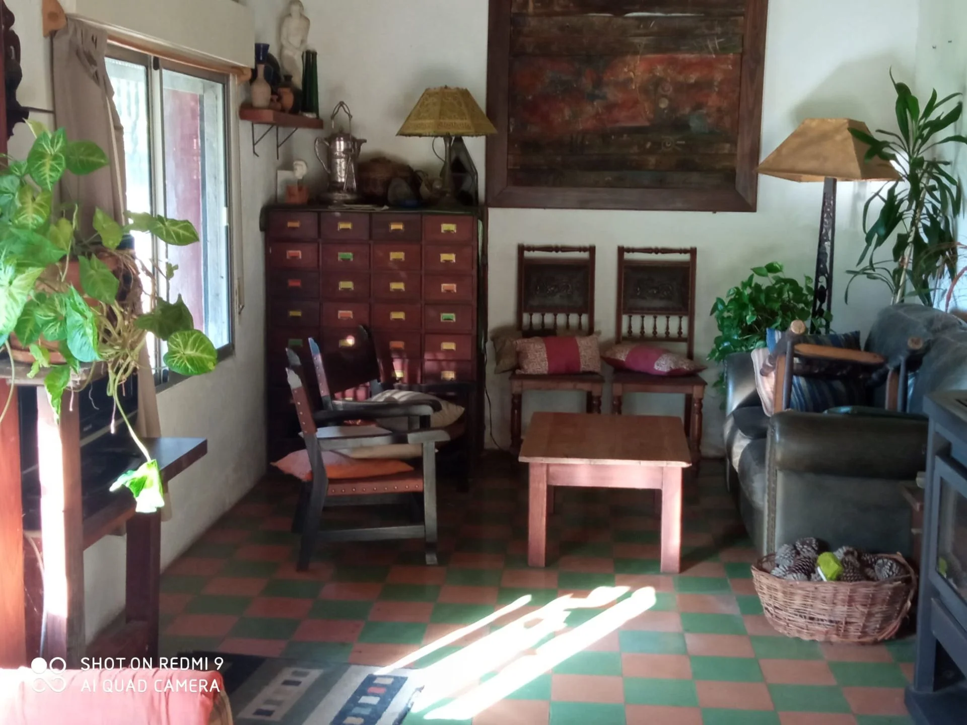 La casa secundaria cuenta con: galería, techo de chapa aislante, cielorraso, living comedor loft campestre piso de porcelanato, paredes de ladrillo, un dormitorio, estufa a leña de hierro, cocina mesada de hormigón con porcelanato, baño completo, ventanas en madera todas con mosquiteros.