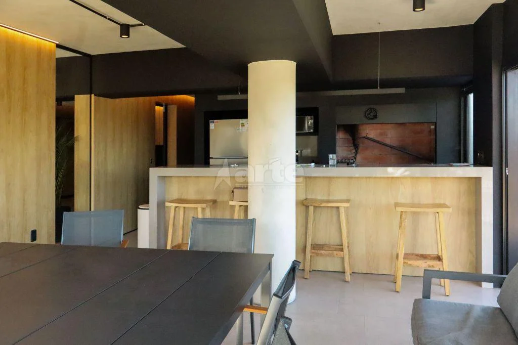 Divino apartamento frente al mar con espectacular terraza con parrillero. Amplio living comedor con cocina integrada mirando el mar y dormitorio también hacia el mar, ambos ambientes dan a una cómoda terraza con parrilero de 17m2.