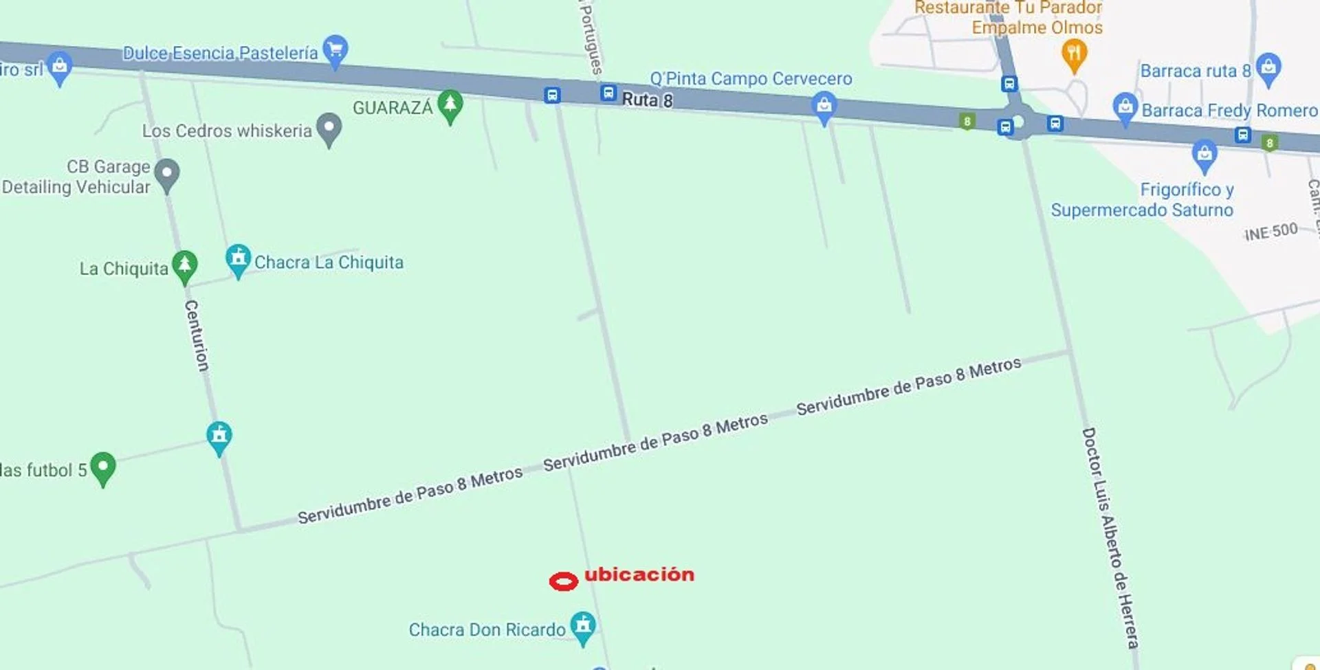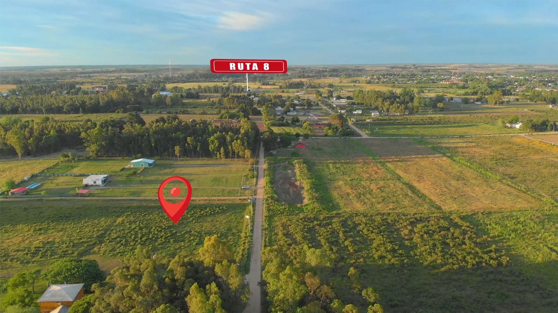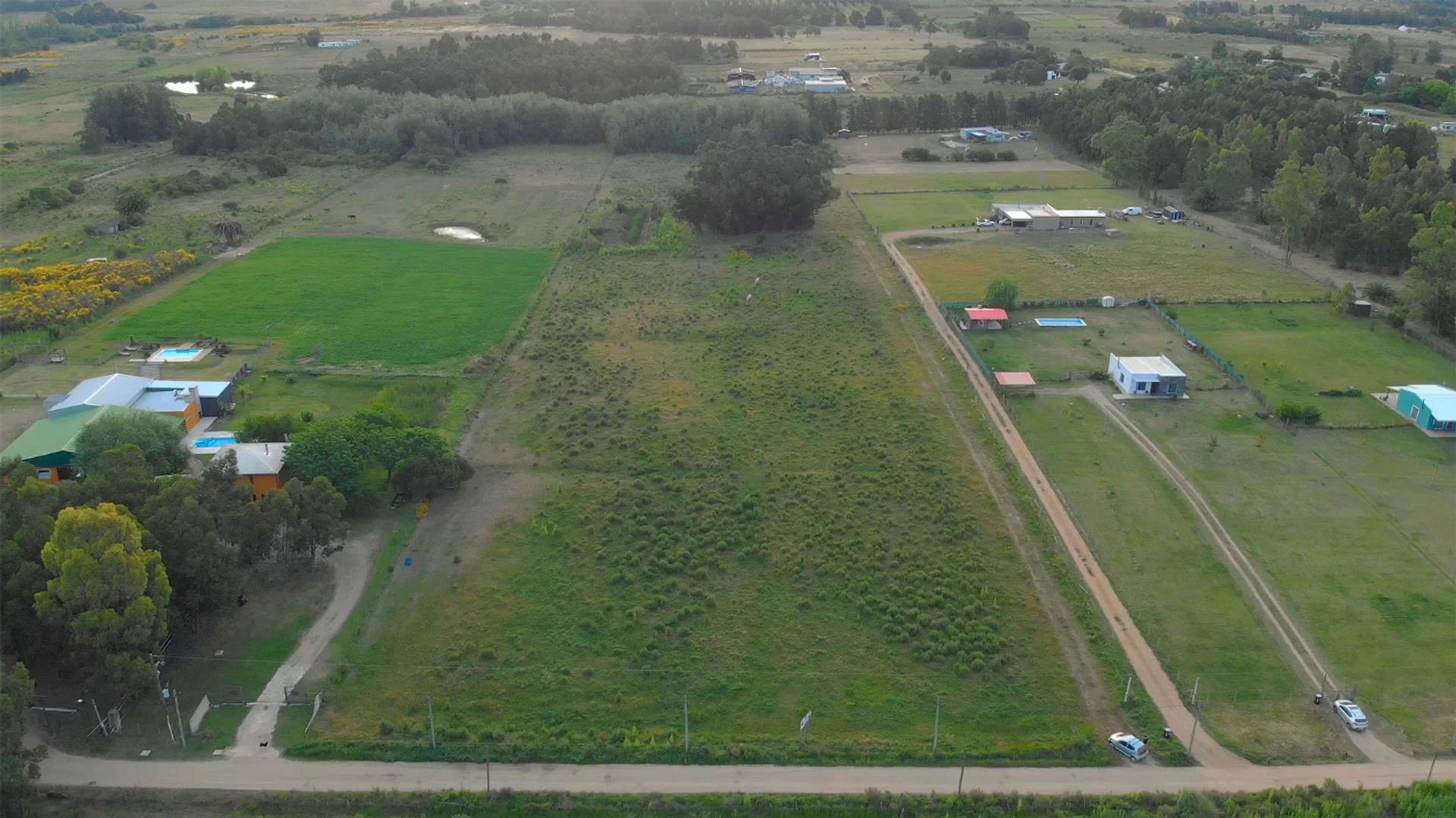 Es un campo parejo, con un muy lindo entorno, a metros de ruta 82 y de ruta 8