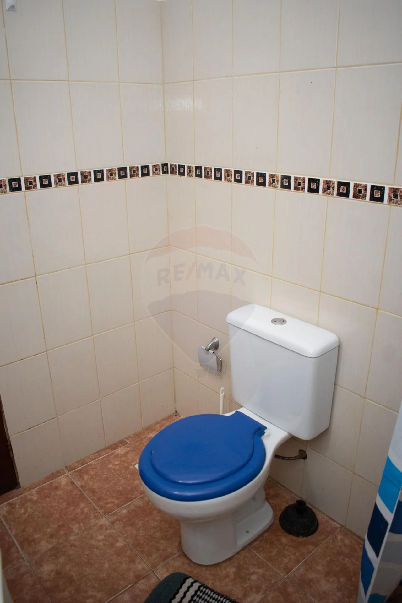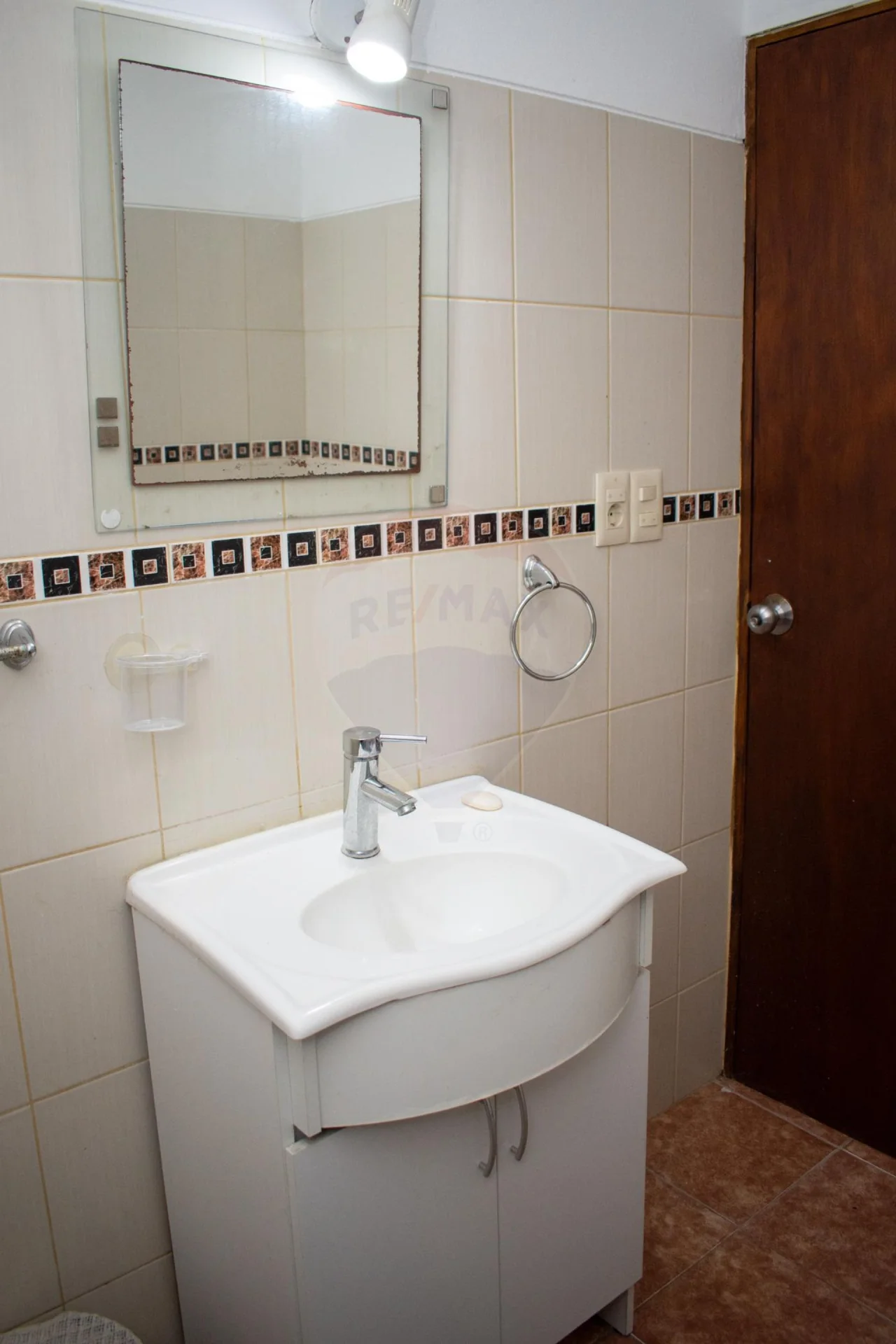 El baño se encuentra en el centro de la vivienda, revestido en cerámica tanto en piso como en paredes hasta una altura de 1,80 metros. Dispone de lavamanos en cerámica, extractor de aire y ventana de aluminio con reja, lo que asegura ventilación e iluminación natural.