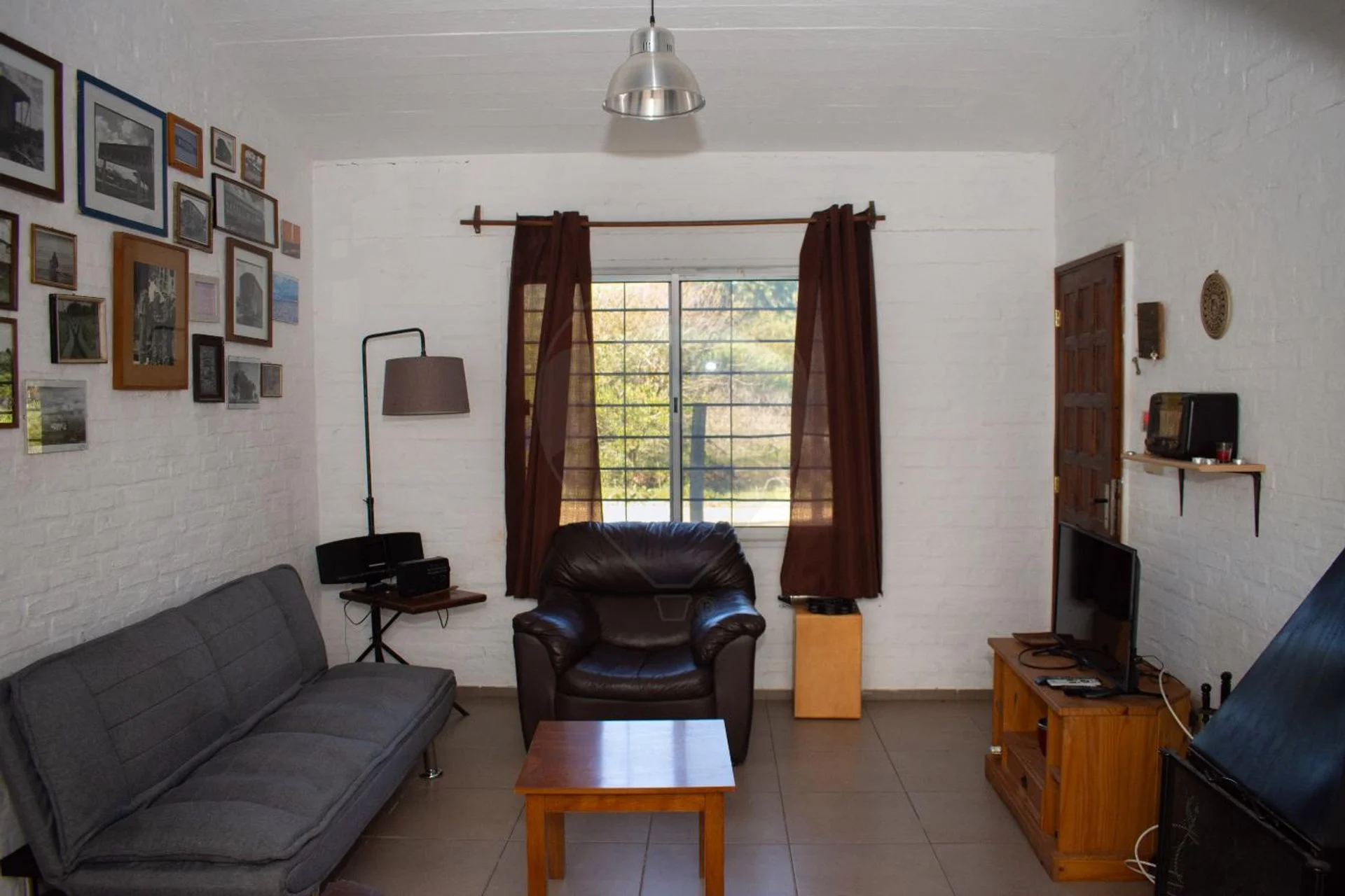 El ingreso principal es mediante una puerta de madera con reja. Al entrar, se accede a un acogedor ambiente integrado de living, cocina y comedor, con piso en cerámica blanca. Este espacio cuenta con ventana de aluminio con reja, aire acondicionado y estufa a leña, generando un ambiente cálido y funcional durante todo el año.