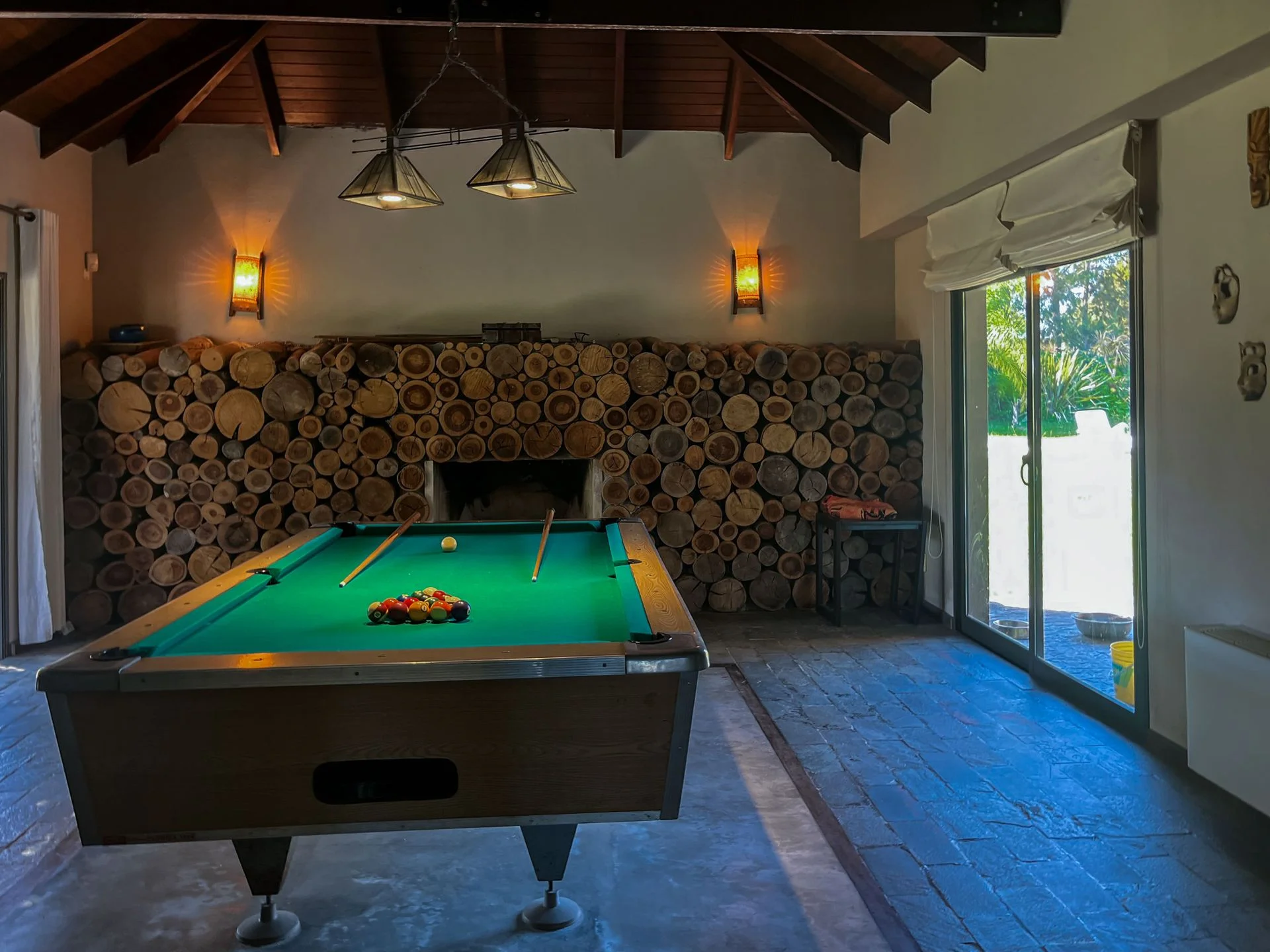 Posee una sala hoy destinada a sala de juegos de interesantes medidas, la misma cuenta con baño social y estufa a leña.