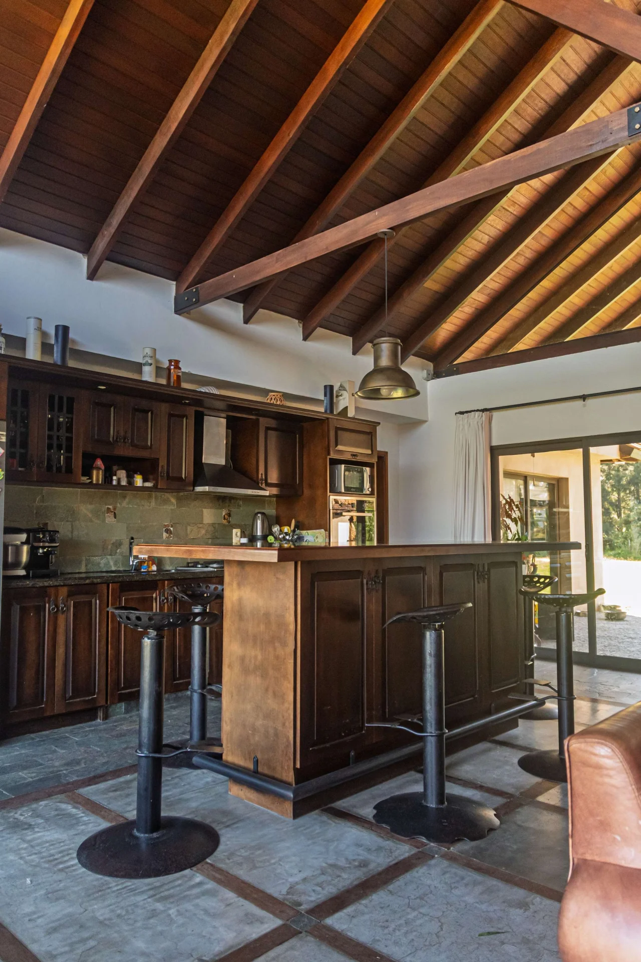 La casa posee estufa a leña, cocina incorporada y una isla de gran tamaño que es la unión perfecta entre ambos ambientes.