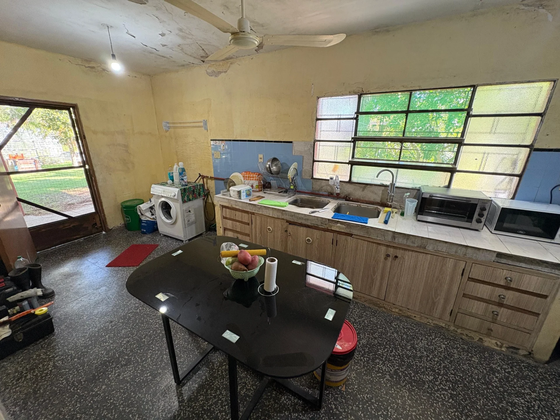Amplia casa de 3 dormitorios grandes, con ambientes grandes, churrasquera al fondo techado y depòsito. Para reparaciones sencillas.