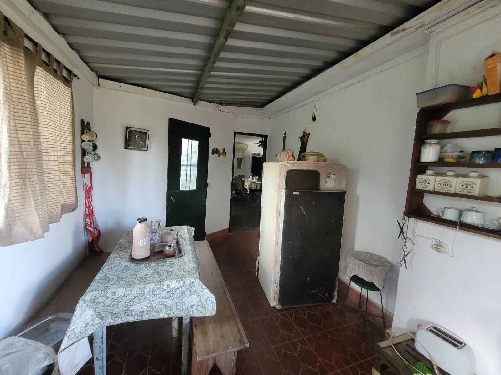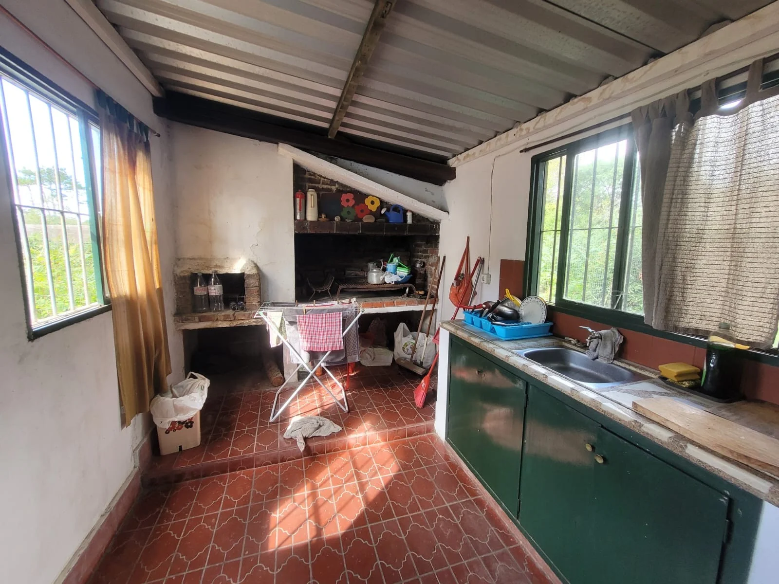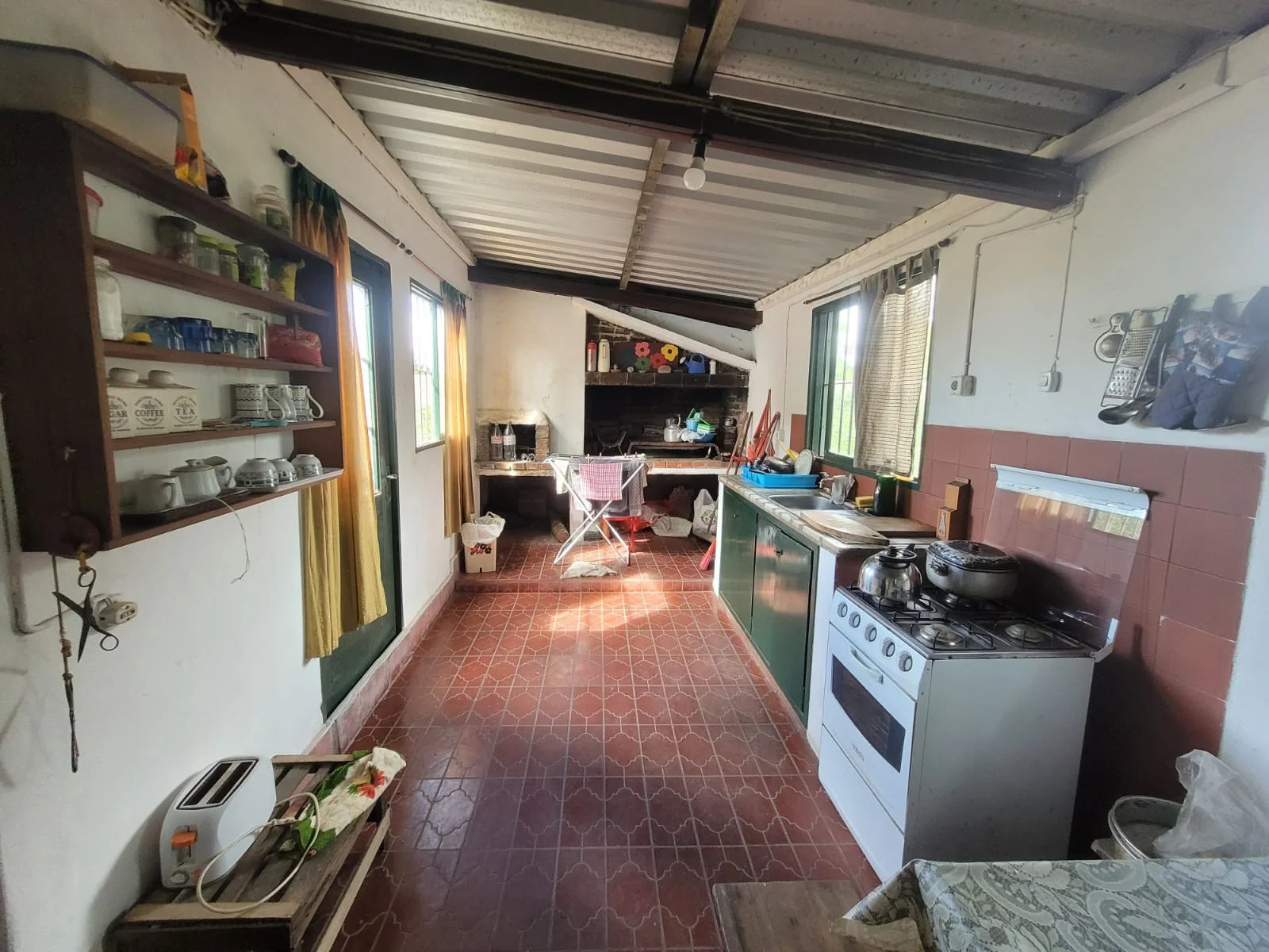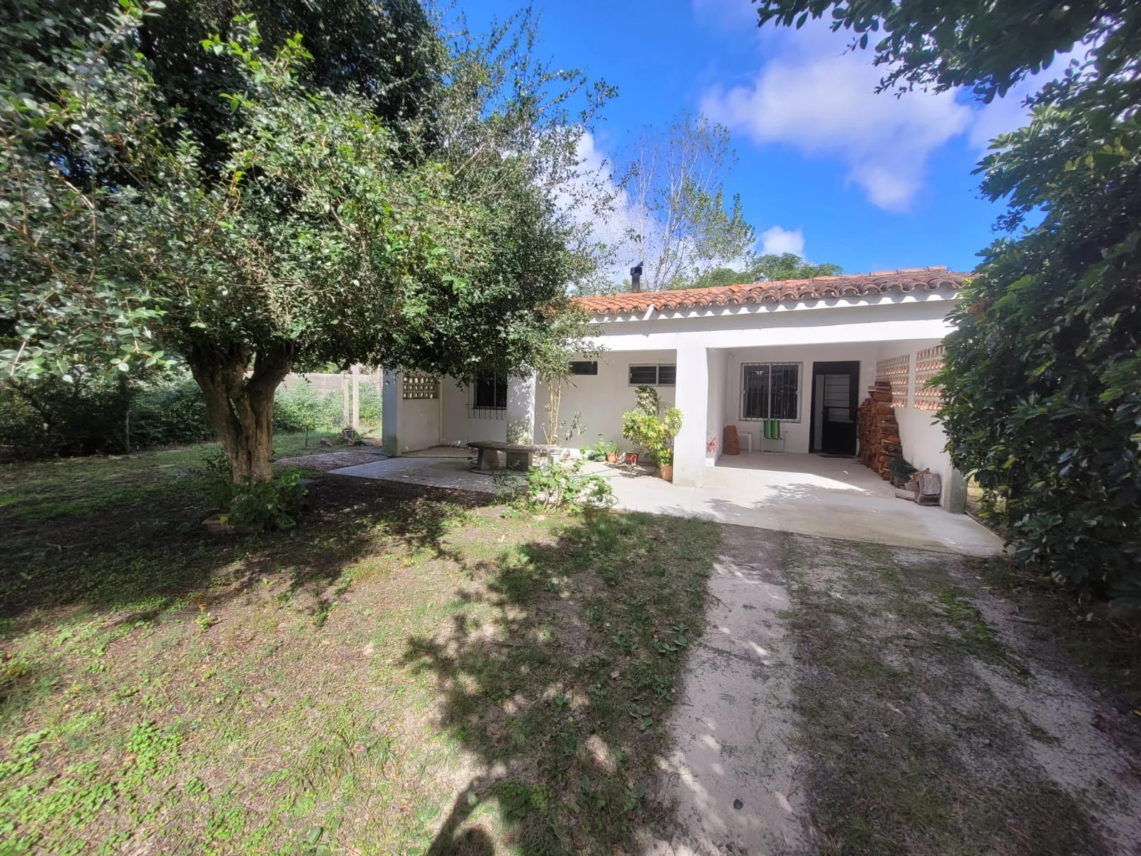 En padron único, casa tipo chalet de tejas, construcción tradicional, 2 dormitorios y 2 baños, uno en suite, amplio living comedor con estufa a leña, cocina con barbacoa integrada. Frente y fondo amplio, cercado. Entrada para auto con cochera. Zona con vecinos permanentes y todos los servicios cerca.