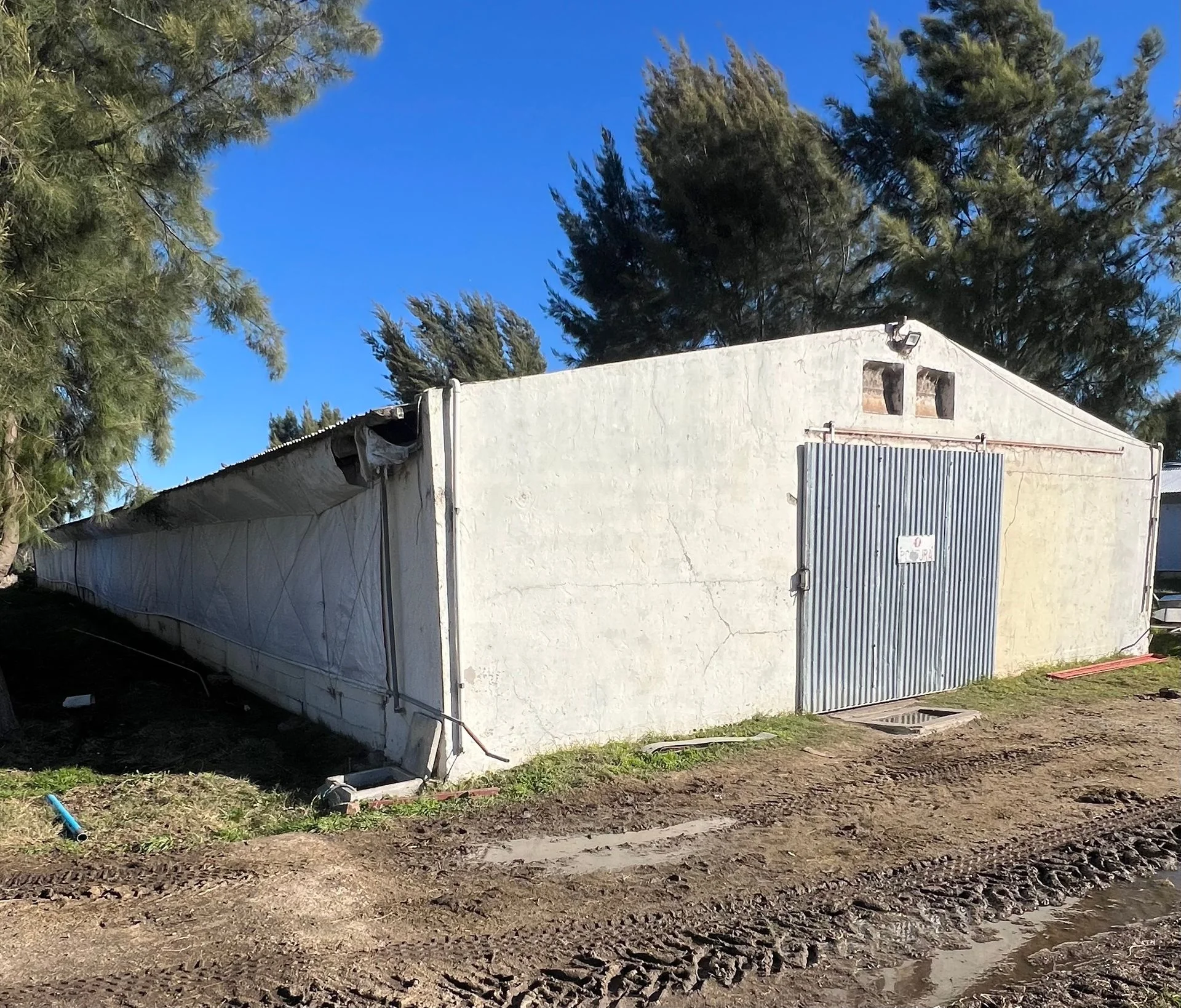- Tres galpones de postura con medidas de 45 x 10 m, 50 x 10 m y 50 x 10 m.