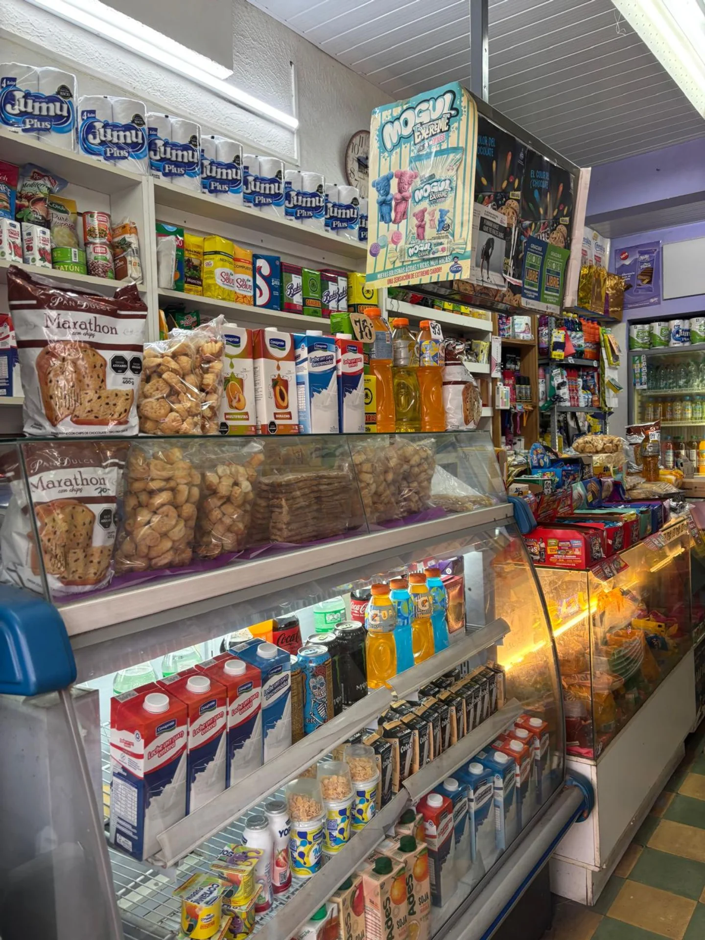 Posee un variado y amplio stock de diversas mercaderías del rubro salón, kiosco y almacén.