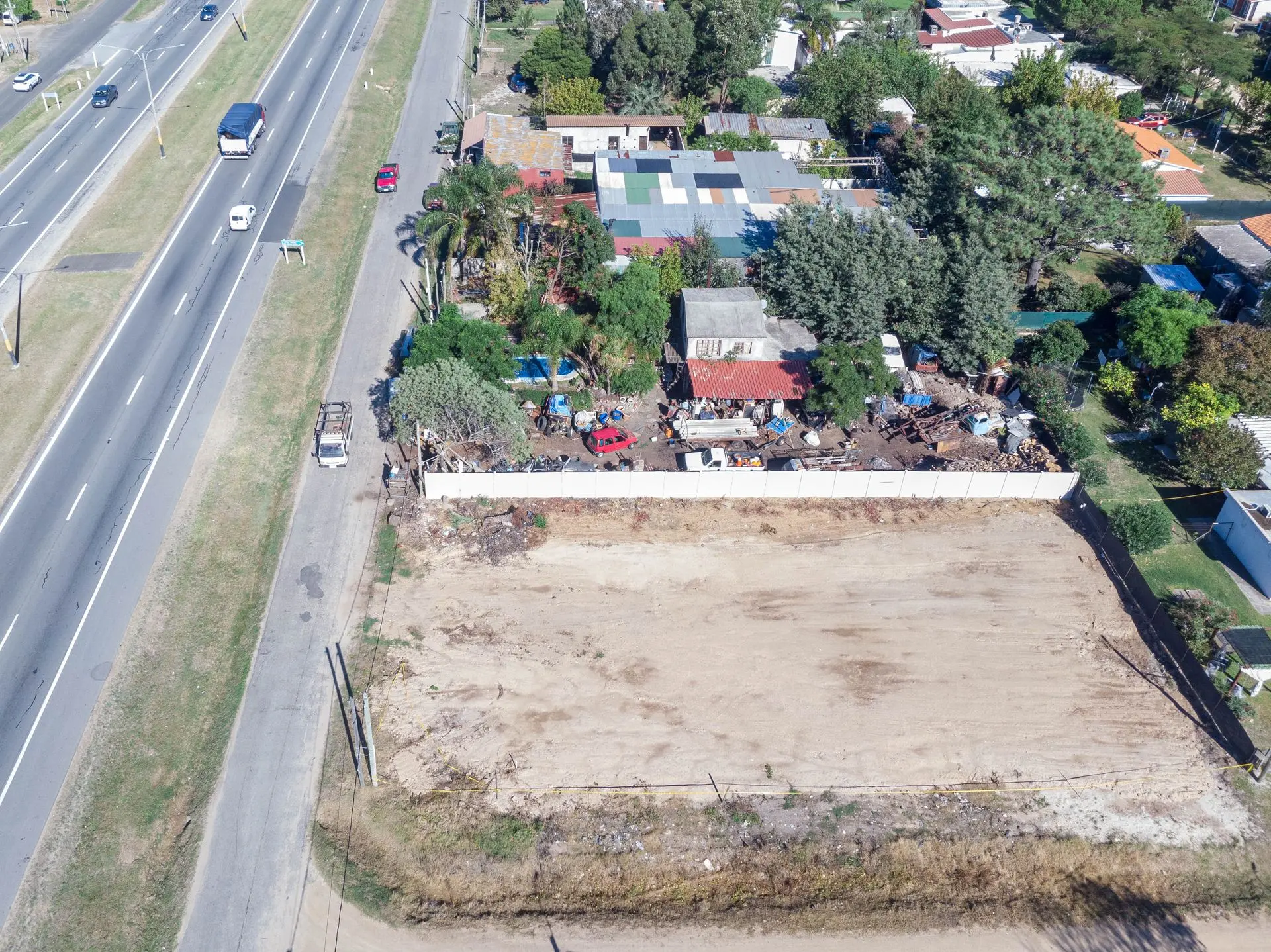 El predio se encuentra cercado en un lateral con muro de hormigón y con alambrado en el otro lateral, cuenta con puente de acceso sobre el frente del mismo.