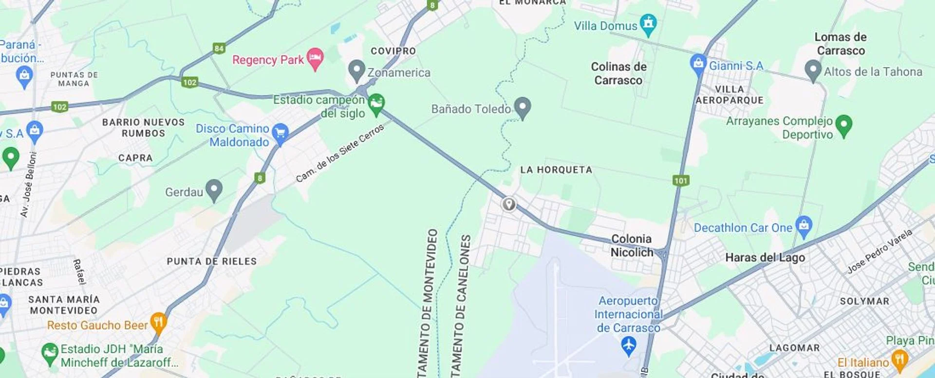 Se vende terreno de 2.106m² sobre la Ruta 102 entre el aeropuerto de Carrasco y Zonamérica.