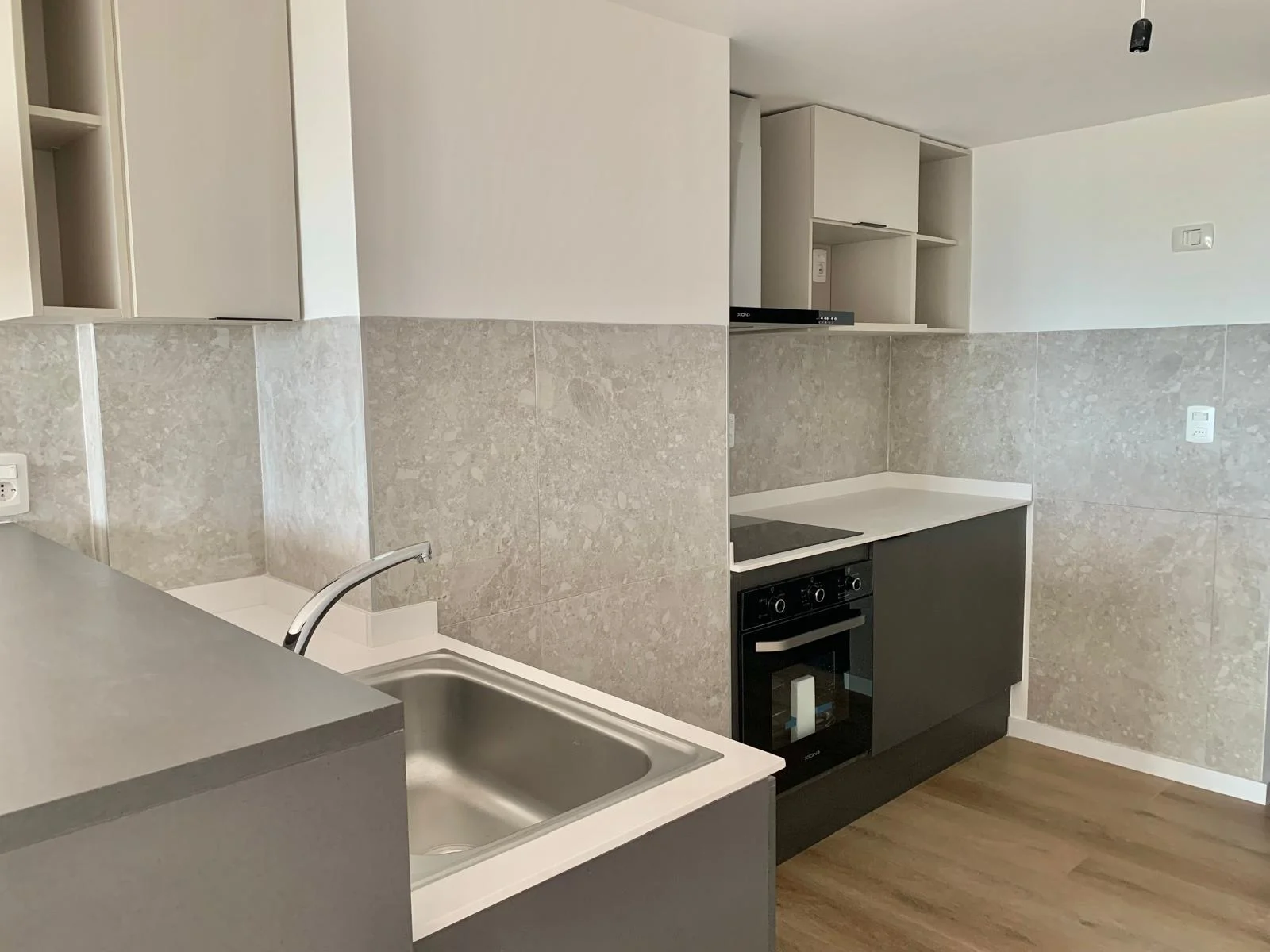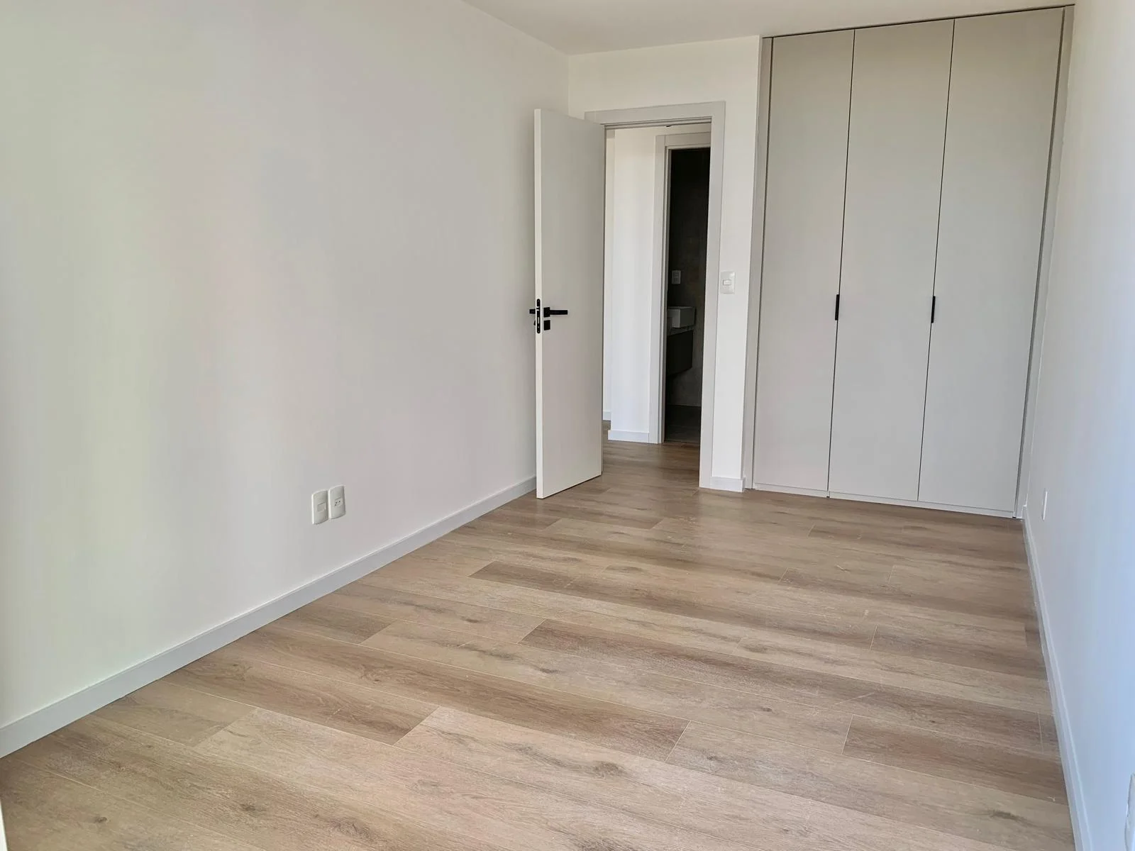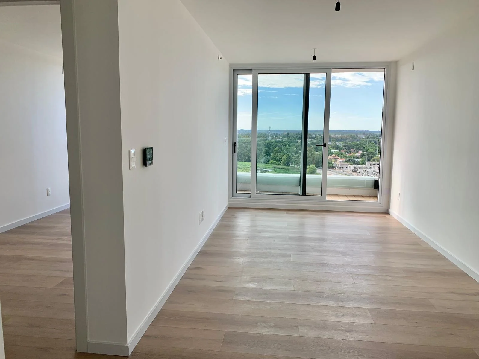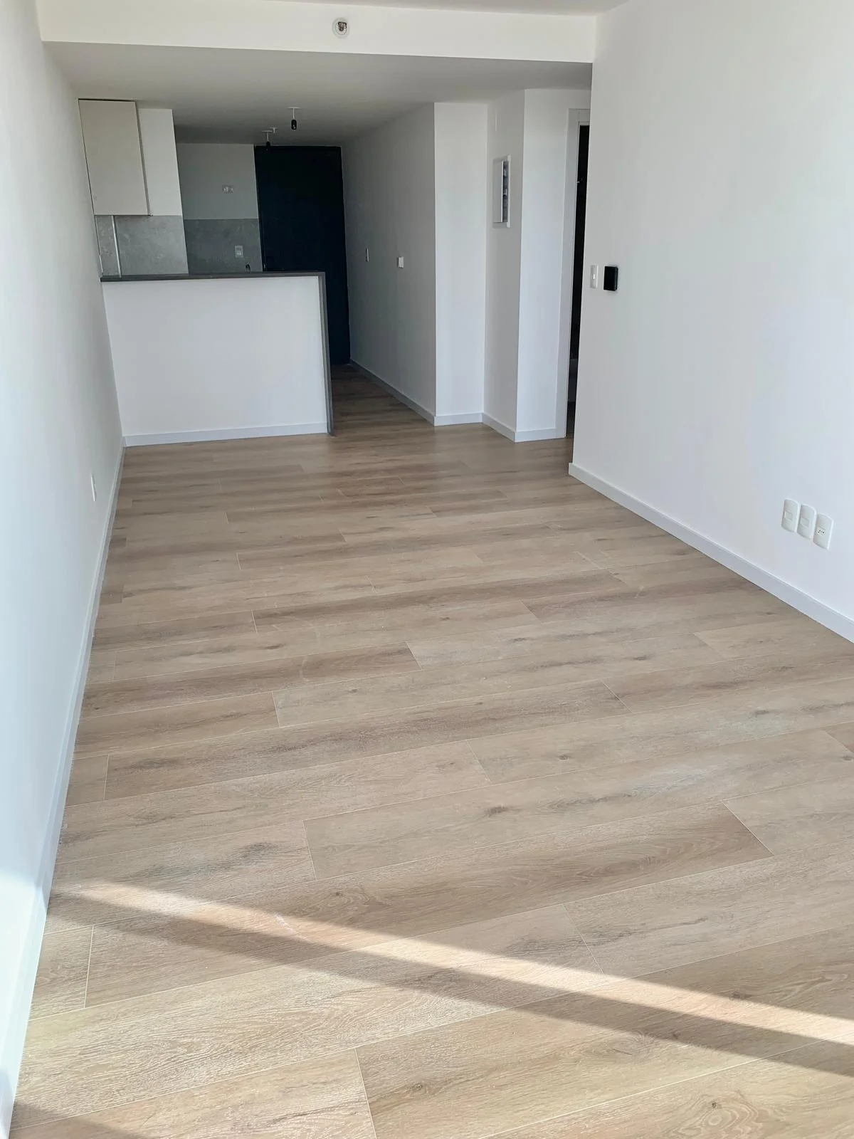 Living comedor con cocina integrada, equipada con horno, anafe, campana y placares. Salida a la terraza desde el living y desde el dormitorio.