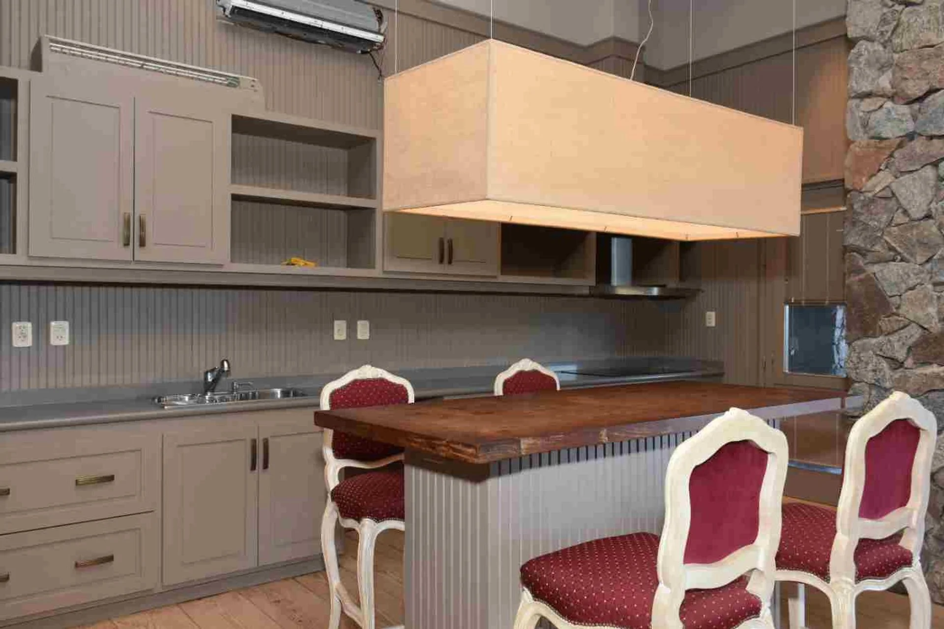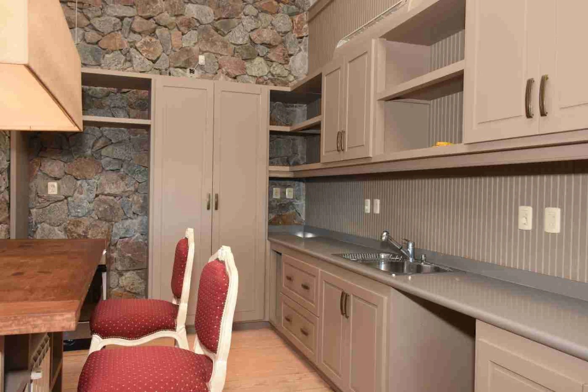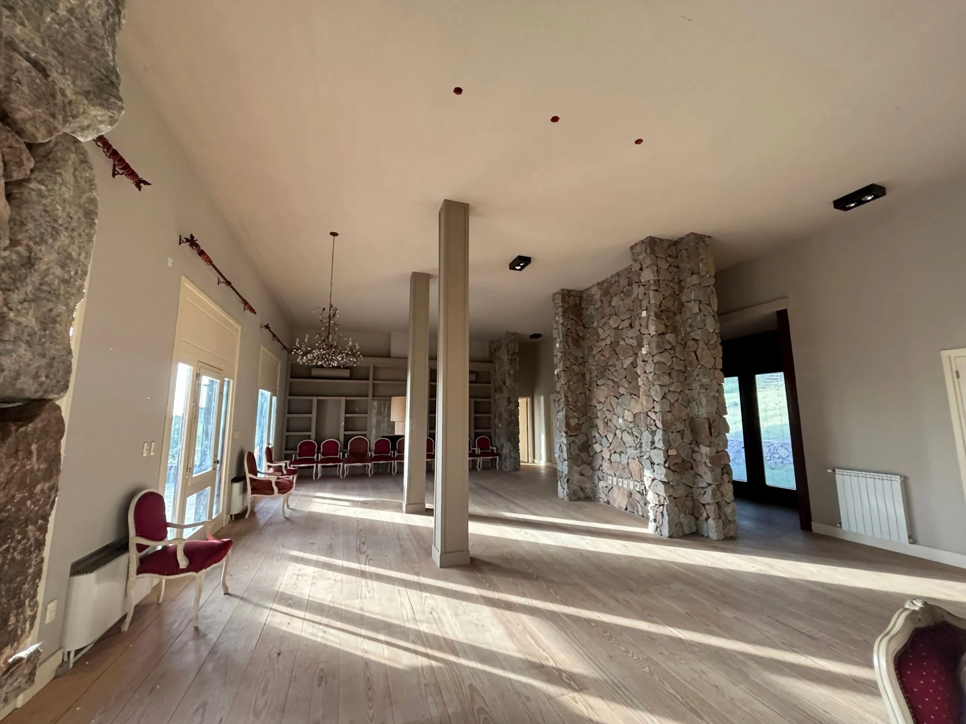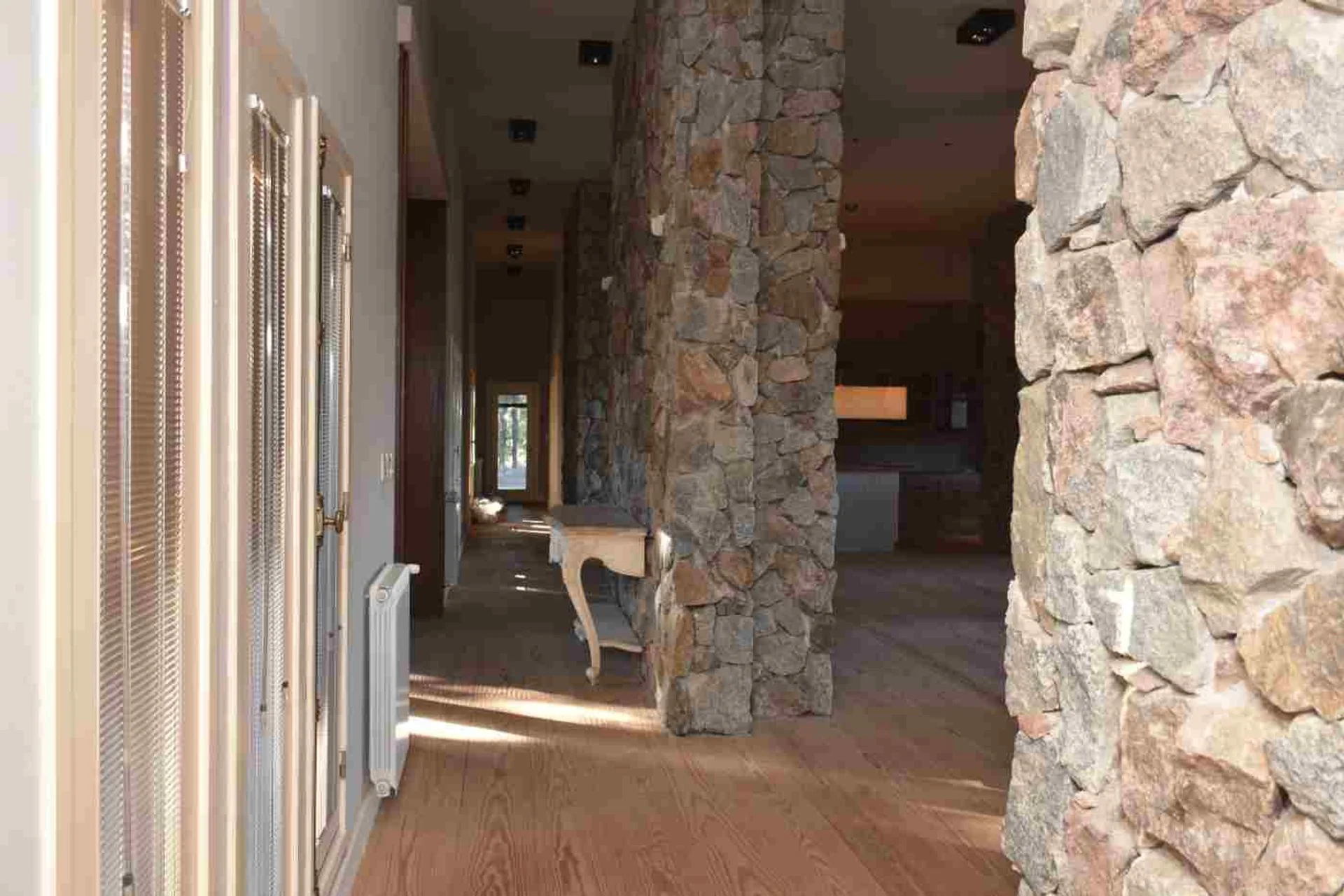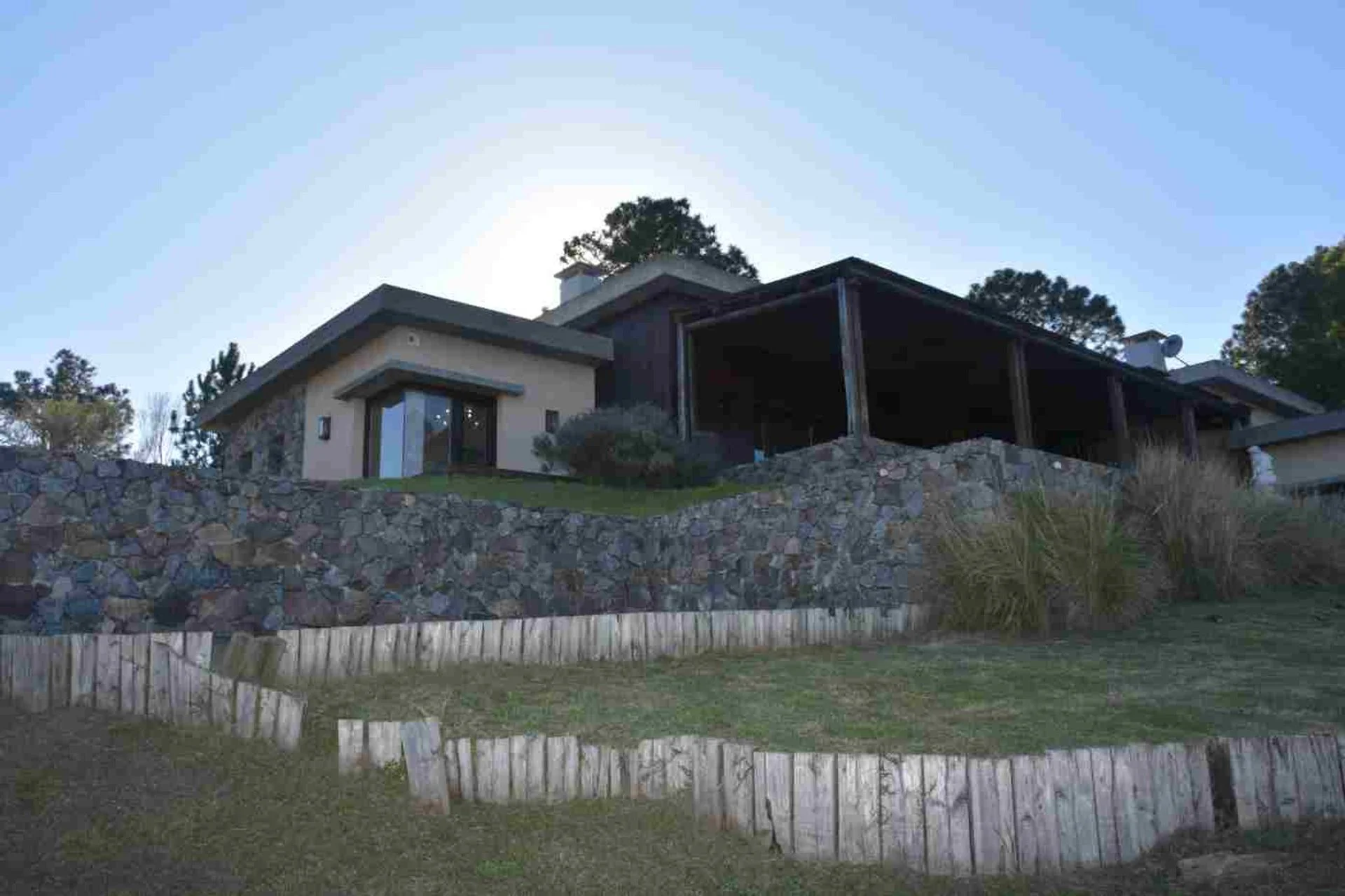 La casa se destaca por su armonía entre naturaleza y confort, con pisos de madera, revestimientos en piedra y un diseño pensado para que la luz natural y el paisaje sean protagonistas.
