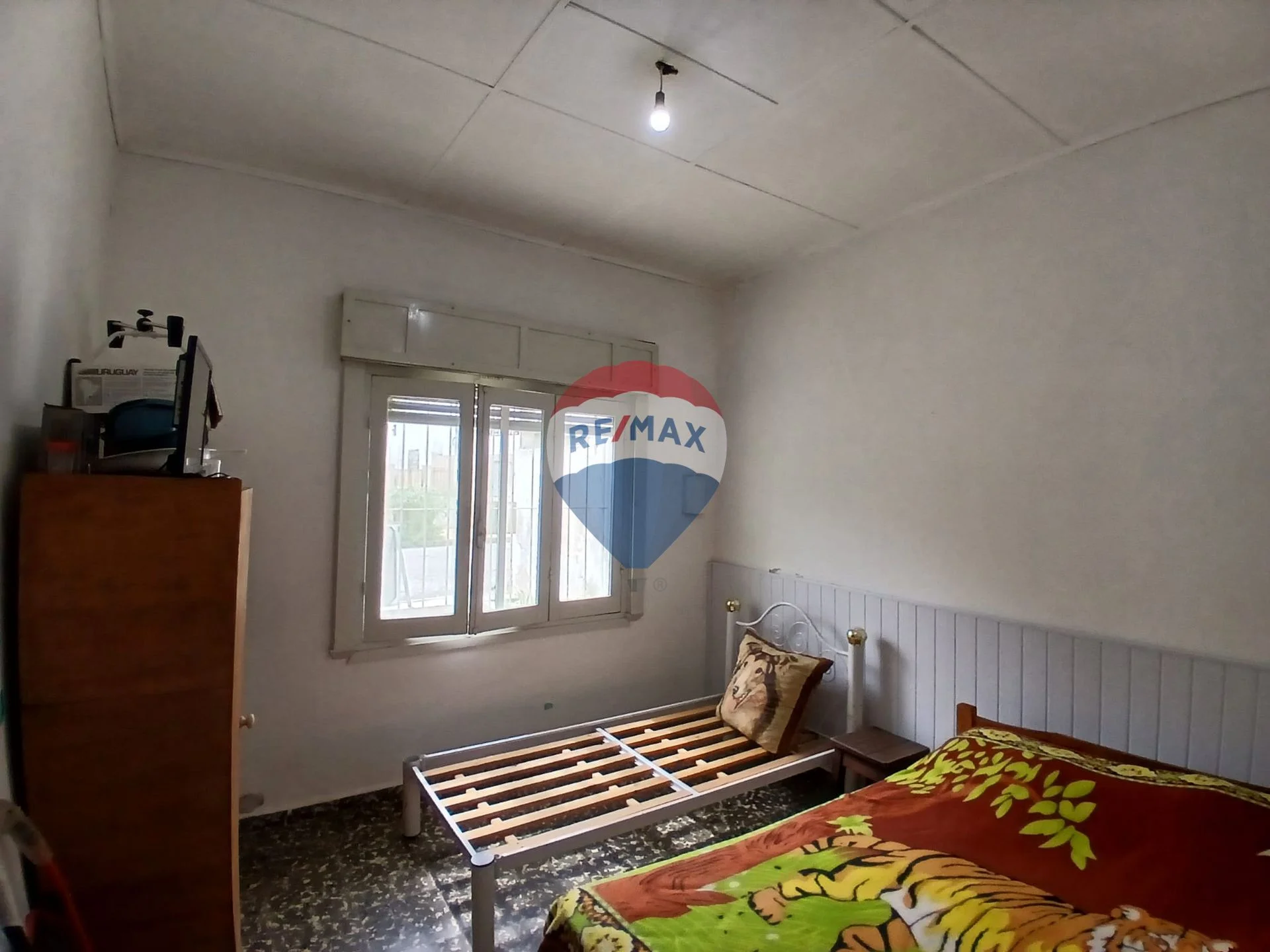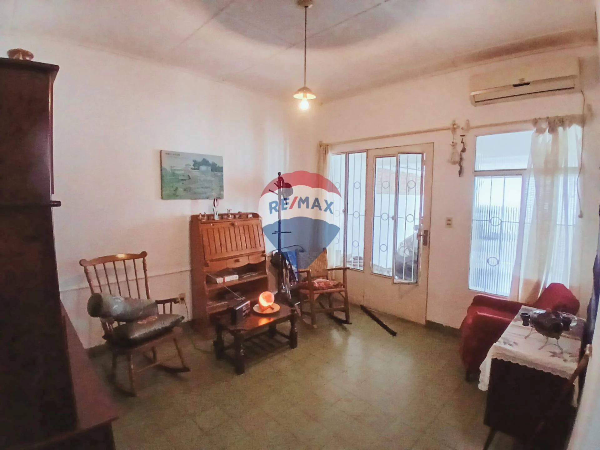 El frente de la casa tiene un pequeño jardín y la entrada a la cochera con portón manual y puerta lateral. El ingreso al interior de la casa es por el living, el mismo cuenta con aire acondicionado. A la izquierda se localizan un dormitorio con orientación al frente con ventana enrejada hacia el jardín. El baño es de época en buenas condiciones con traga luz, dándole una buena luminosidad todo el día. A continuación del baño esta un segundo dormitorio con salida a un pequeño espacio tipo patio cerrado con tragaluz enrejado. A continuación está el tercer dormitorio principal con placard empotrado de 2 puertas con gran profundidad, hay espacio para 2 perchas en paralelo. El dormitorio tiene ventana que da hacia el fondo.
