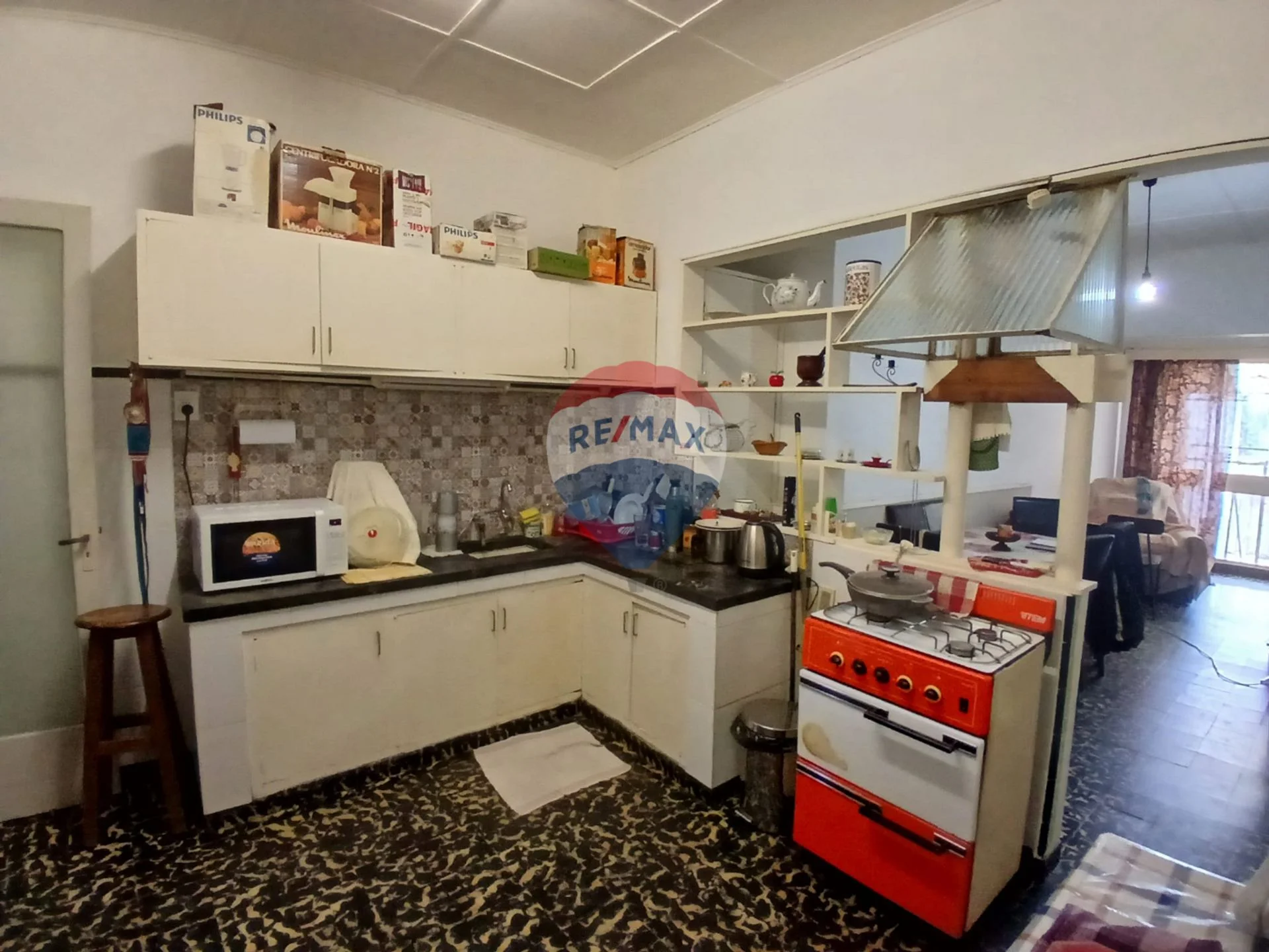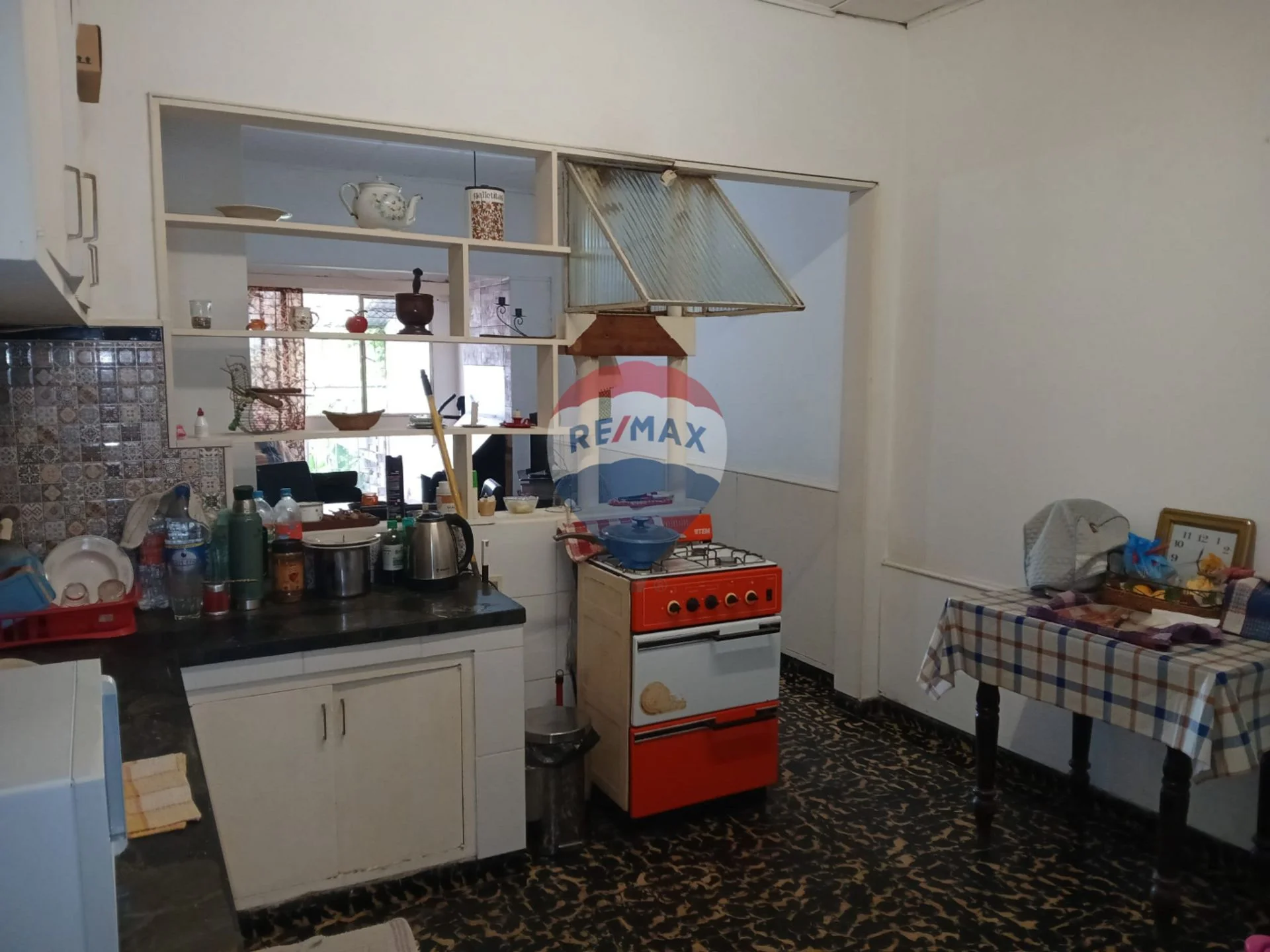 Si continuamos nos encontramos con la cocina comedor con actualización de cerámicos en pared y bajo mesada. La bajo mesada es en L y tiene un mueble aéreo en combinación.