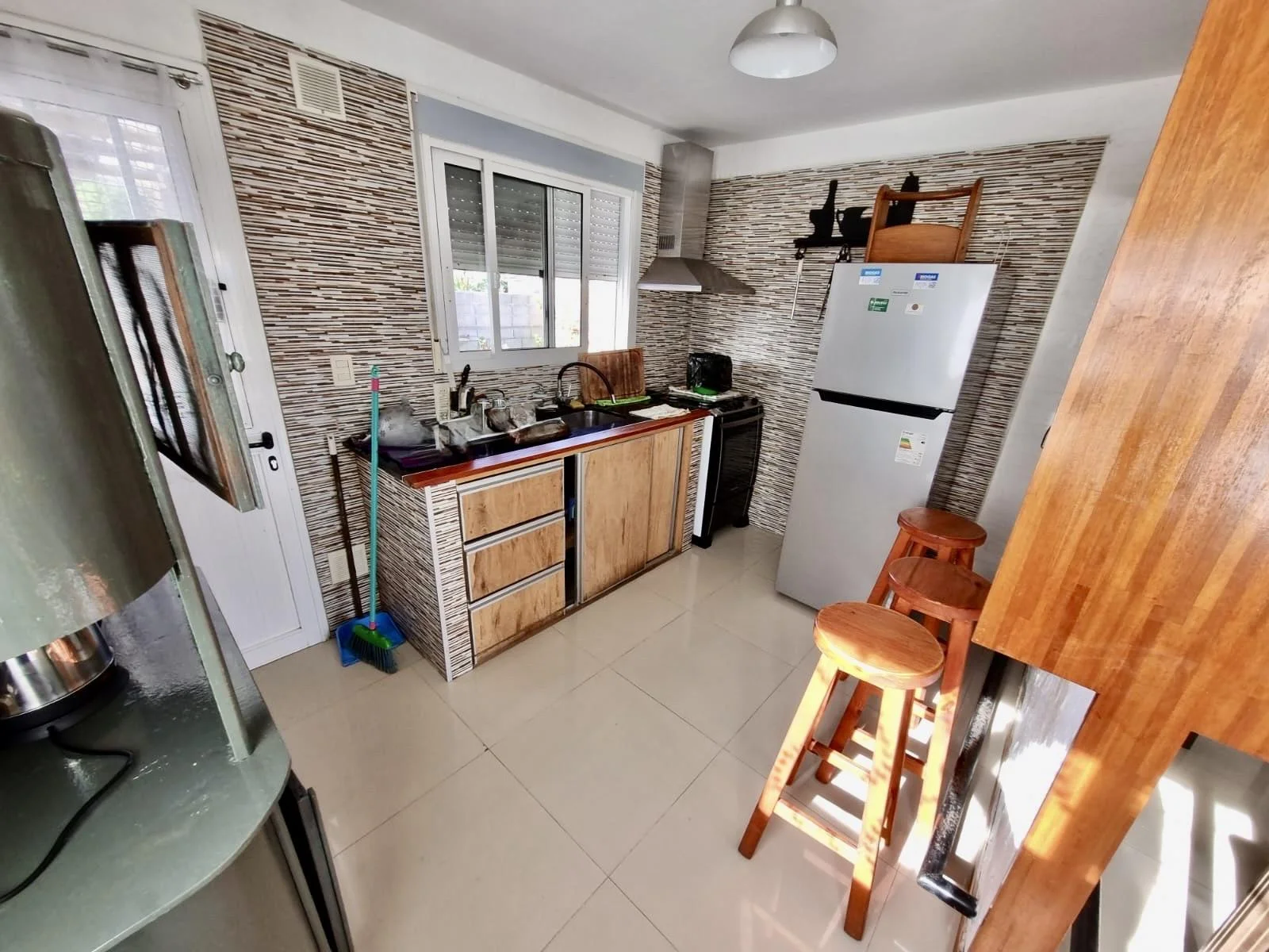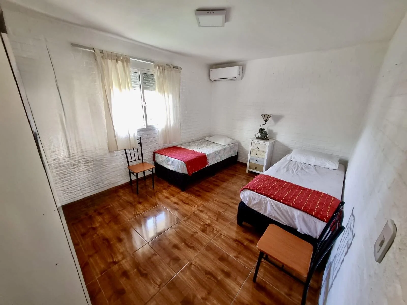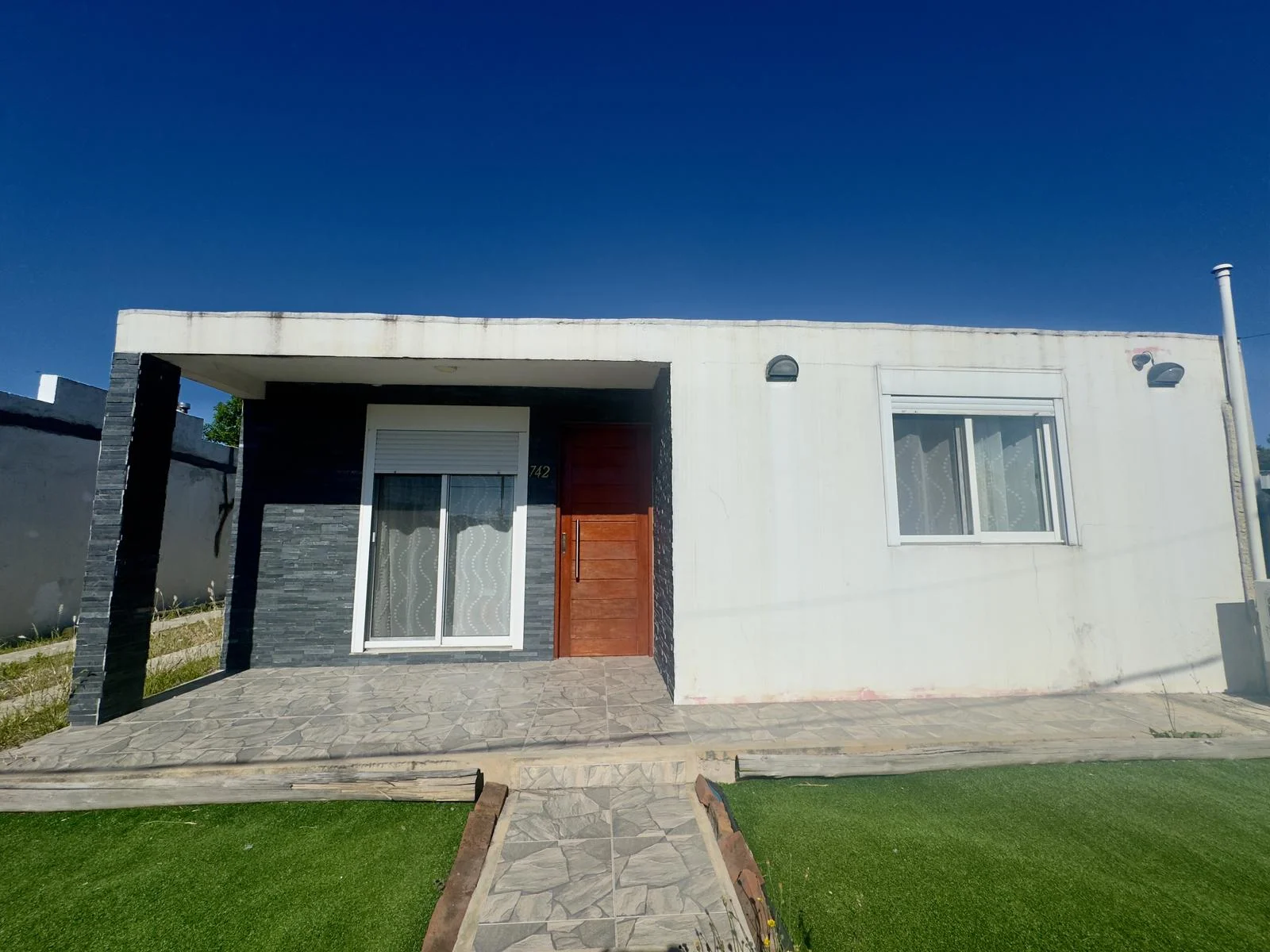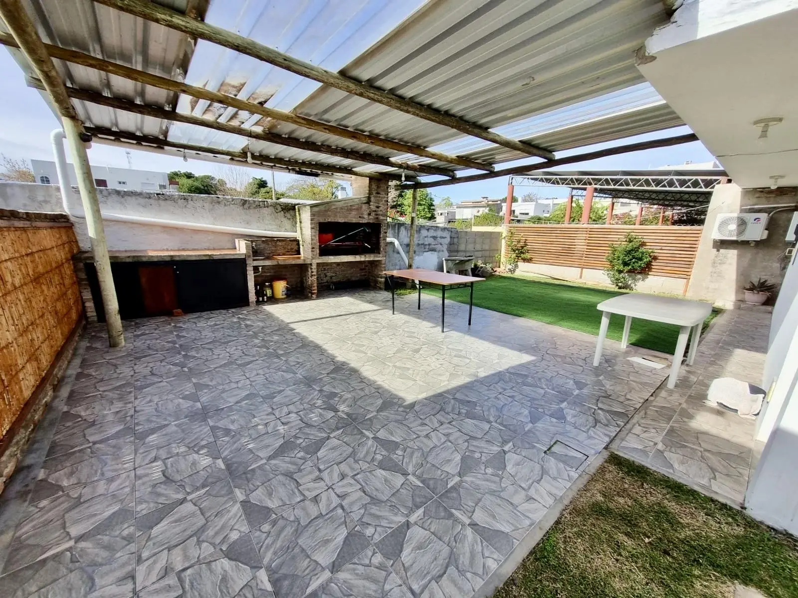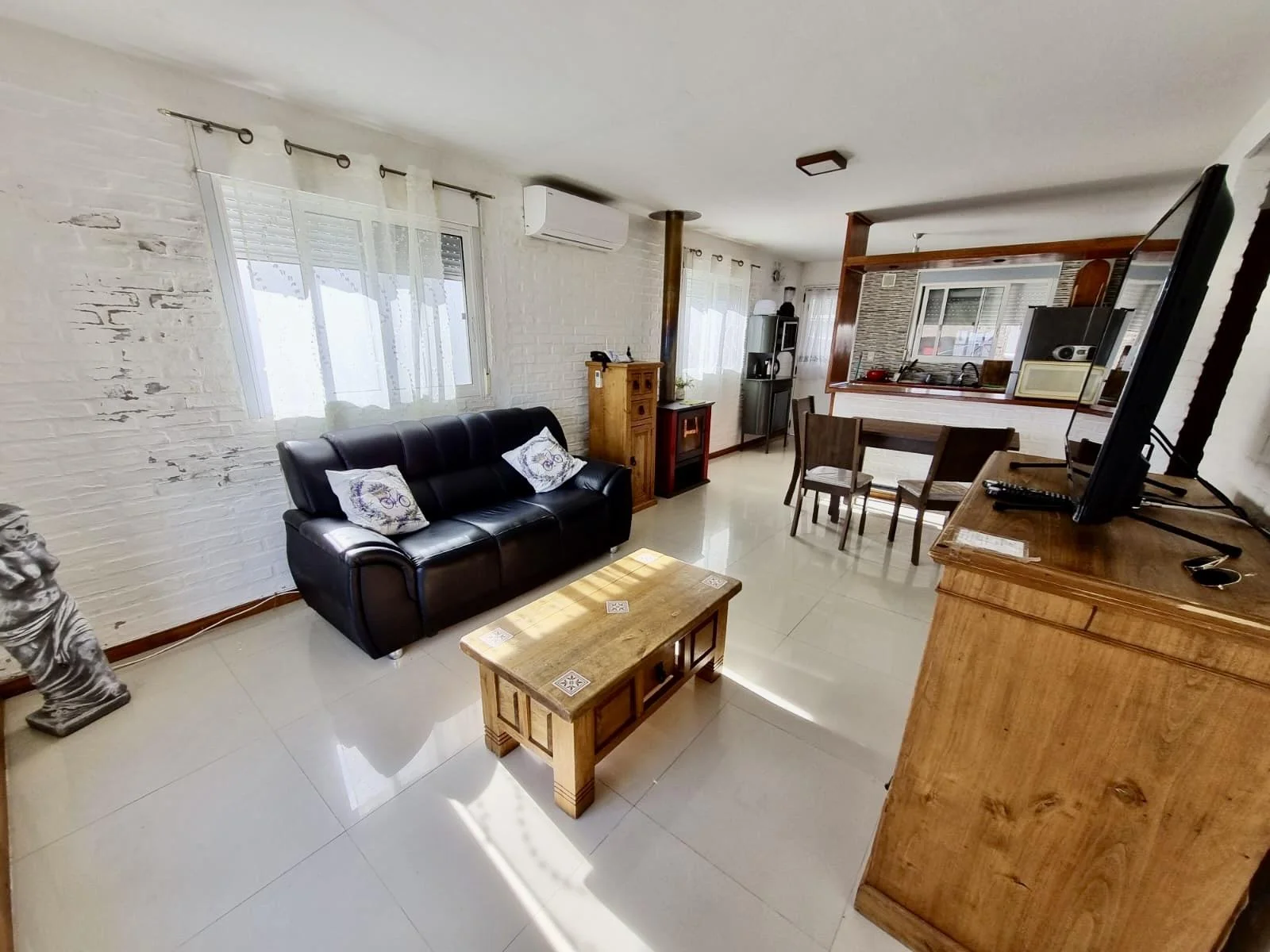 • Living–comedor luminoso con calefactor a leña y aire acondicionado • 2 cómodos dormitorios con aire acondicionado • Cocina integrada equipada • Baño completo • Hermoso patio techado con parrillero • Cochera techada para 1 vehículo e ingreso para varios más • Jardín al frente y frente cercado con rejas para mayor seguridad • Totalmente equipada para 4 personas – Cama matrimonial – Doble cama individual