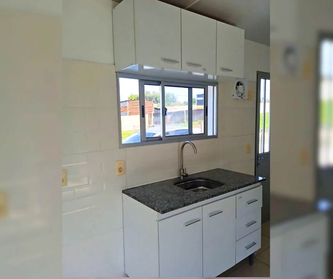 Cocina concepto abierto con bajo alto mesada y mesada de granito
