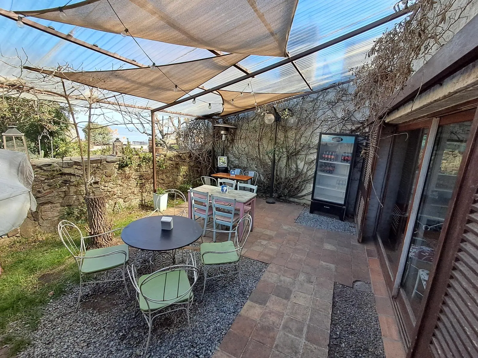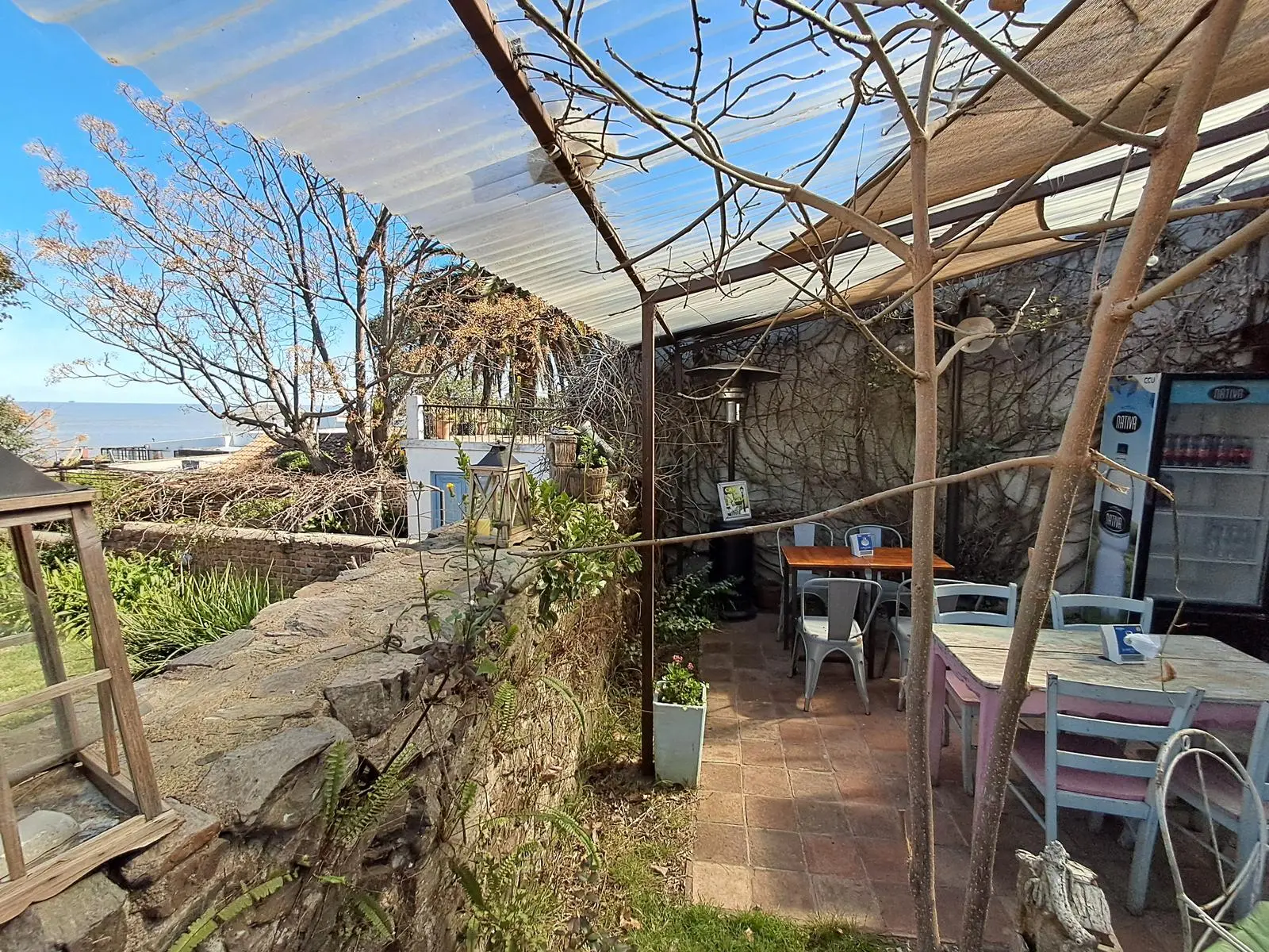 Muy lindo patio colonial con paredes de piedra y vista al Río.