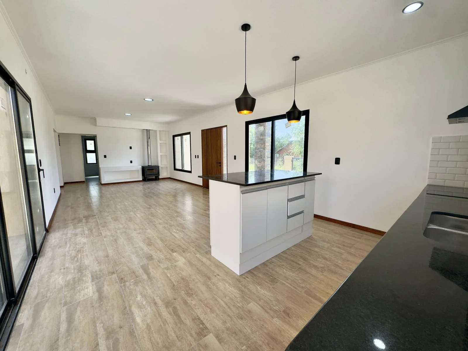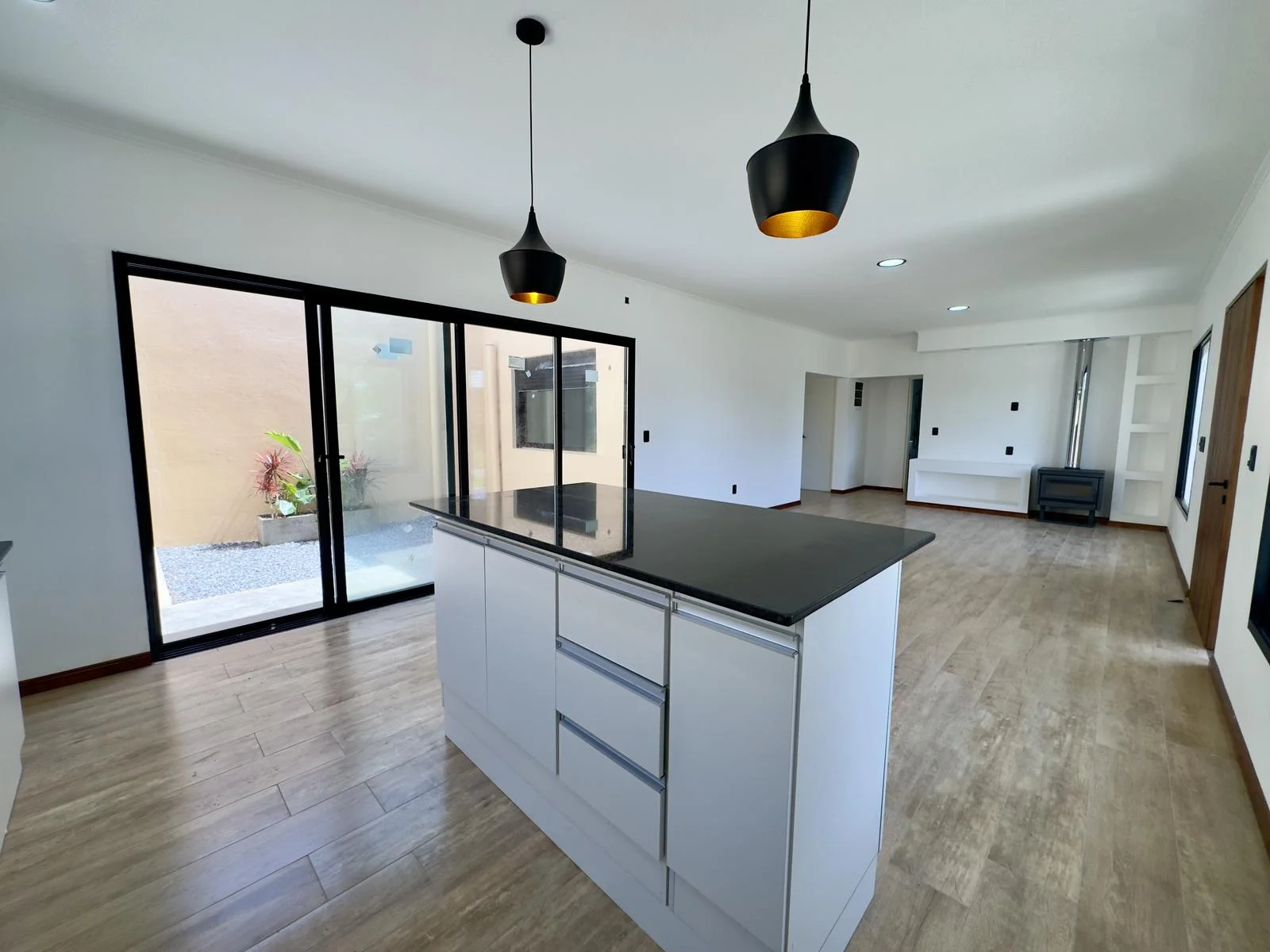 Dispone de 2 baños (uno completo y otro social), ambos con calefones instalados, y una cocina moderna con mobiliario a medida e isla central, ideal para disfrutar en familia.