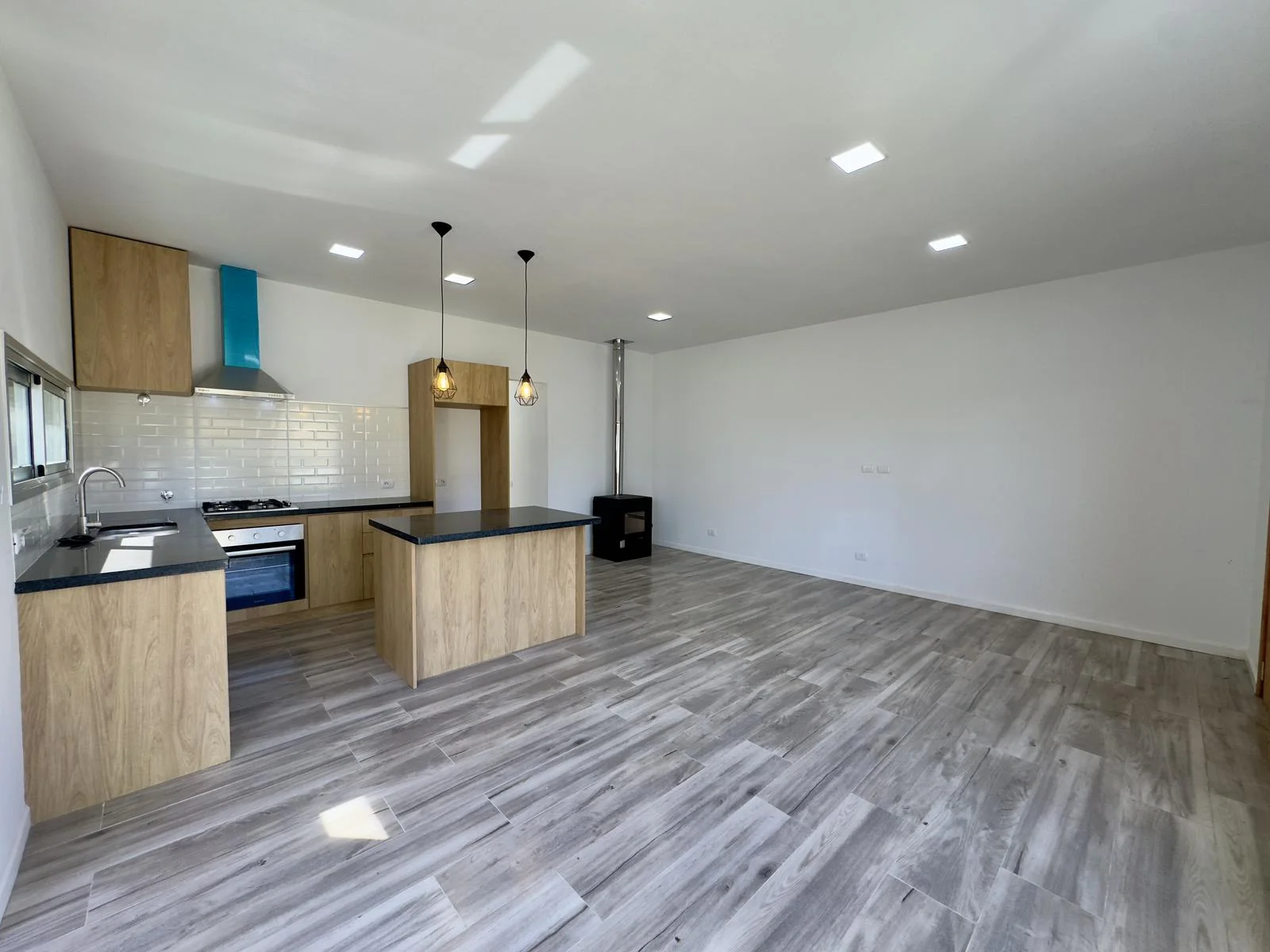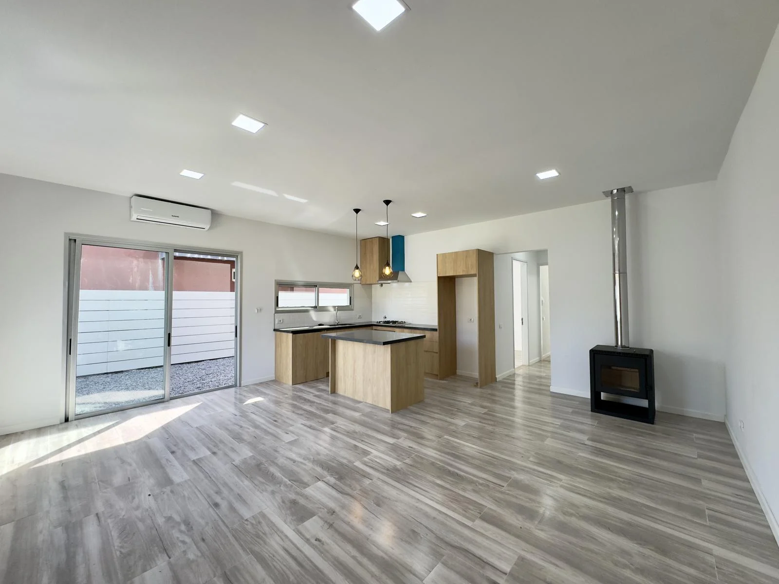 Extensa sala Living - comedor con ingreso de mucha luz natural y calefactor a leña