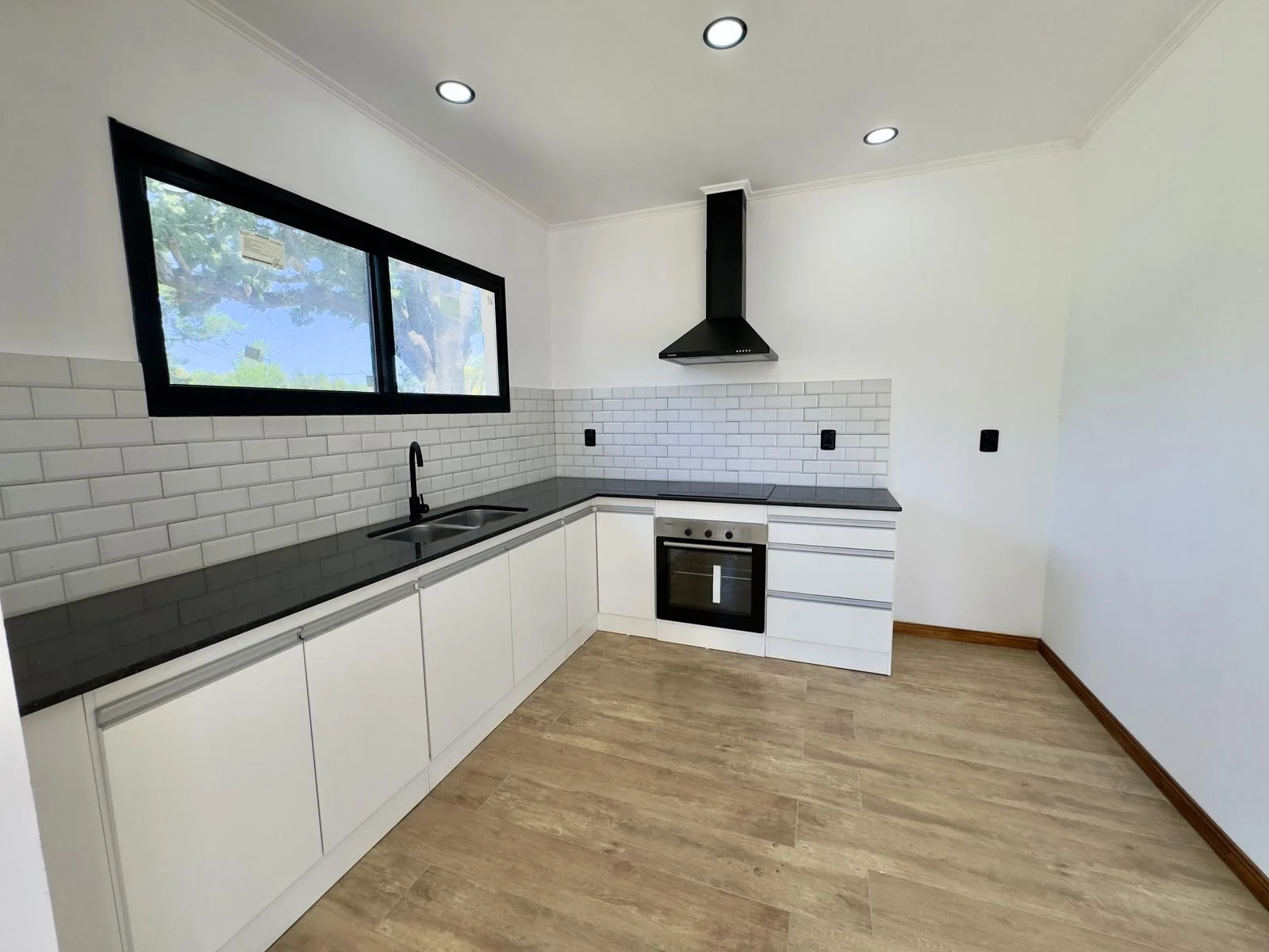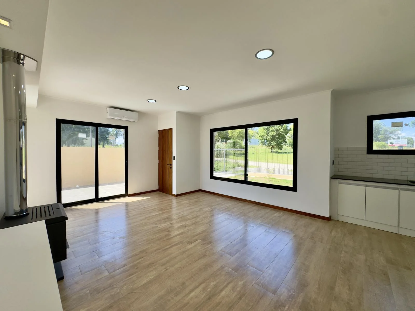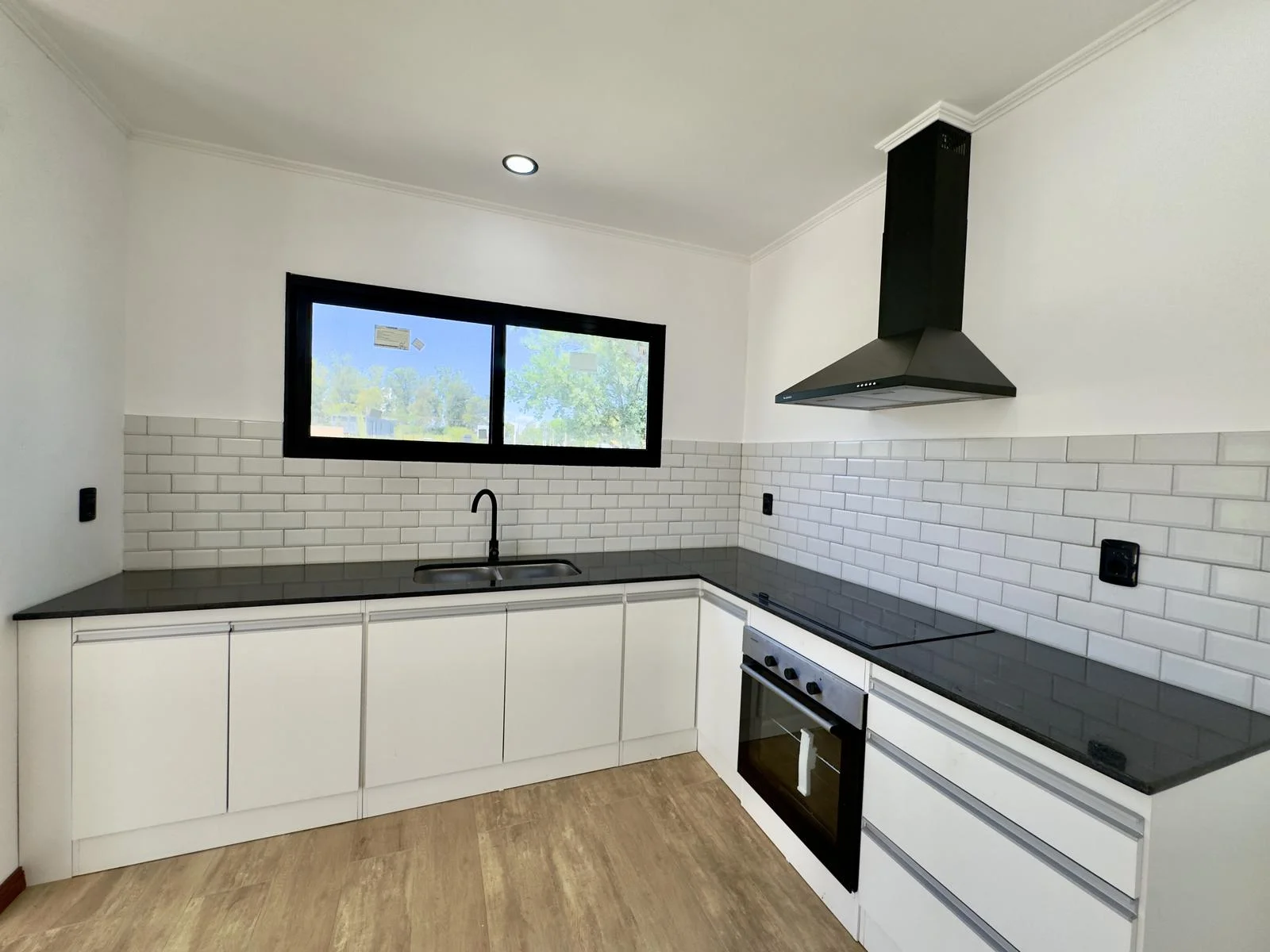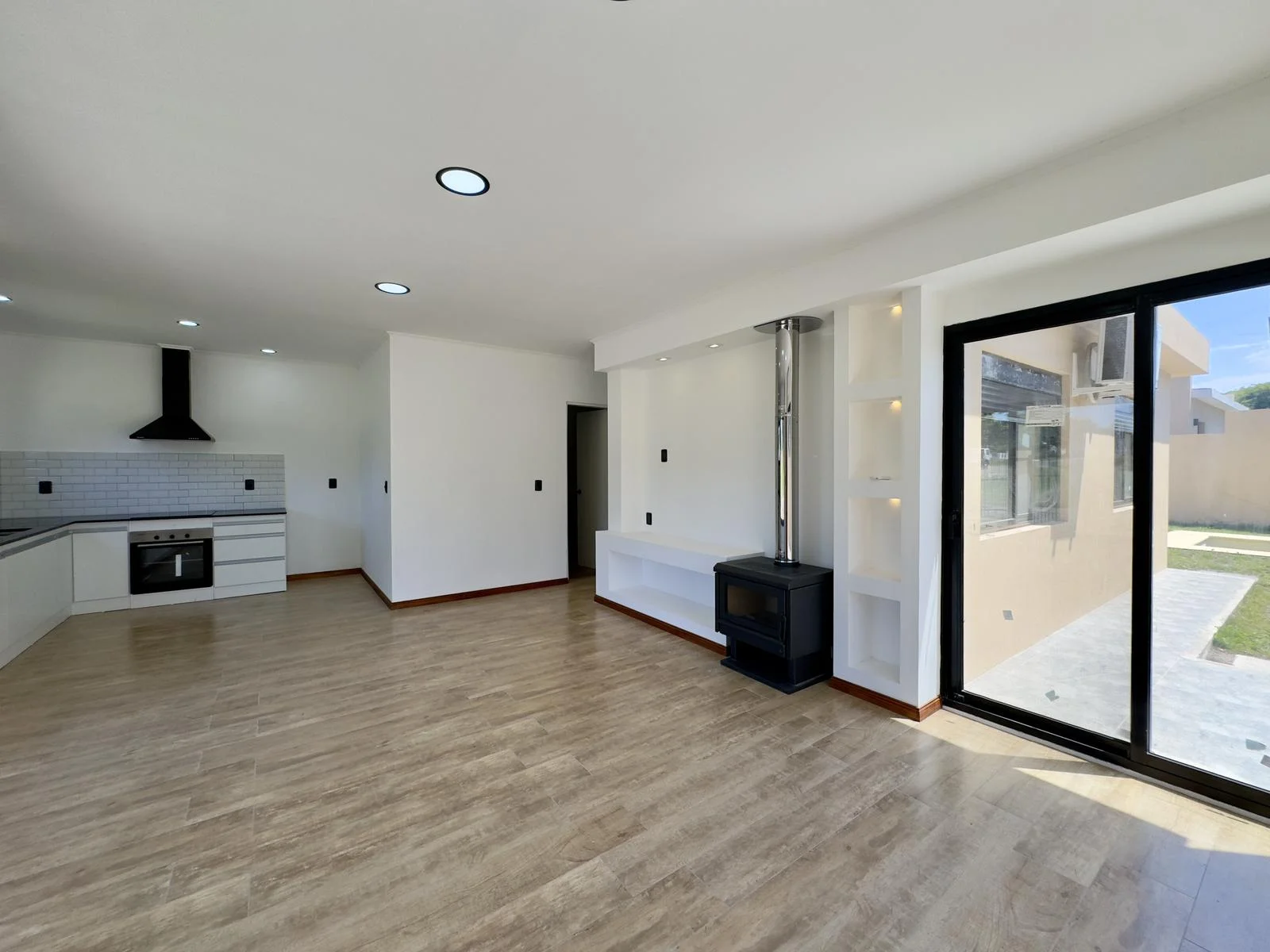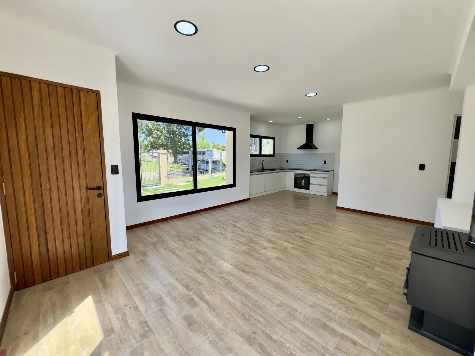 La casa cuenta con 3 dormitorios amplios, una gran sala de living-comedor equipada con calefactor a leña y ventanales que permiten un excelente ingreso de luz. Dispone de 2 baños (uno completo y otro social), ambos con calefones instalados, y una cocina moderna con mobiliario a medida, ideal para disfrutar en familia.