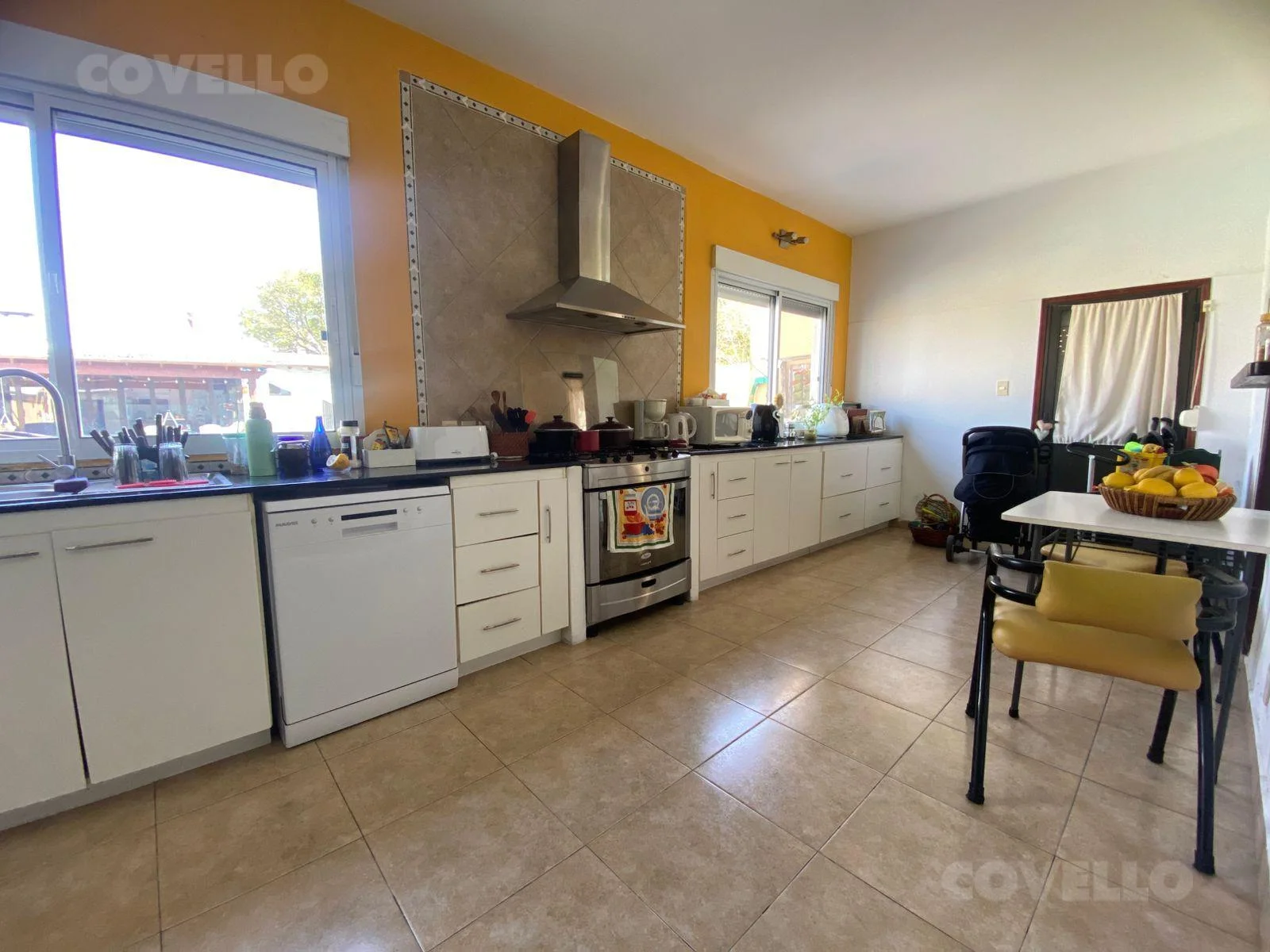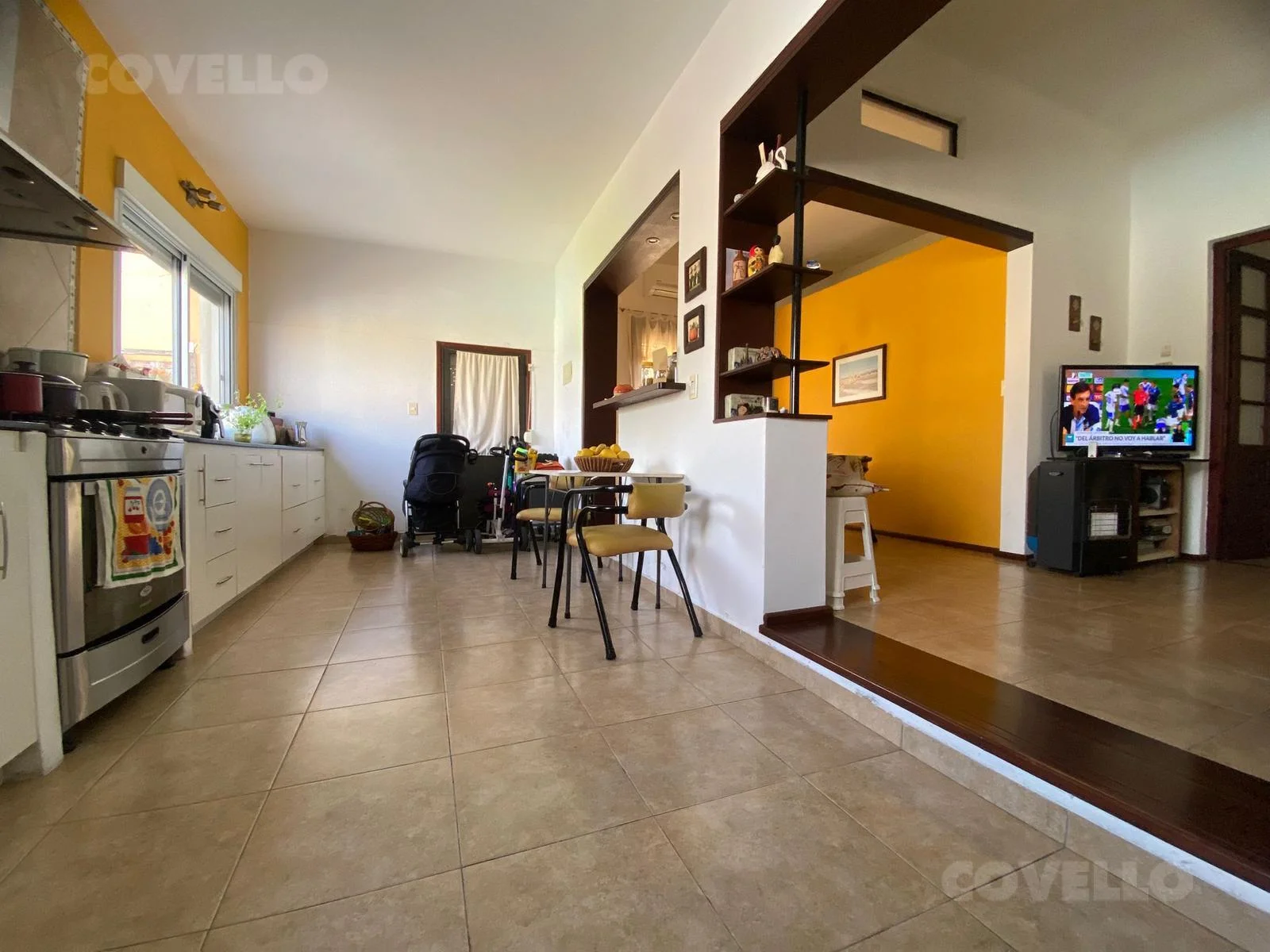 En el interior, la vivienda ofrece un ambiente amplio y funcional con comedor y cocina integrados, equipados con alacena empotrada, un acogedor living con estufa a leña y un recibidor que distribuye hacia cuatro dormitorios, uno de ellos con placard empotrado. Además, dispone de lavadero, baño y garaje.