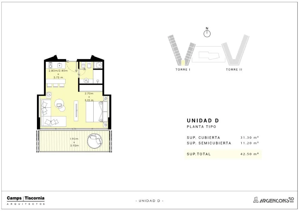 Esta unidad de 1 ambientes (estudio) tiene orientación Sur con vistas panorámicas que contemplan la ciudad, las hermosas playas de arena blanca, la ciudad, la cantera y el muelle. Las unidades con armado de hormigón y tabiquería interna cuenta con 31.3m2 cubiertos cerras y una generosa terraza 11m2 + ecocheras (convertibles a bauleras)