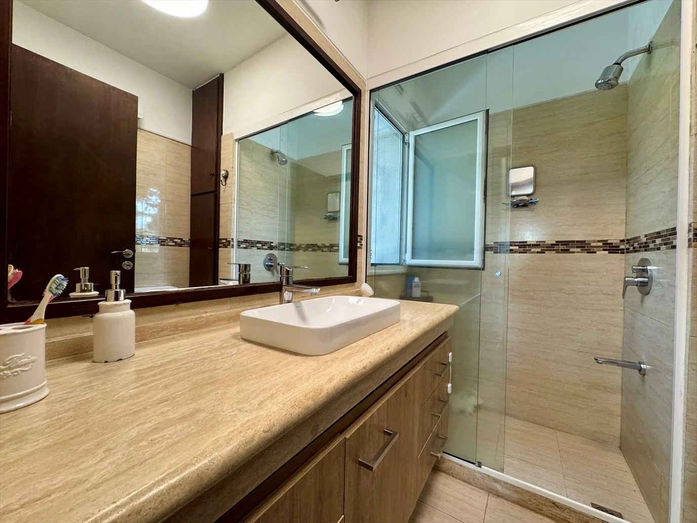Hacia el otro extremo de la casa tenemos un escritorio que da al frente de la casa y también un pasillo que conecta un baño, una habitación, la habitación principal en suite y la escalera que lleva a la segunda planta. La habitación principal posee un divino vestidor conectando con el baño.